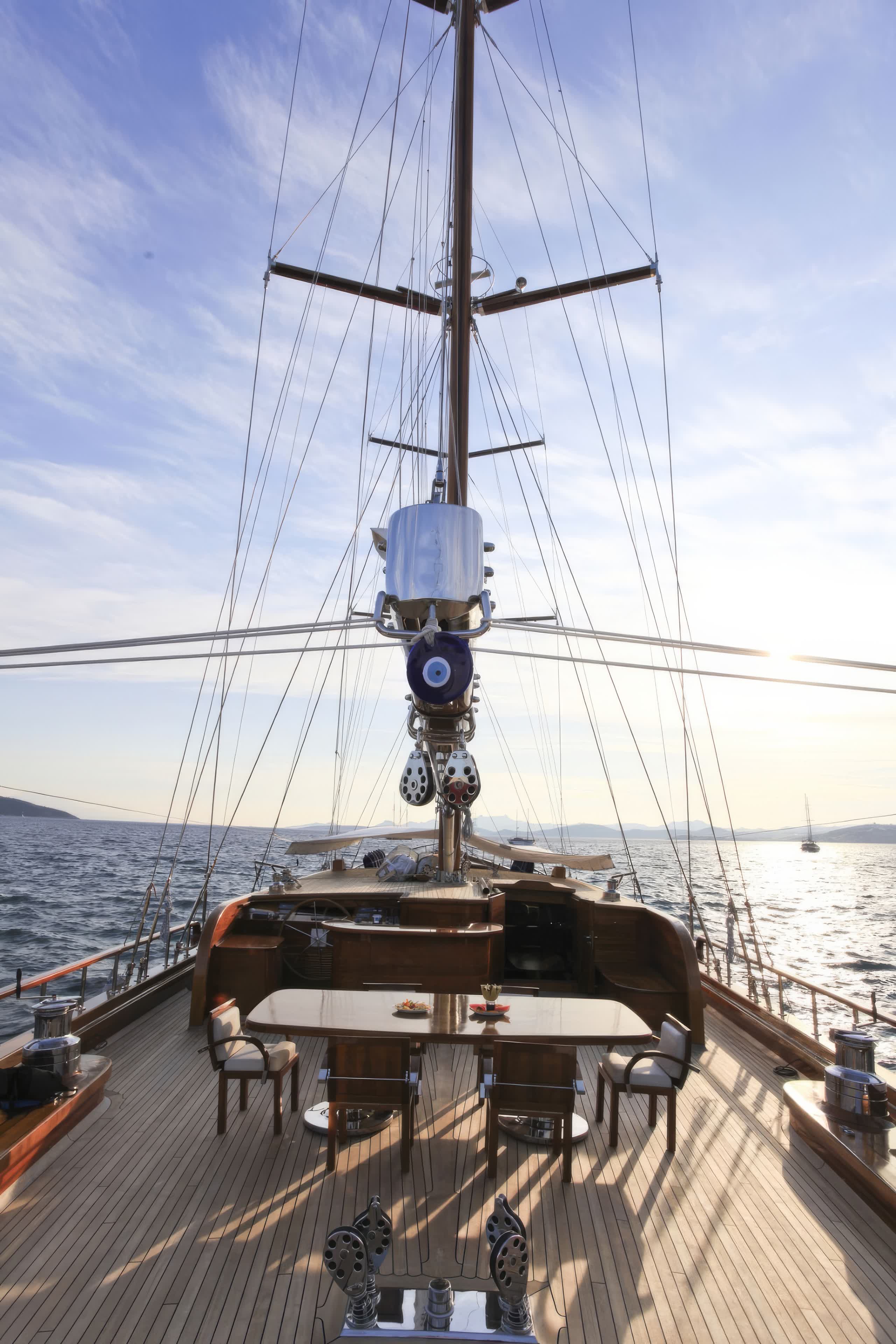 Cakiryildiz overview for the outside , the Gulet Cakiryildiz offers generous sunbathing areas and deck space for the guests on board to unwind and take in the lapping waters. The yacht’s deck features shaded and sun-bathing areas for dining when you’re not busy enjoying the sun. It also has a large deck for water sports, with a jet-ski, wakeboard and snorkels available for guests' use.