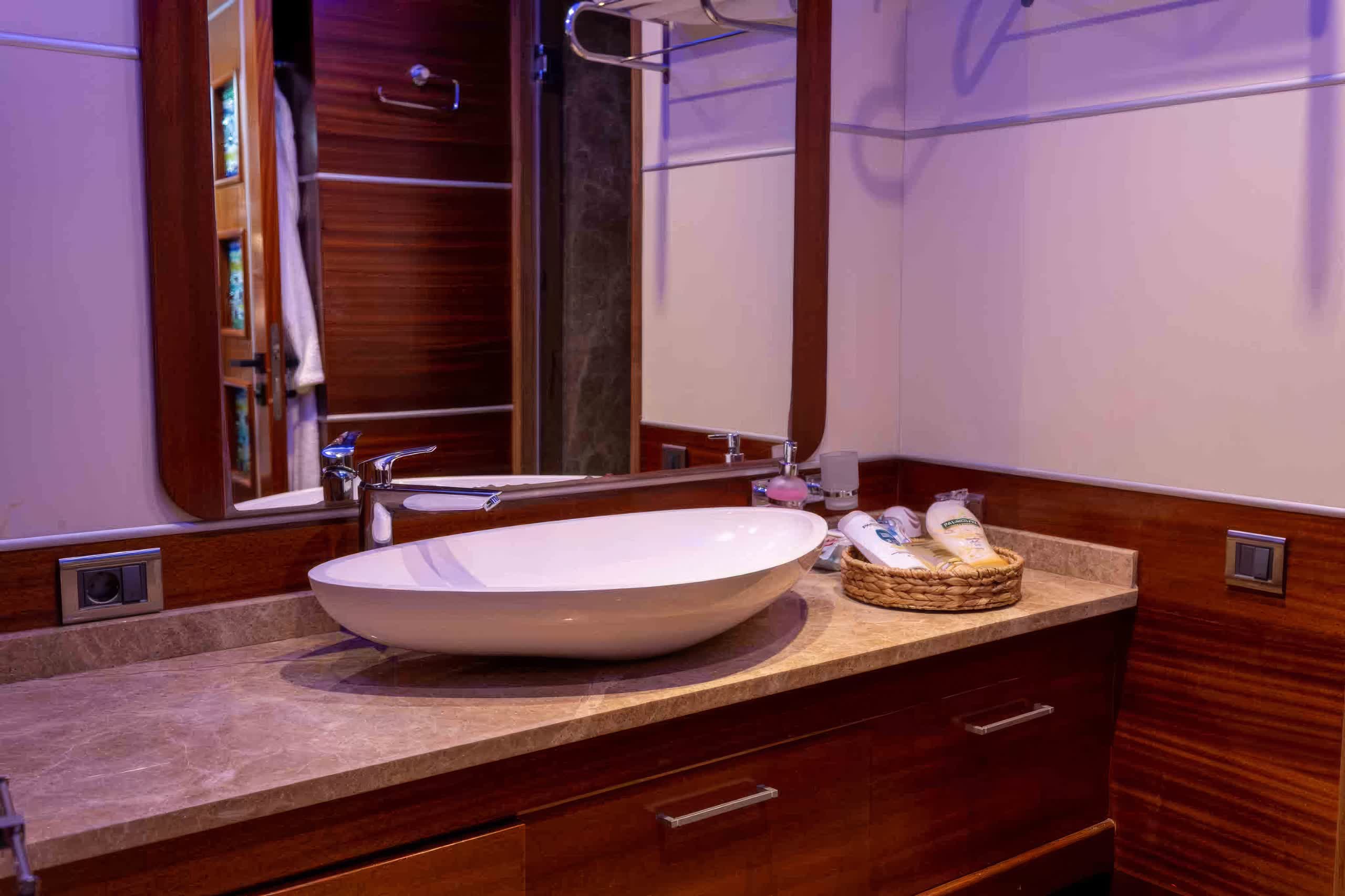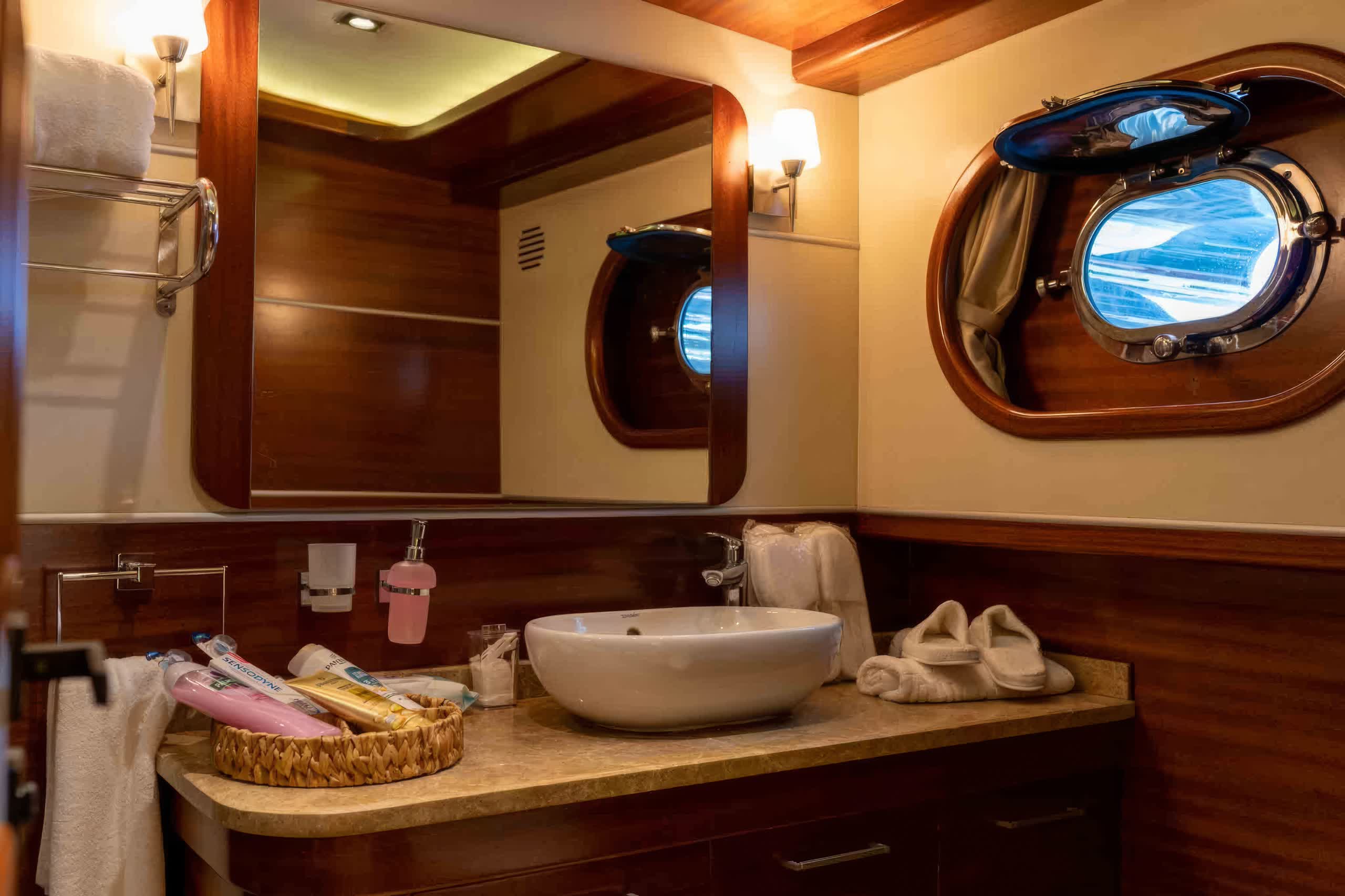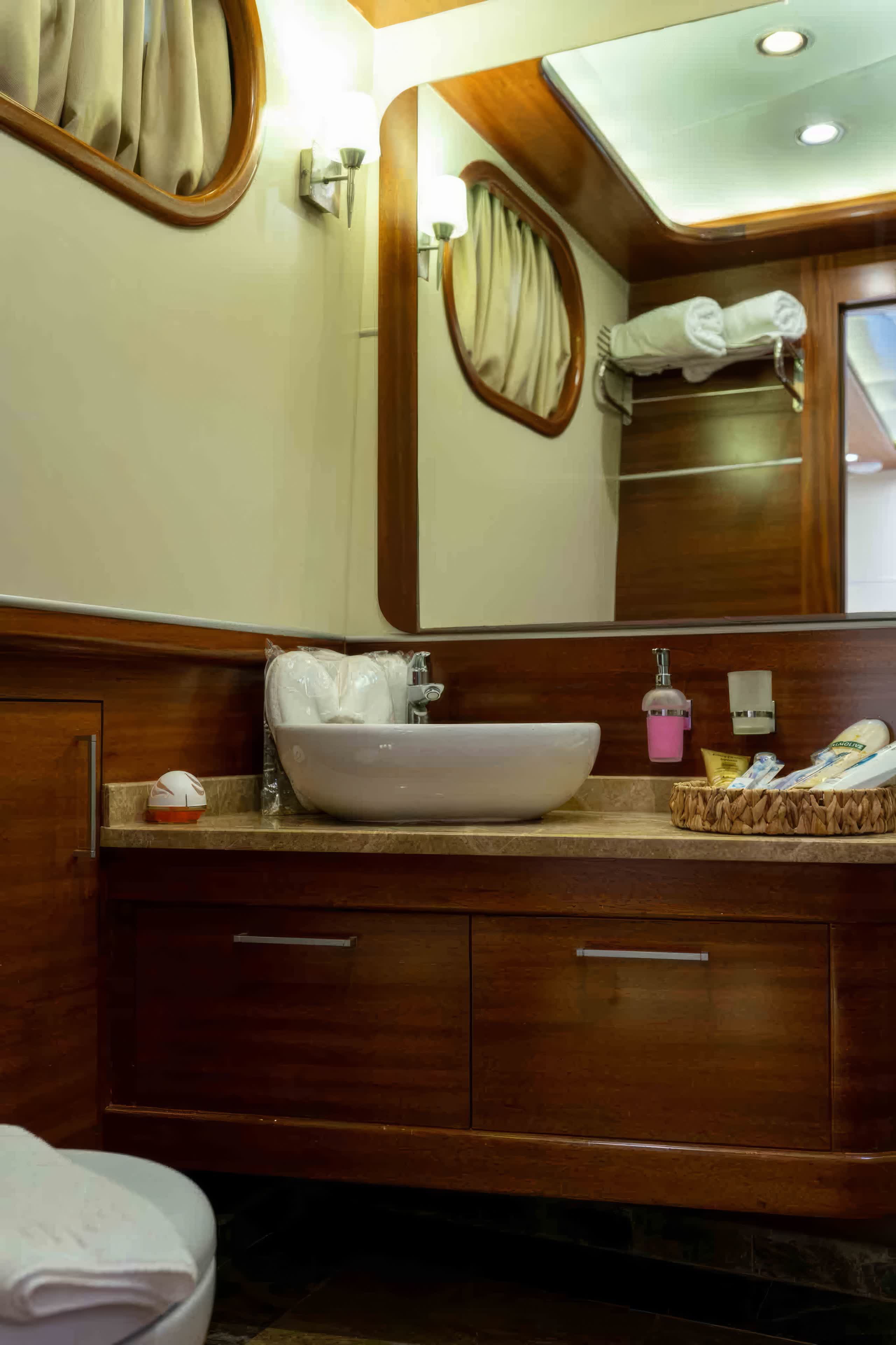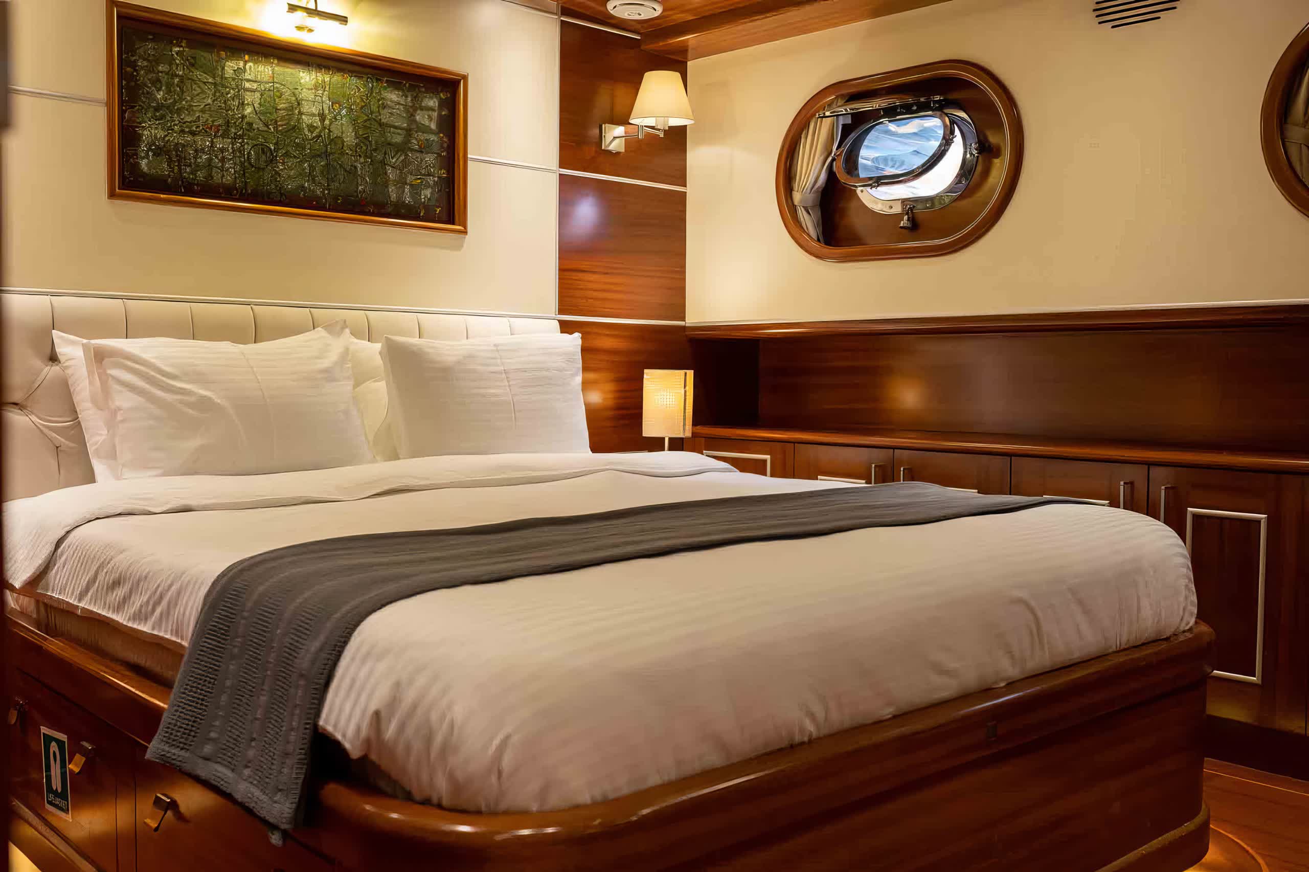 At 47m in length, La Bella Vita is a spacious and elegant yacht with artful detail and craftsmanship. Of particular note is its classic lines and traditional gulet but with a modern twist offering unrivalled hospitality. That rich wood paneling and plush furniture gives La Bella Vita a warm and welcoming feel. The yacht has six superbly-appointed cabins — two master suites, two double cabins and two twin cabins, all with en-suite bathrooms and modern amenities — for up to 12 guests. Cabins are spacious, comfortable, and tastefully decorated, offering a restful retreat after a day of exploring.