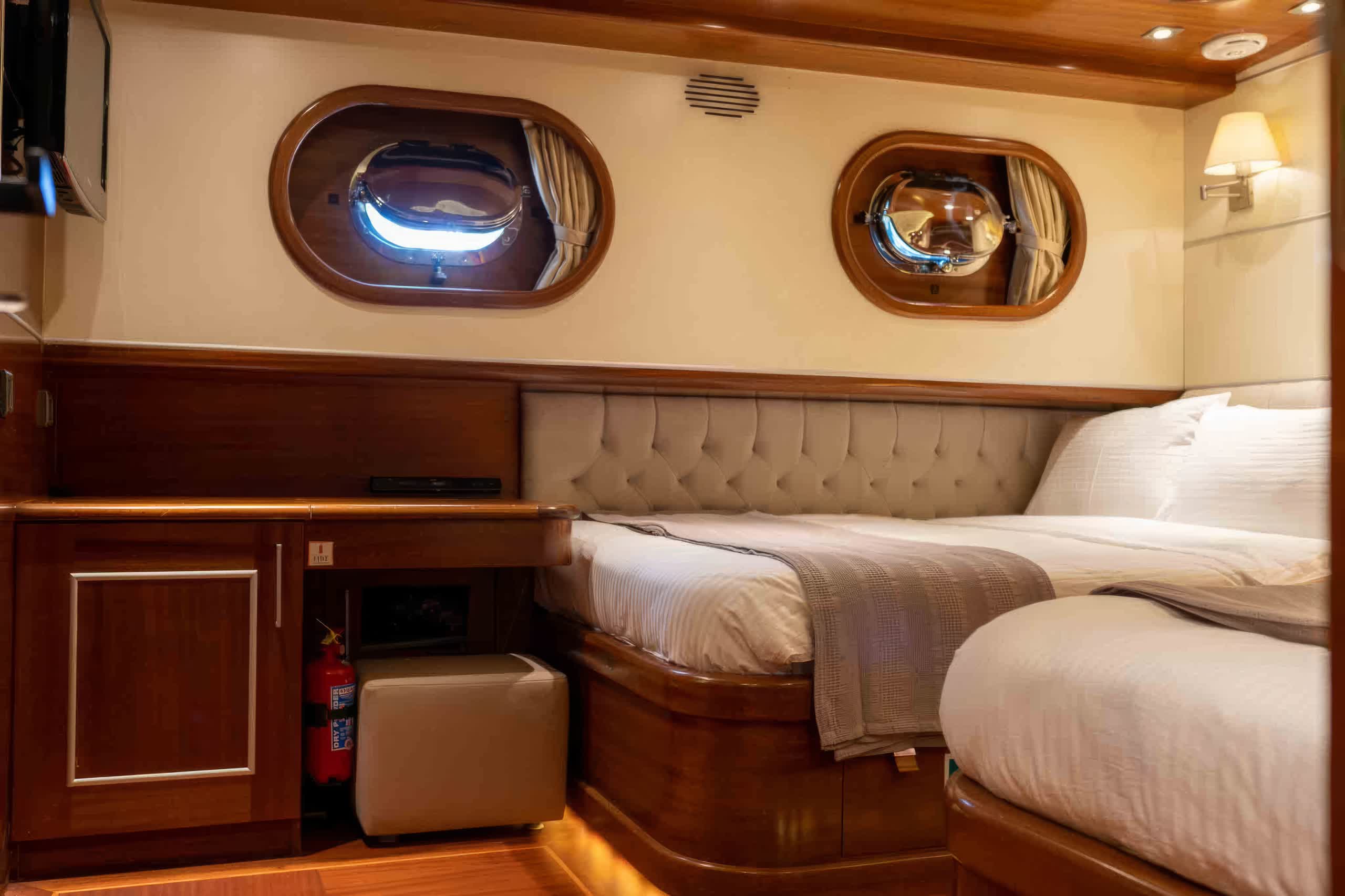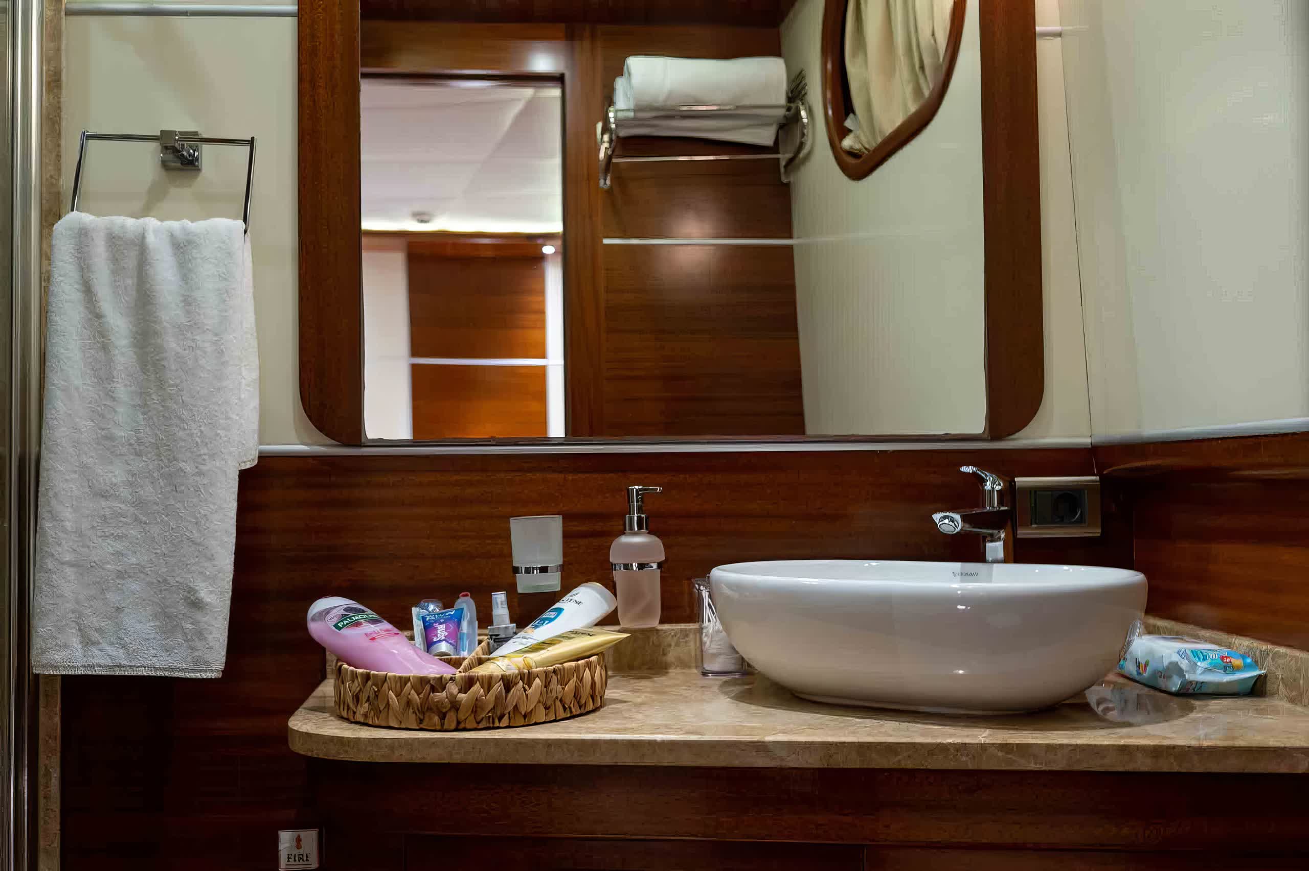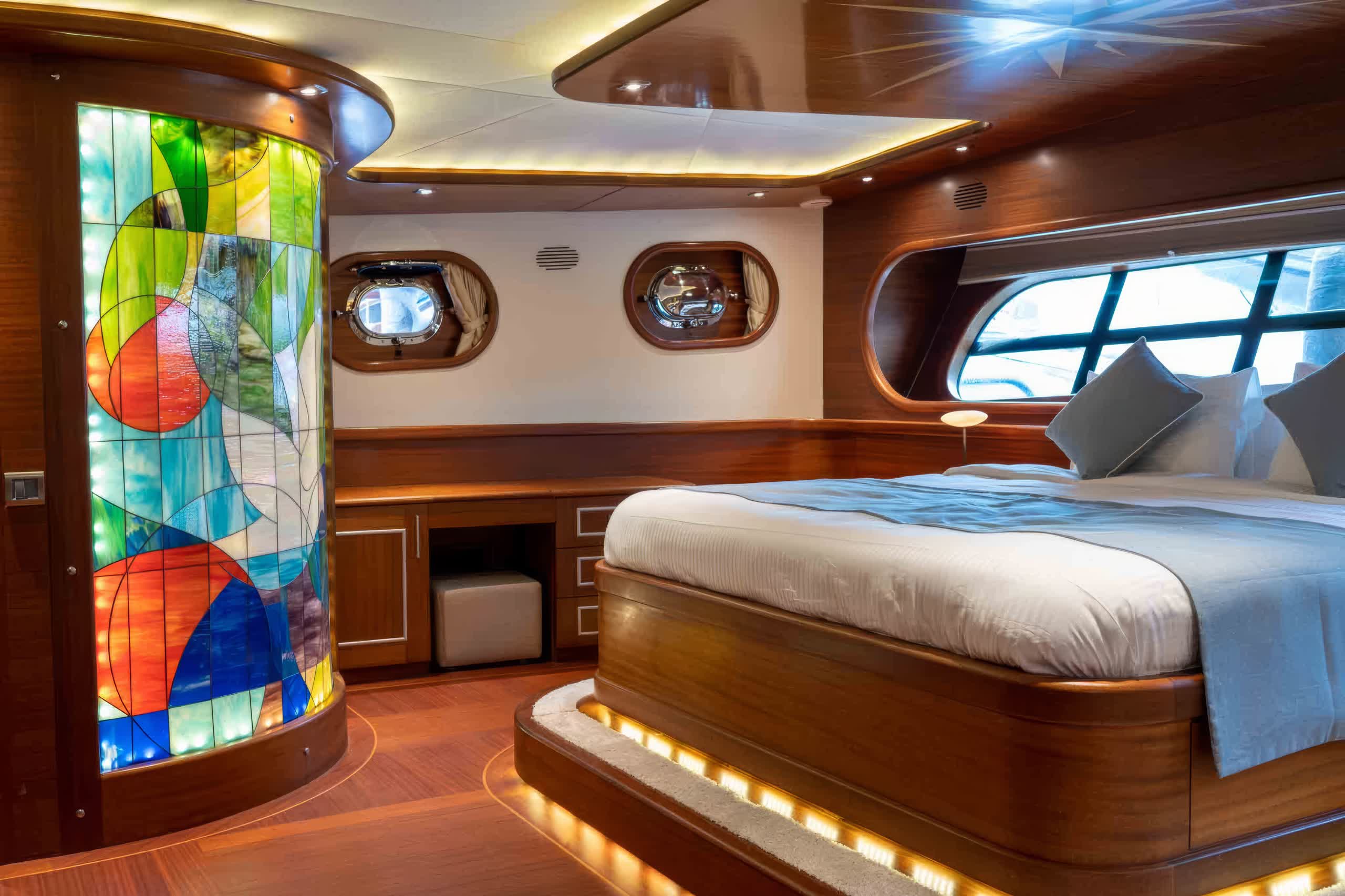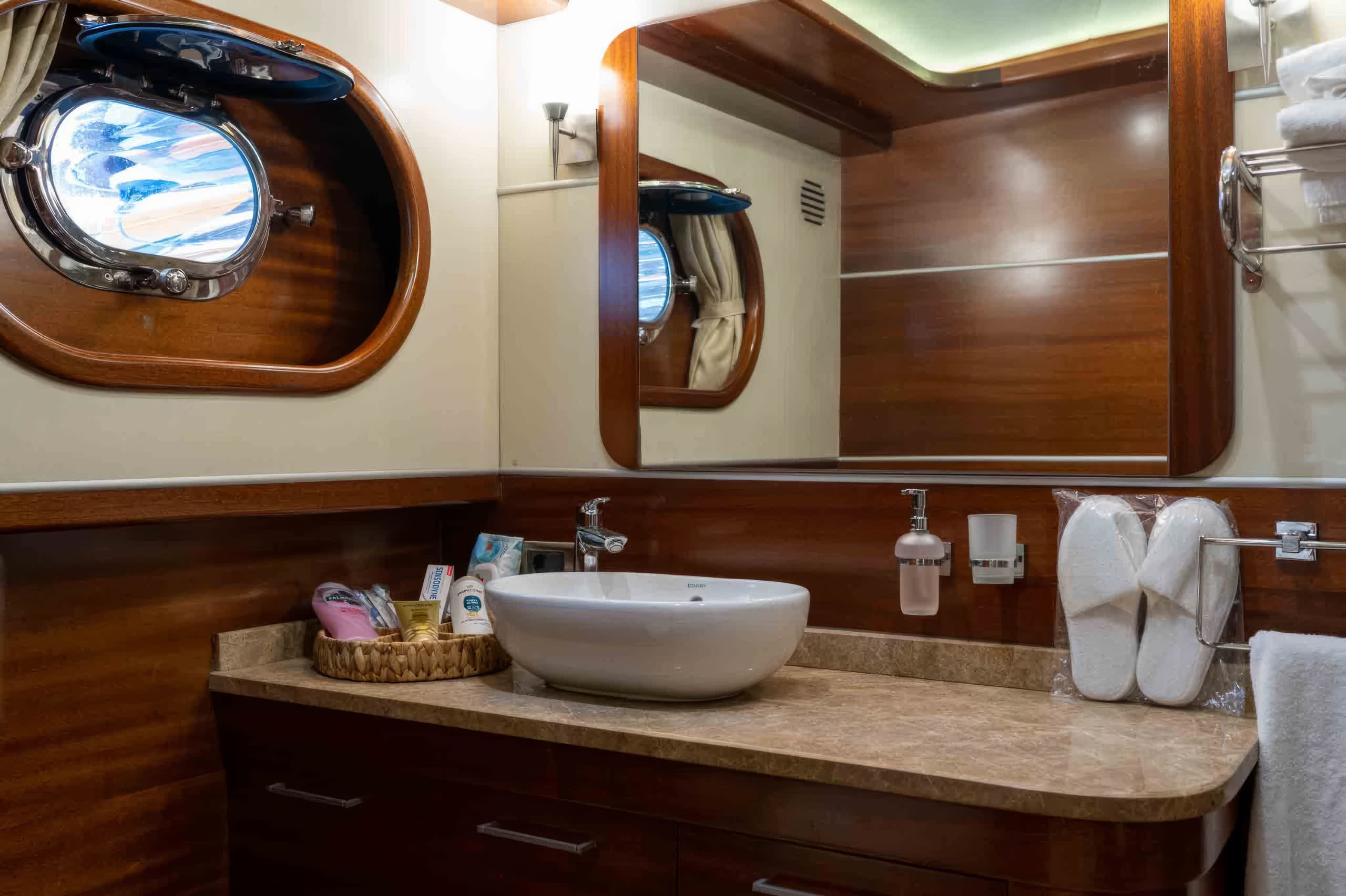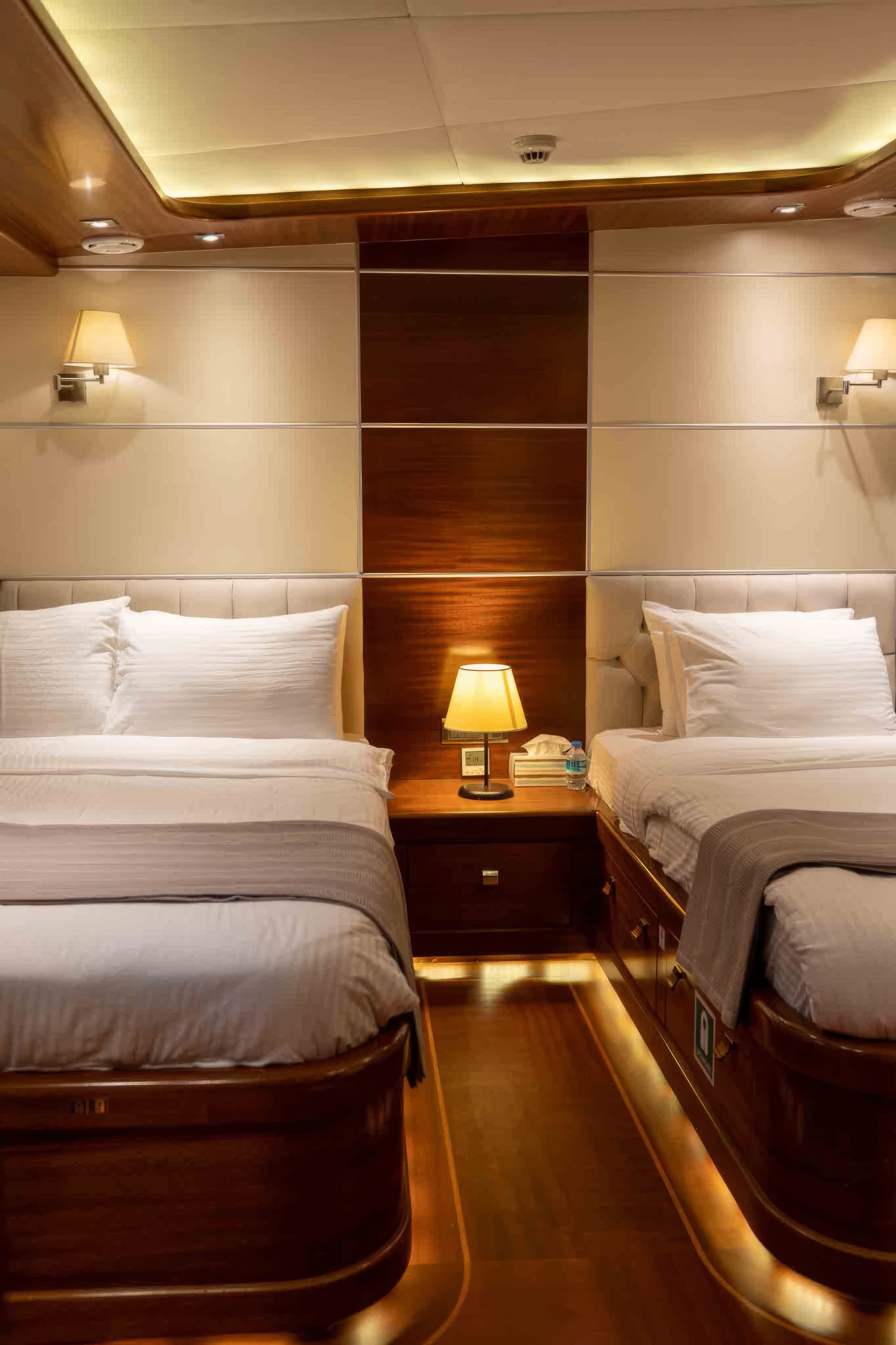 At 47m in length, La Bella Vita is a spacious and elegant yacht with artful detail and craftsmanship. Of particular note is its classic lines and traditional gulet but with a modern twist offering unrivalled hospitality. That rich wood paneling and plush furniture gives La Bella Vita a warm and welcoming feel. The yacht has six superbly-appointed cabins — two master suites, two double cabins and two twin cabins, all with en-suite bathrooms and modern amenities — for up to 12 guests. Cabins are spacious, comfortable, and tastefully decorated, offering a restful retreat after a day of exploring.