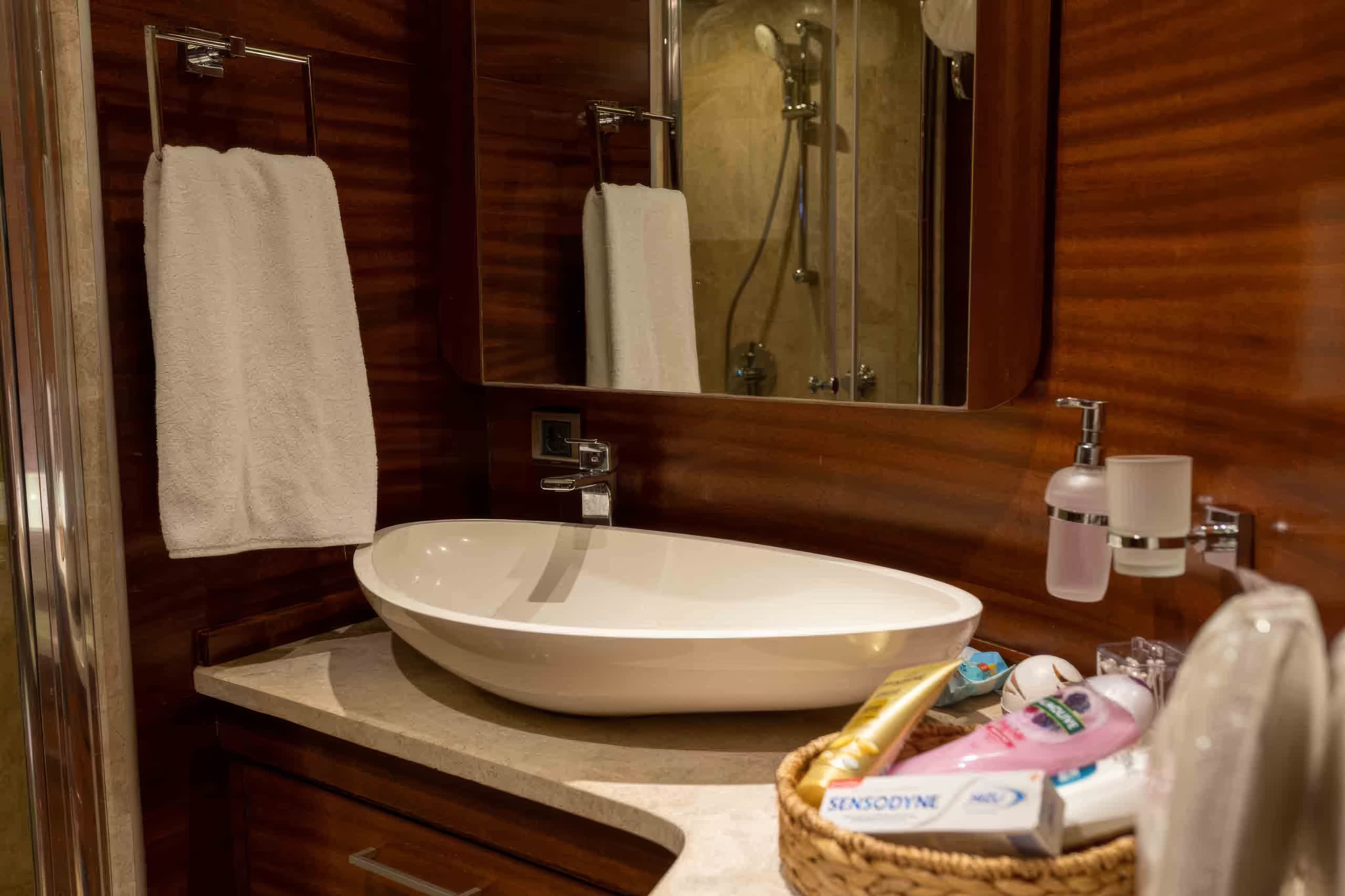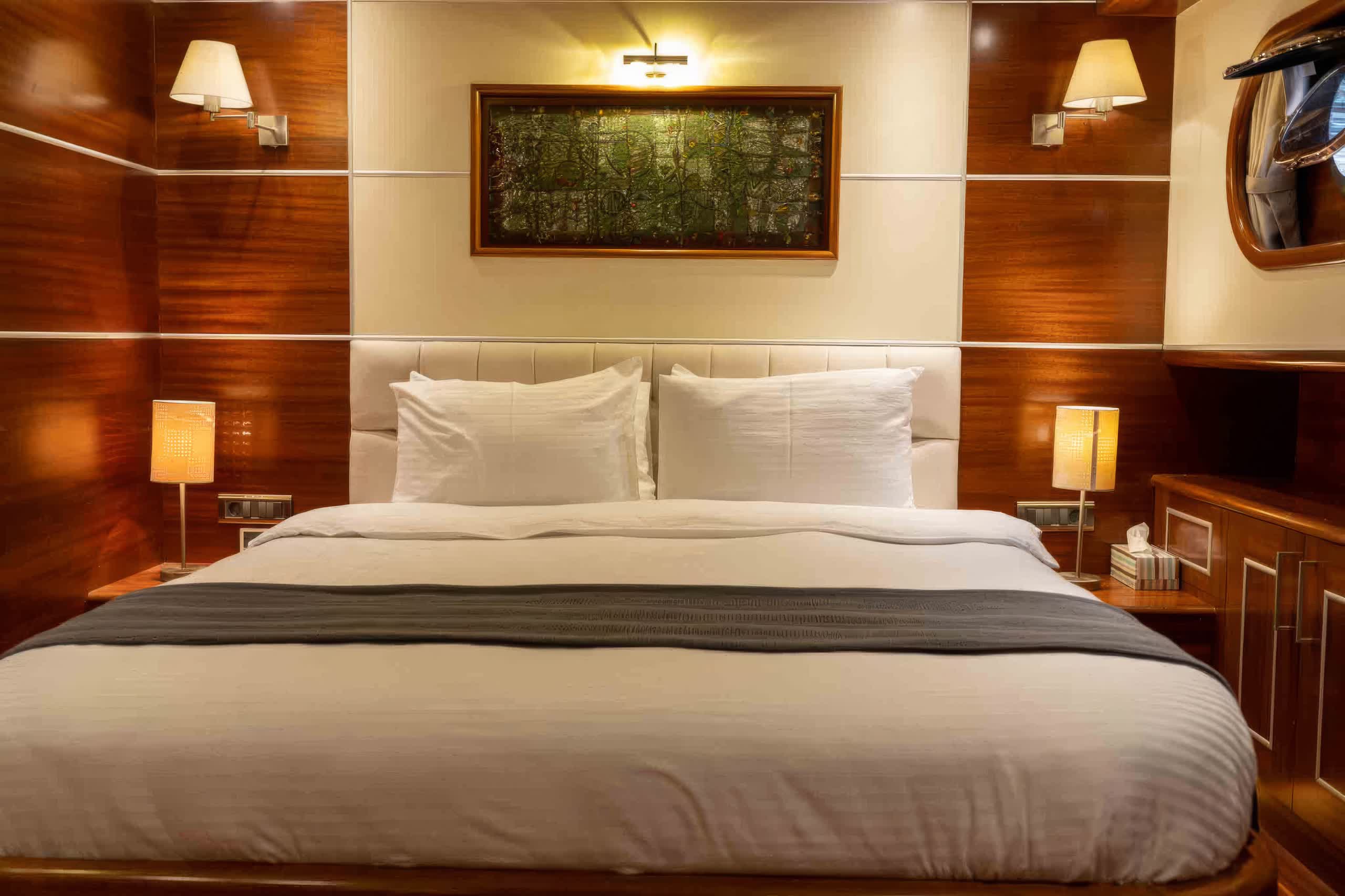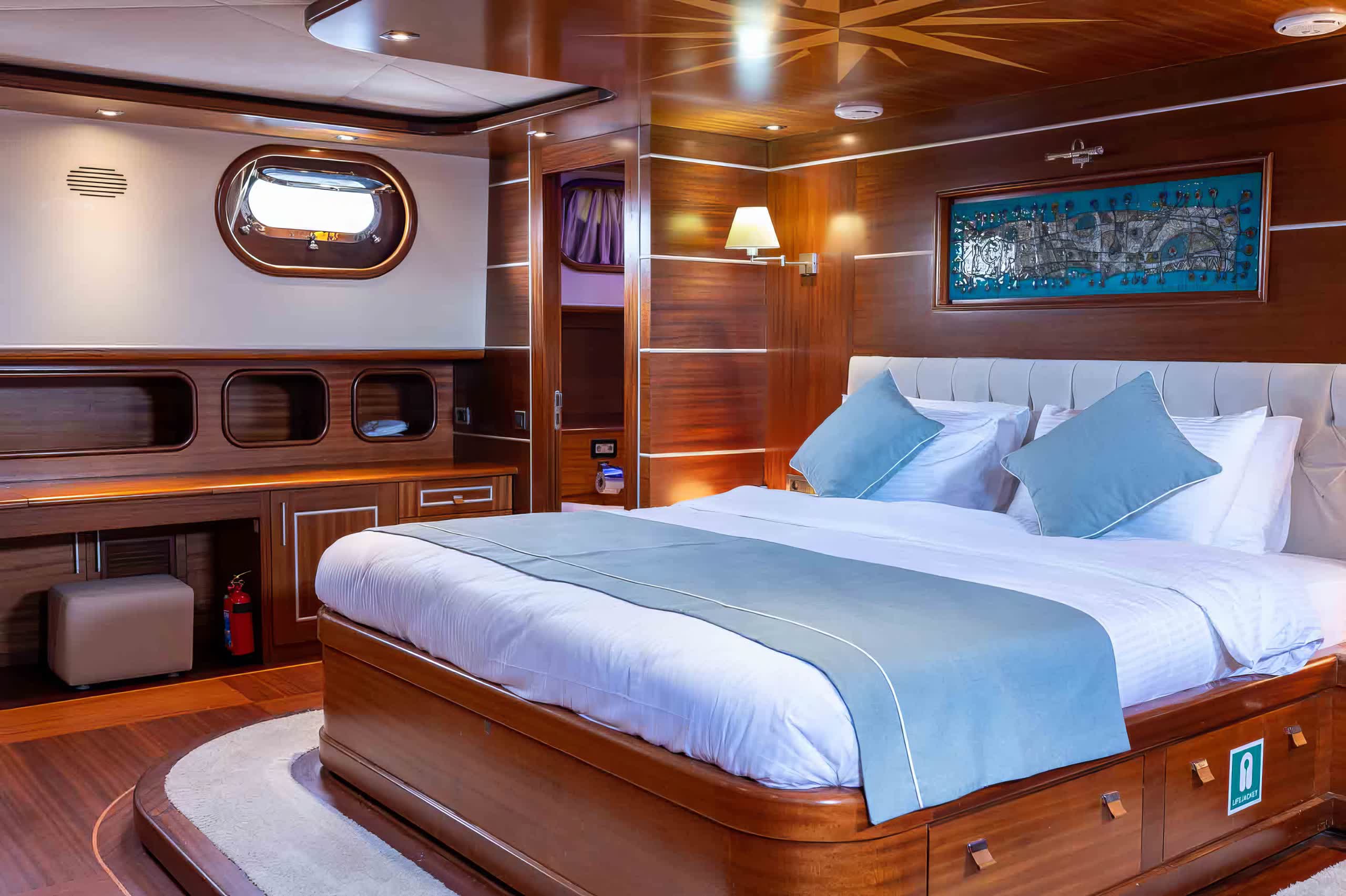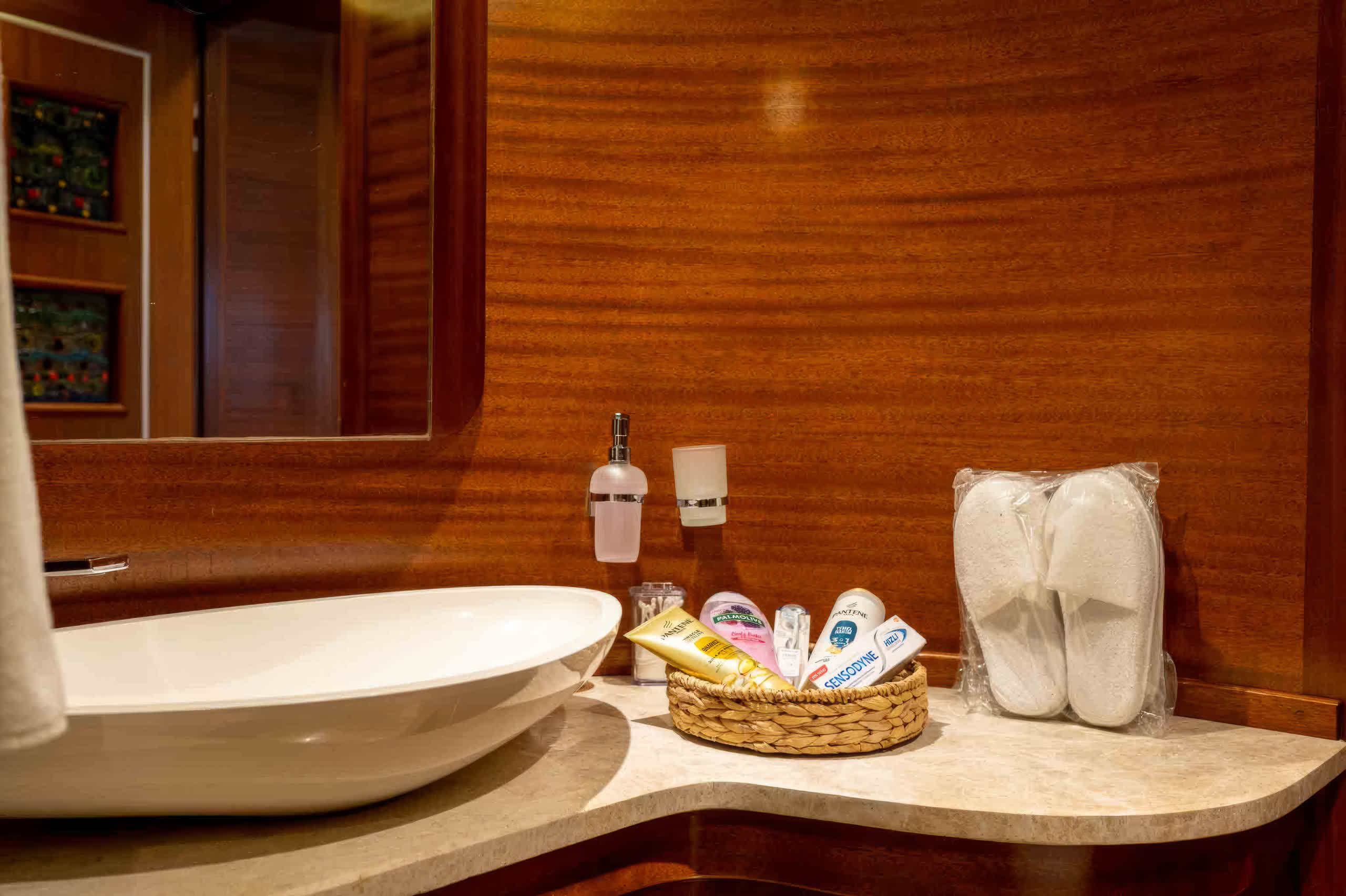 At 47m in length, La Bella Vita is a spacious and elegant yacht with artful detail and craftsmanship. Of particular note is its classic lines and traditional gulet but with a modern twist offering unrivalled hospitality. That rich wood paneling and plush furniture gives La Bella Vita a warm and welcoming feel. The yacht has six superbly-appointed cabins — two master suites, two double cabins and two twin cabins, all with en-suite bathrooms and modern amenities — for up to 12 guests. Cabins are spacious, comfortable, and tastefully decorated, offering a restful retreat after a day of exploring.