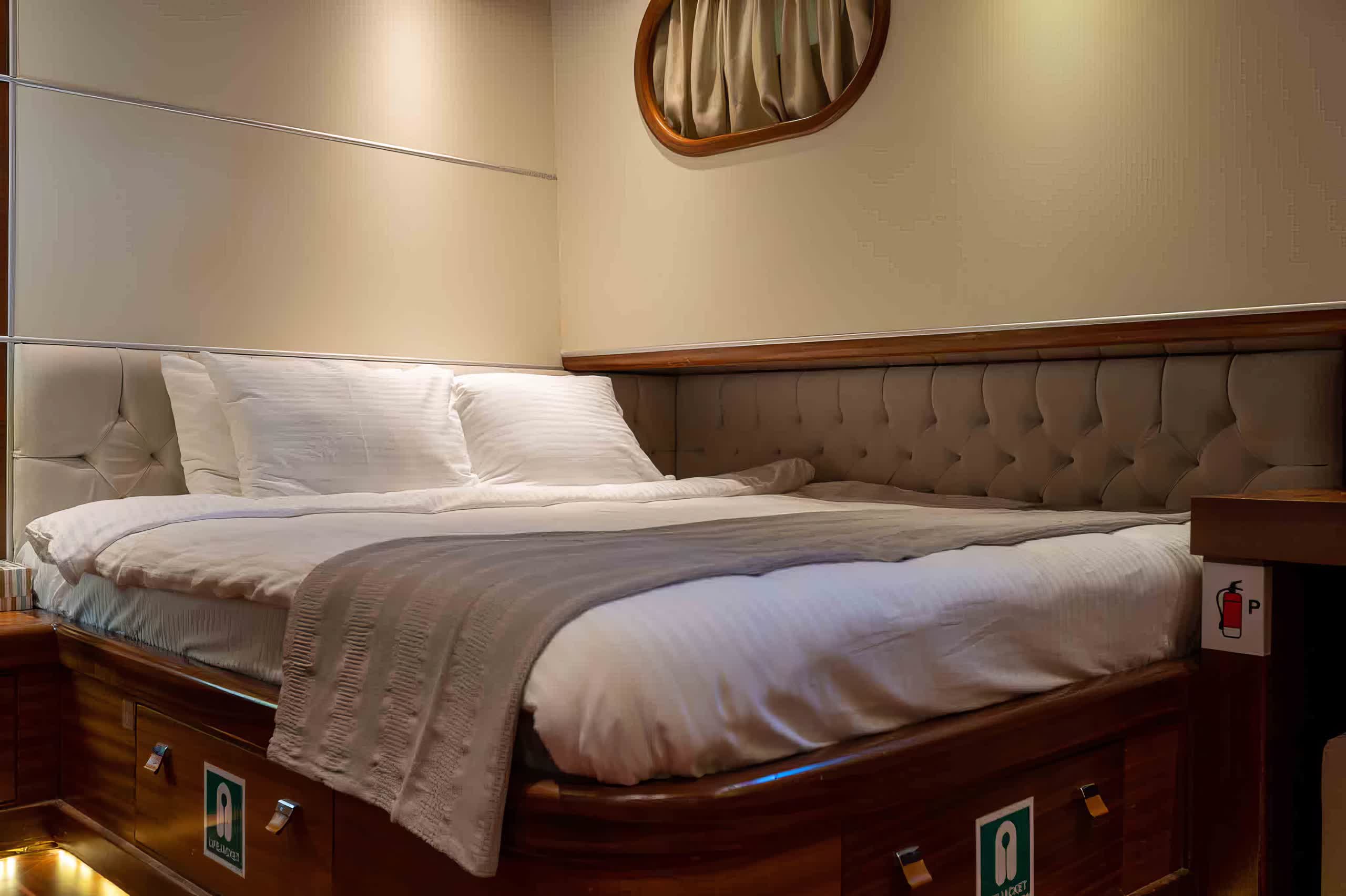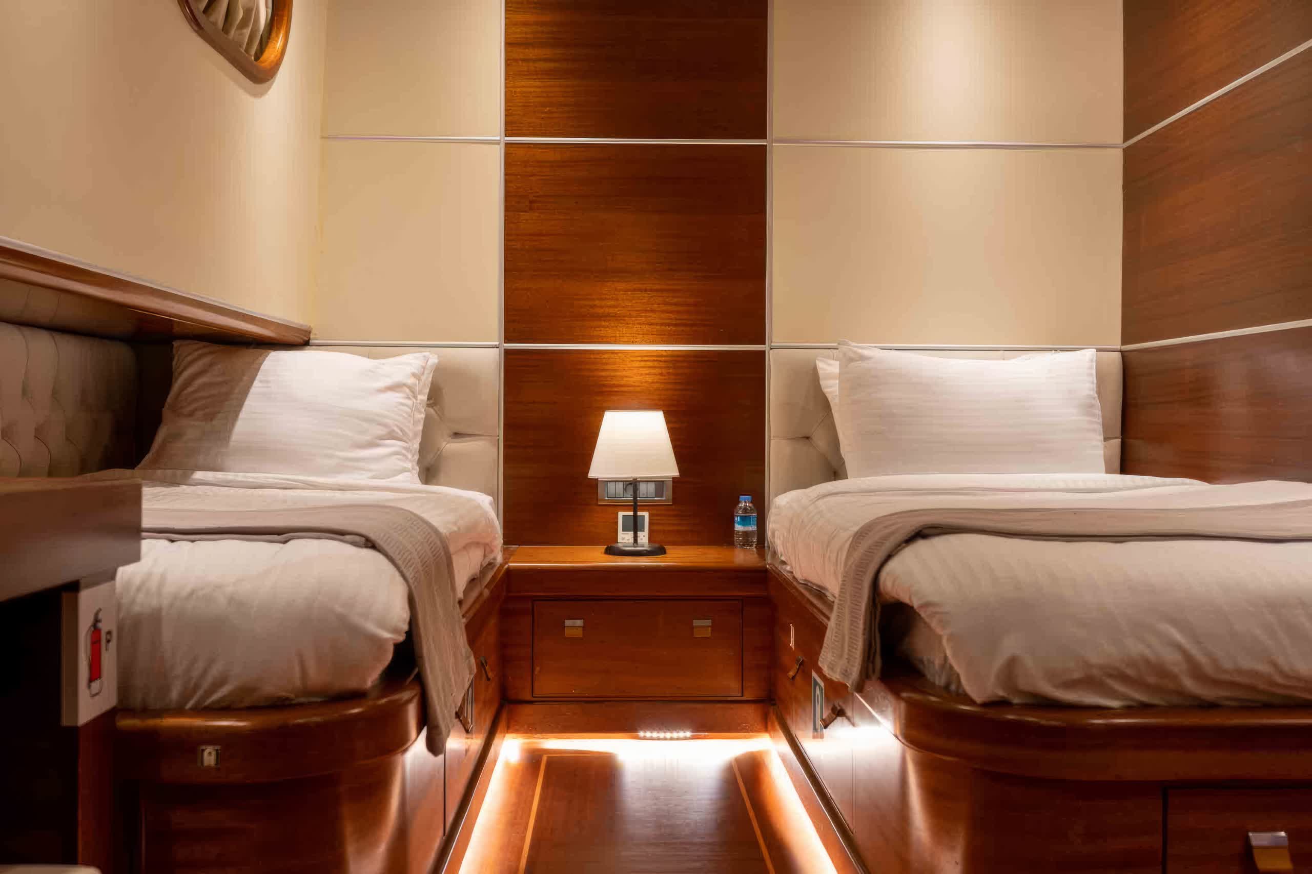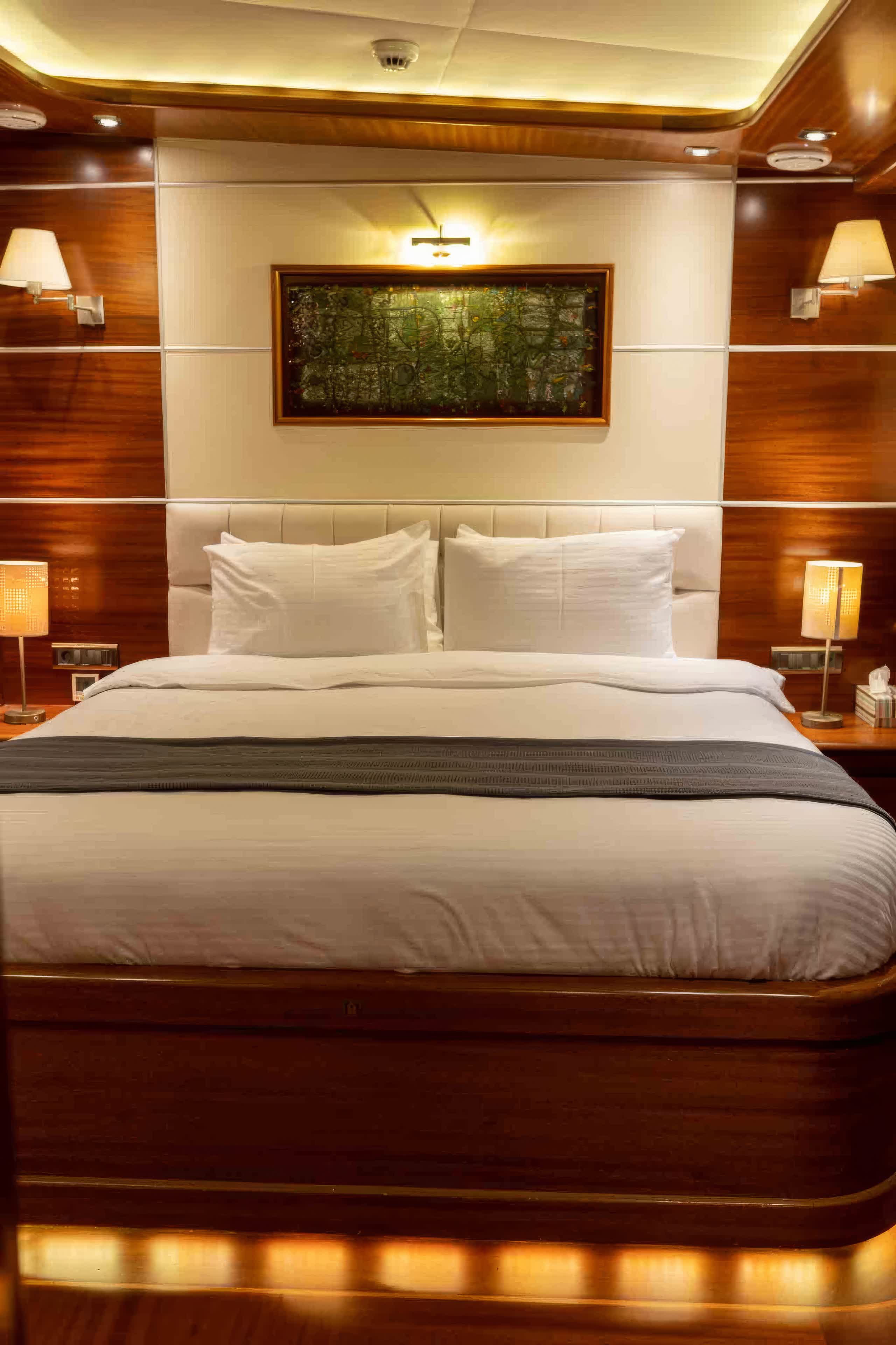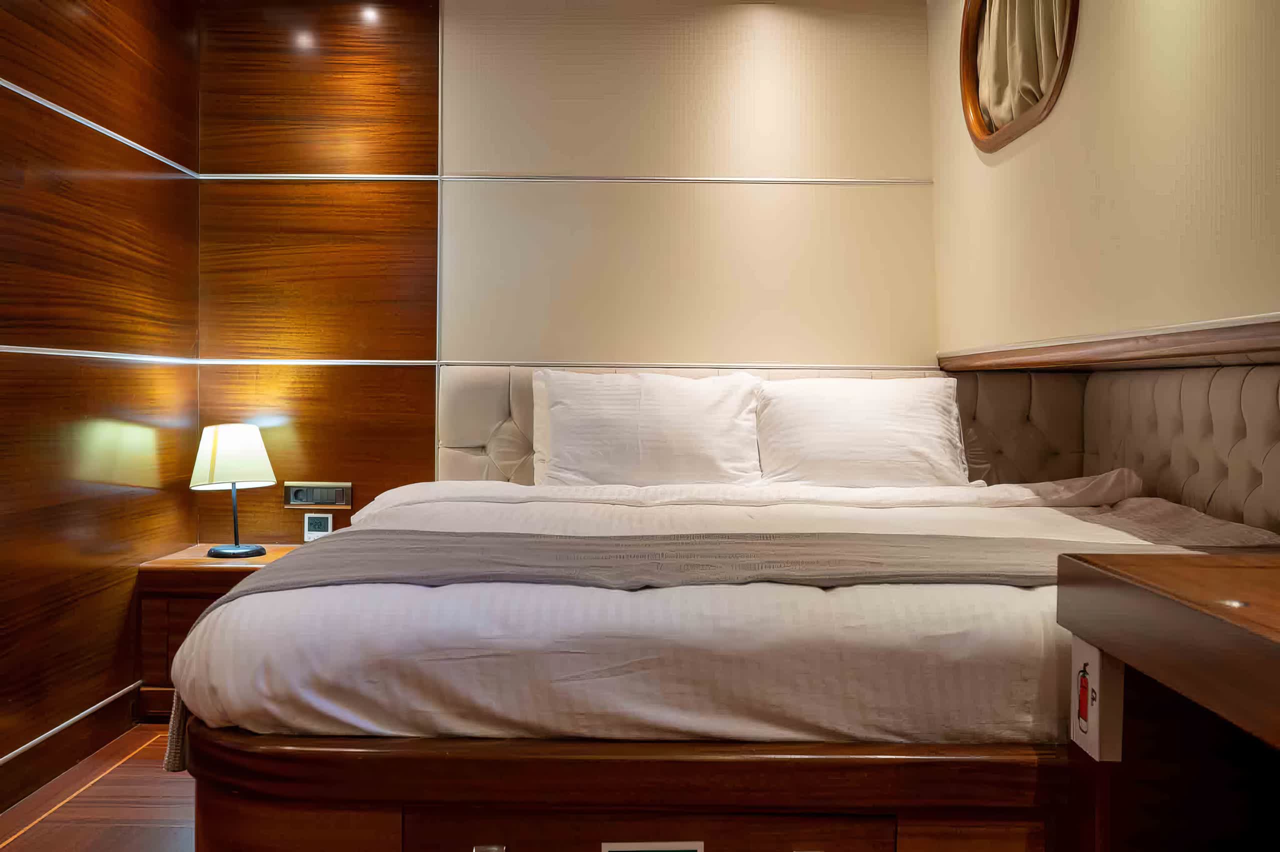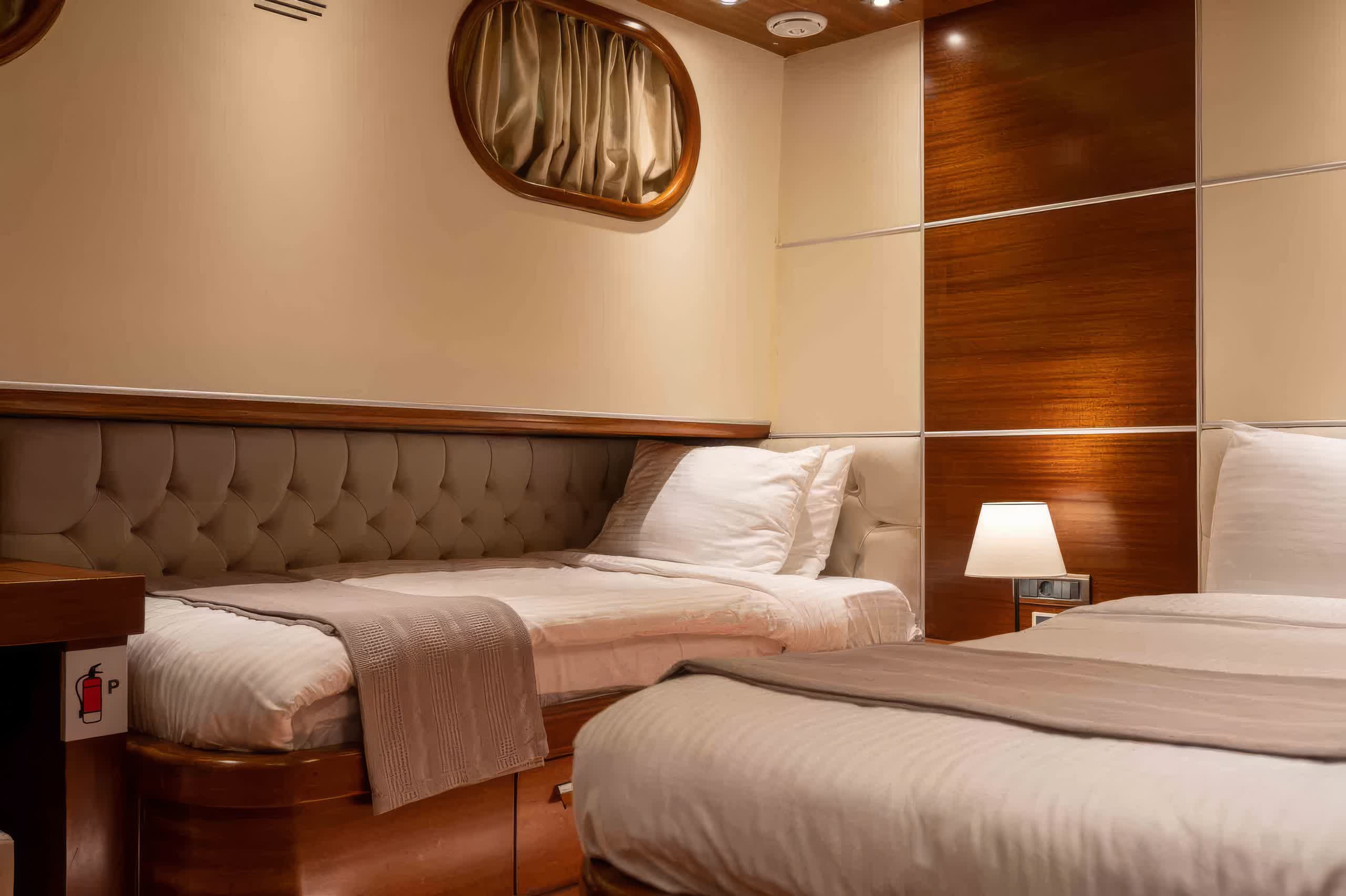 At 47m in length, La Bella Vita is a spacious and elegant yacht with artful detail and craftsmanship. Of particular note is its classic lines and traditional gulet but with a modern twist offering unrivalled hospitality. That rich wood paneling and plush furniture gives La Bella Vita a warm and welcoming feel. The yacht has six superbly-appointed cabins — two master suites, two double cabins and two twin cabins, all with en-suite bathrooms and modern amenities — for up to 12 guests. Cabins are spacious, comfortable, and tastefully decorated, offering a restful retreat after a day of exploring.