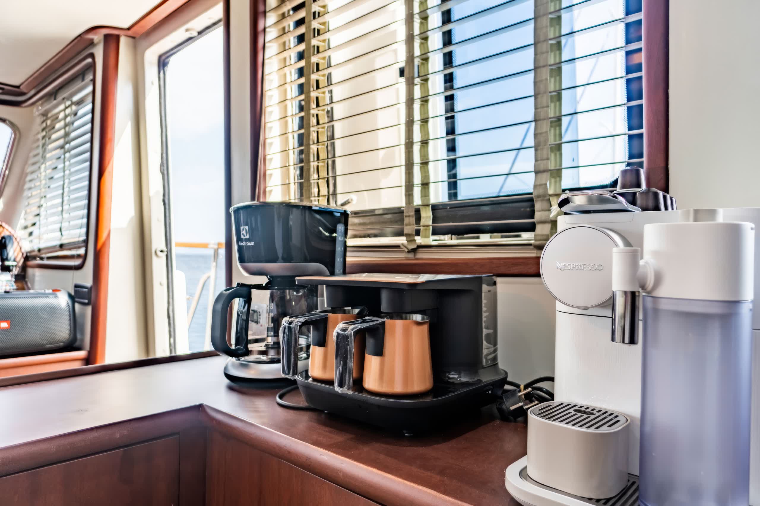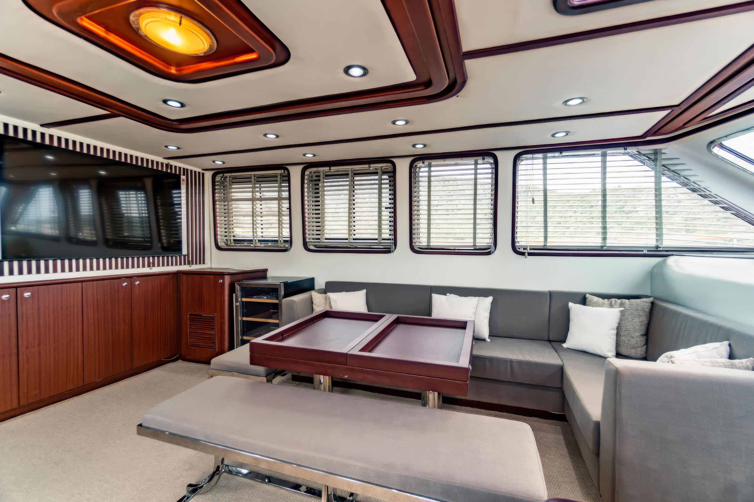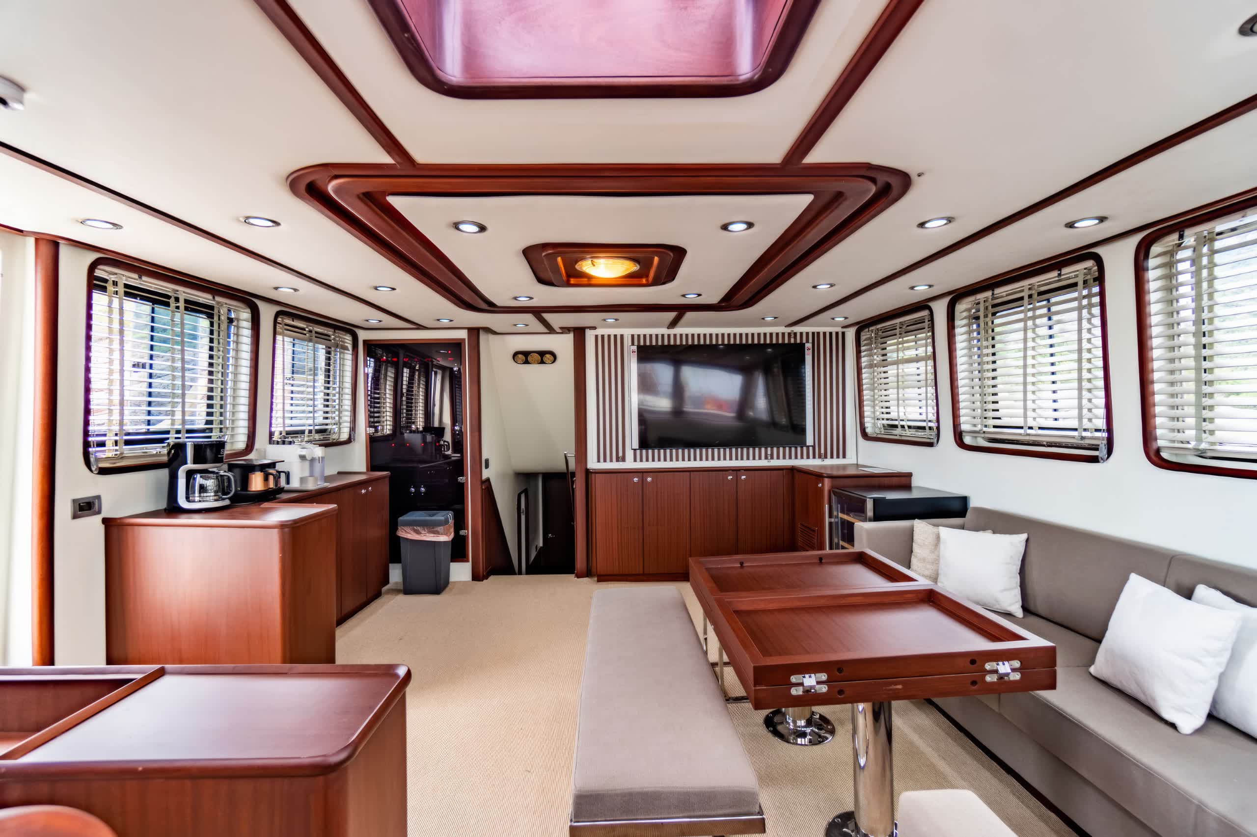 The main salon is an intimate but elegant place to relax with plush seating, a dining space and entertainment equipment. Luja also has plenty of space to unwind or entertain on deck. The aft deck has a big dining table so that guests can eat alfresco meals prepared by an on-board chef. The rear deck has a casual sunbathing area, perfect for lounging in the Mediterranean sun. The design of the yacht allows for ample guest space for socialization and to enjoy the scenery in comfort.