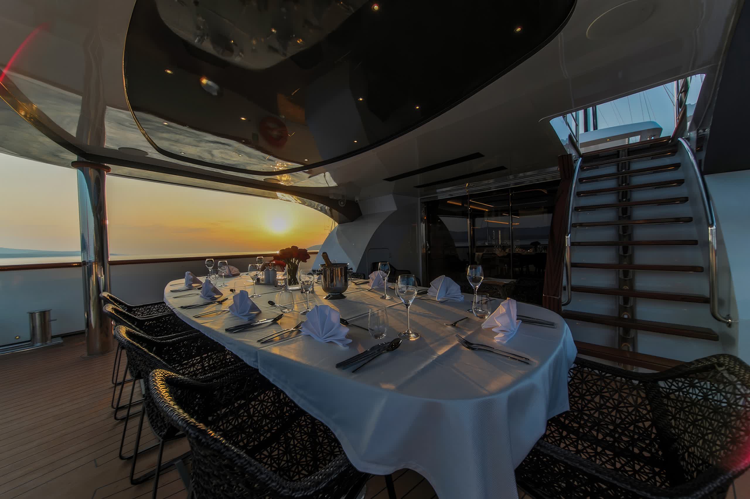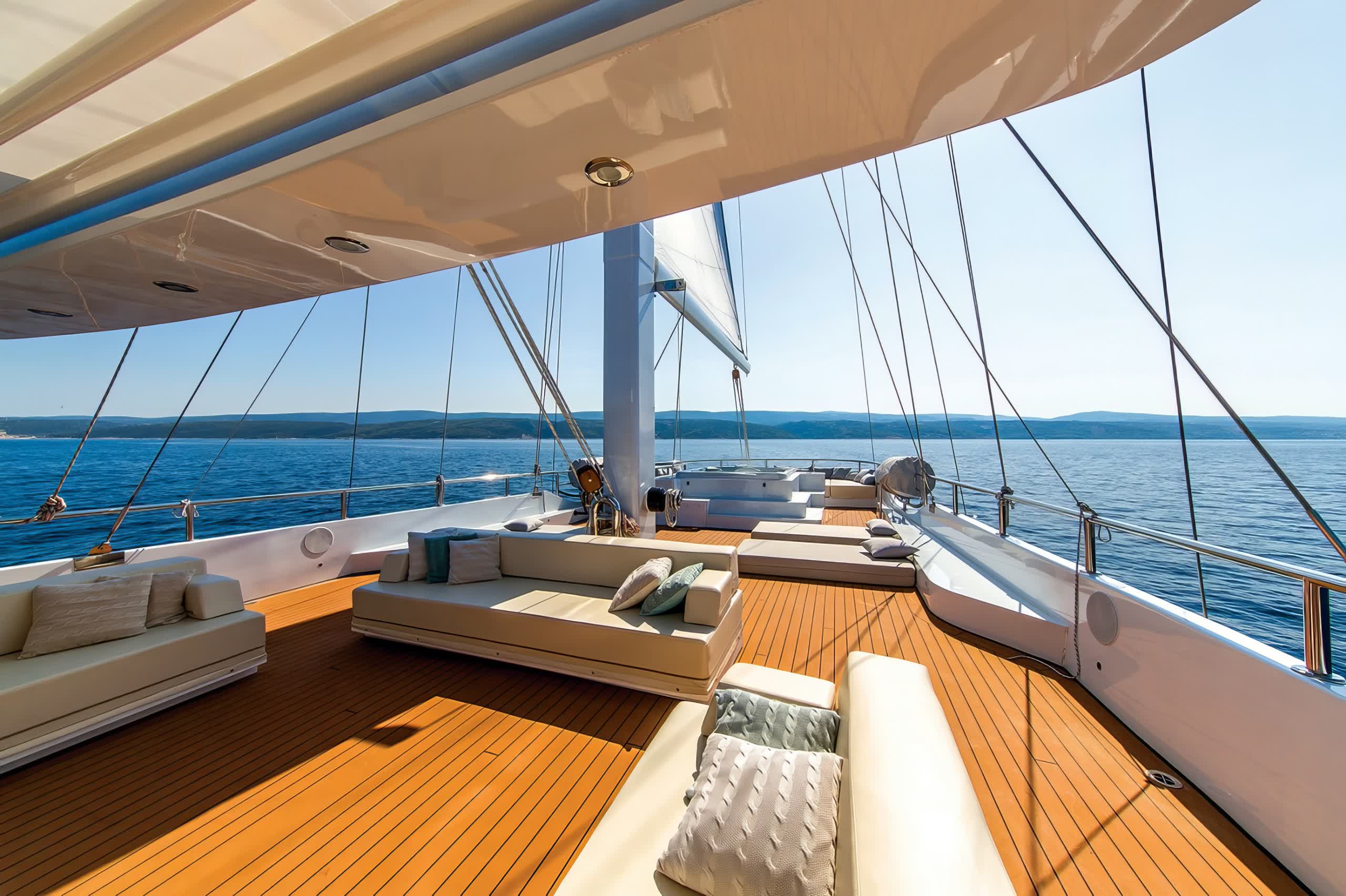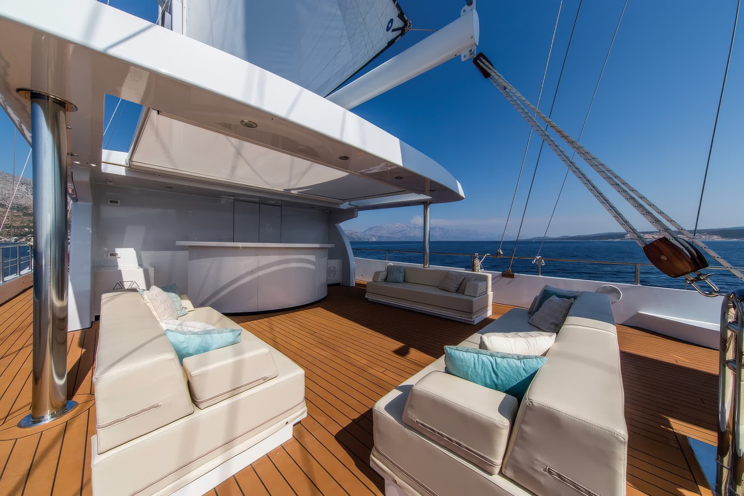 She can accommodate 12 guests across 6 stunning cabins, including a master suite, VIP suite, 2 double cabins and 2 twin cabins. The en-suite bathrooms, air conditioning, and quality furnishing of each cabin allow all the passengers to retreat in comfort and privacy. They include modern structures and warm, inviting interiors with rich wood paneling and contemporary finishes for both luxury and relaxation. Omnia features generously spacious outdoor spaces for all to sit above the water and soak in the scenery. The aft deck includes a huge al fresco dining space, ideal for taking in meals cooked by the professional onboard chef. She boasts an extensive forward deck for sunbathing with sunbeds and a shaded dining area, perfect for enjoying the view over the Turkish coast.