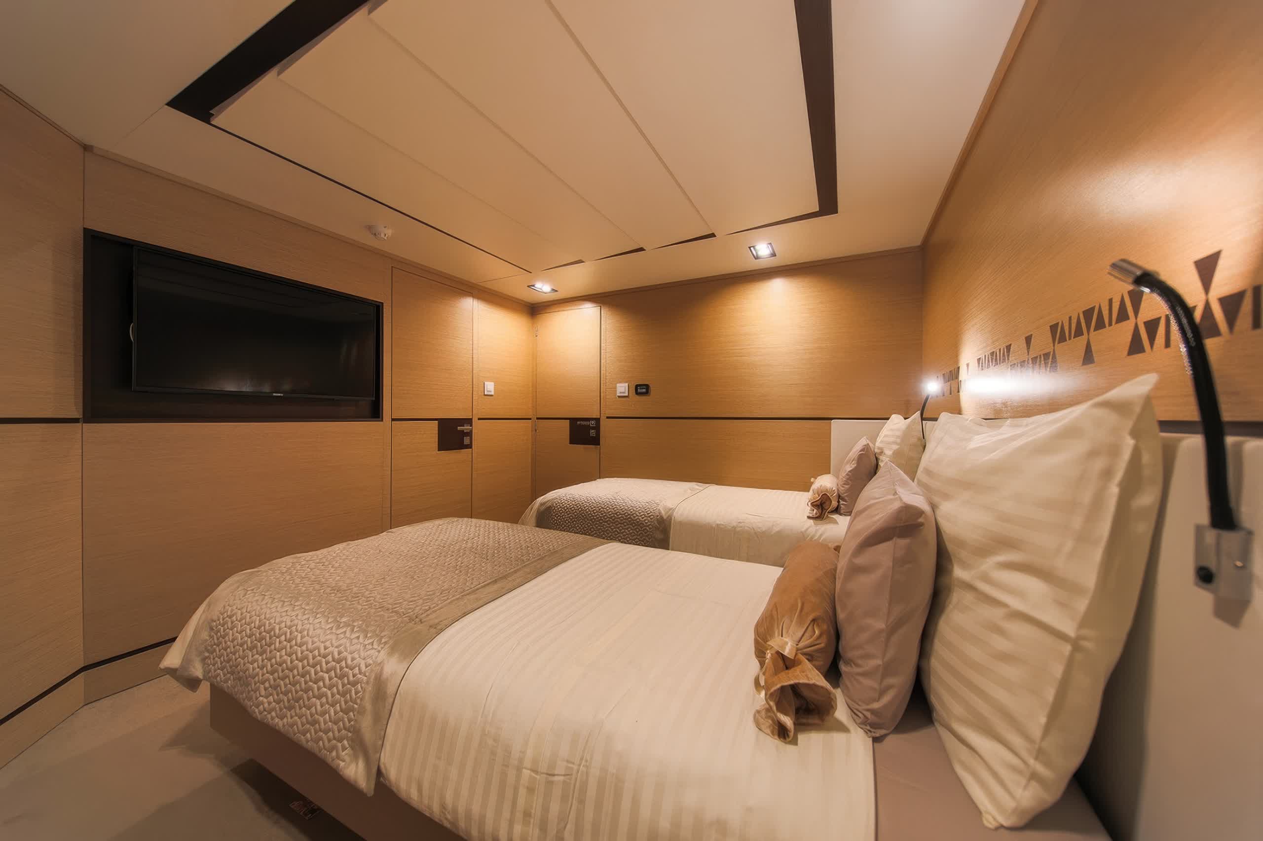 Accommodation for maximum 12 guests in 6 cabins, crew of 10 and their expenses, insurance of the yacht, use of recreational equipment, tourist taxes, Wi-Fi.