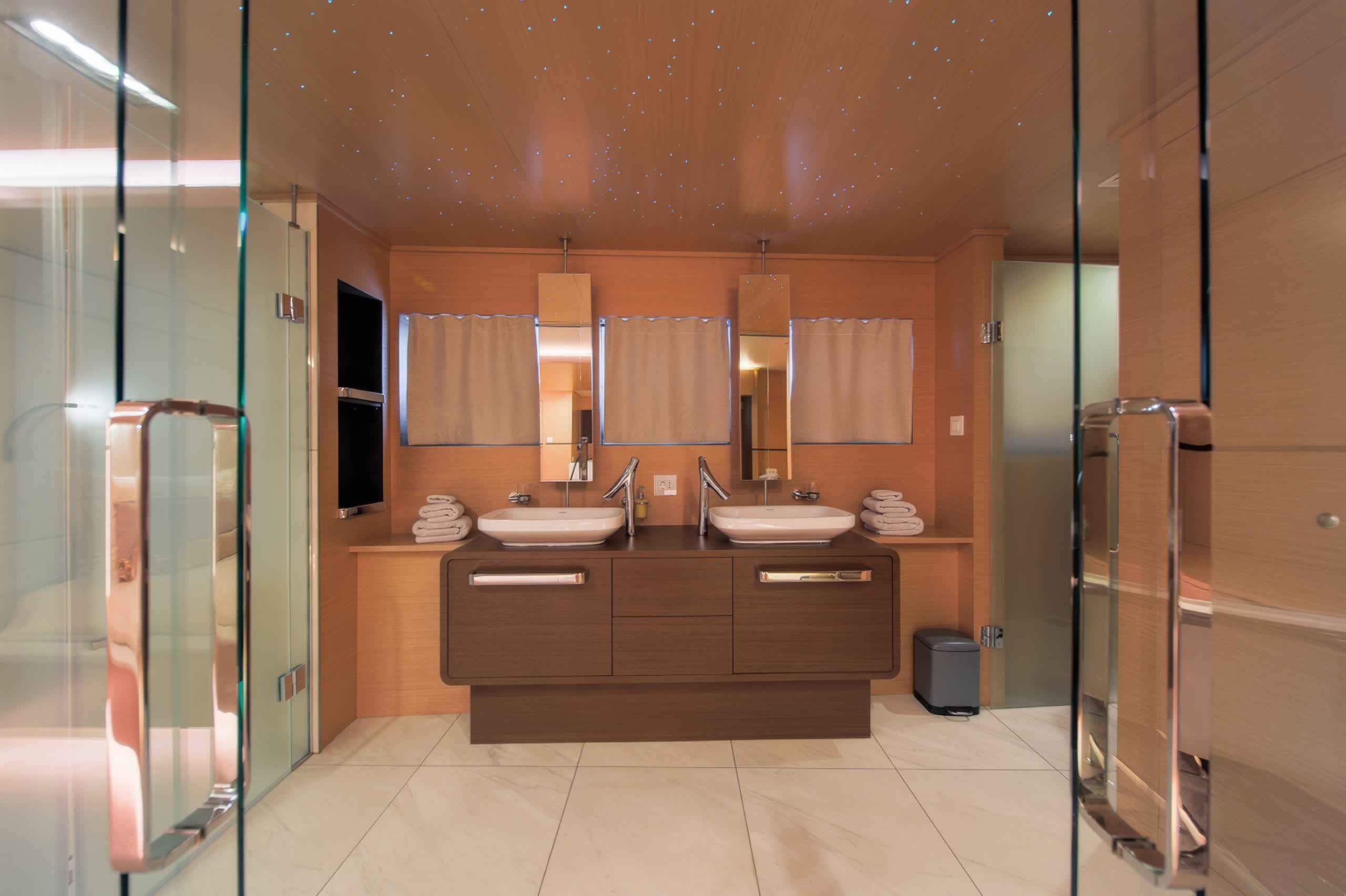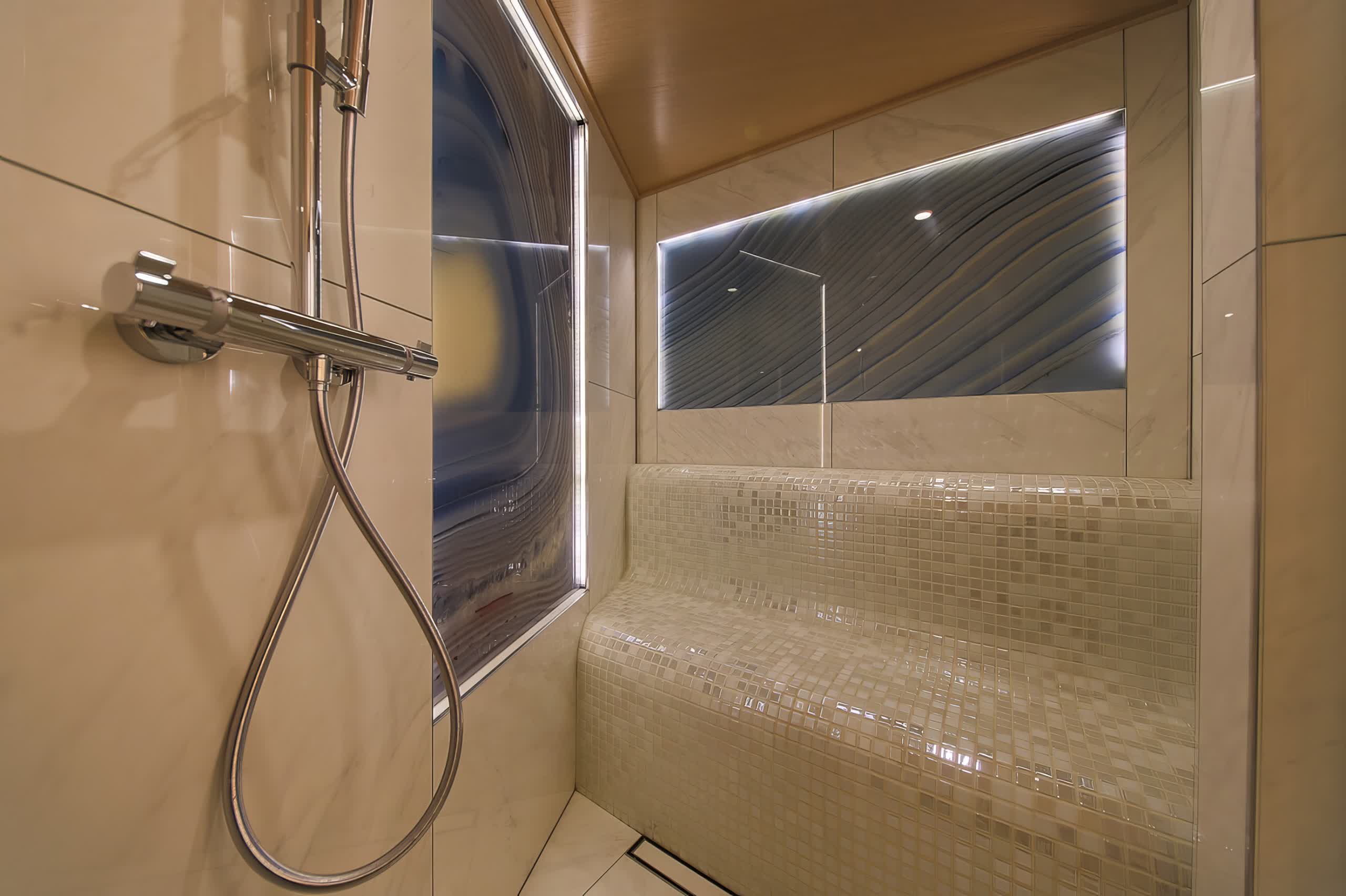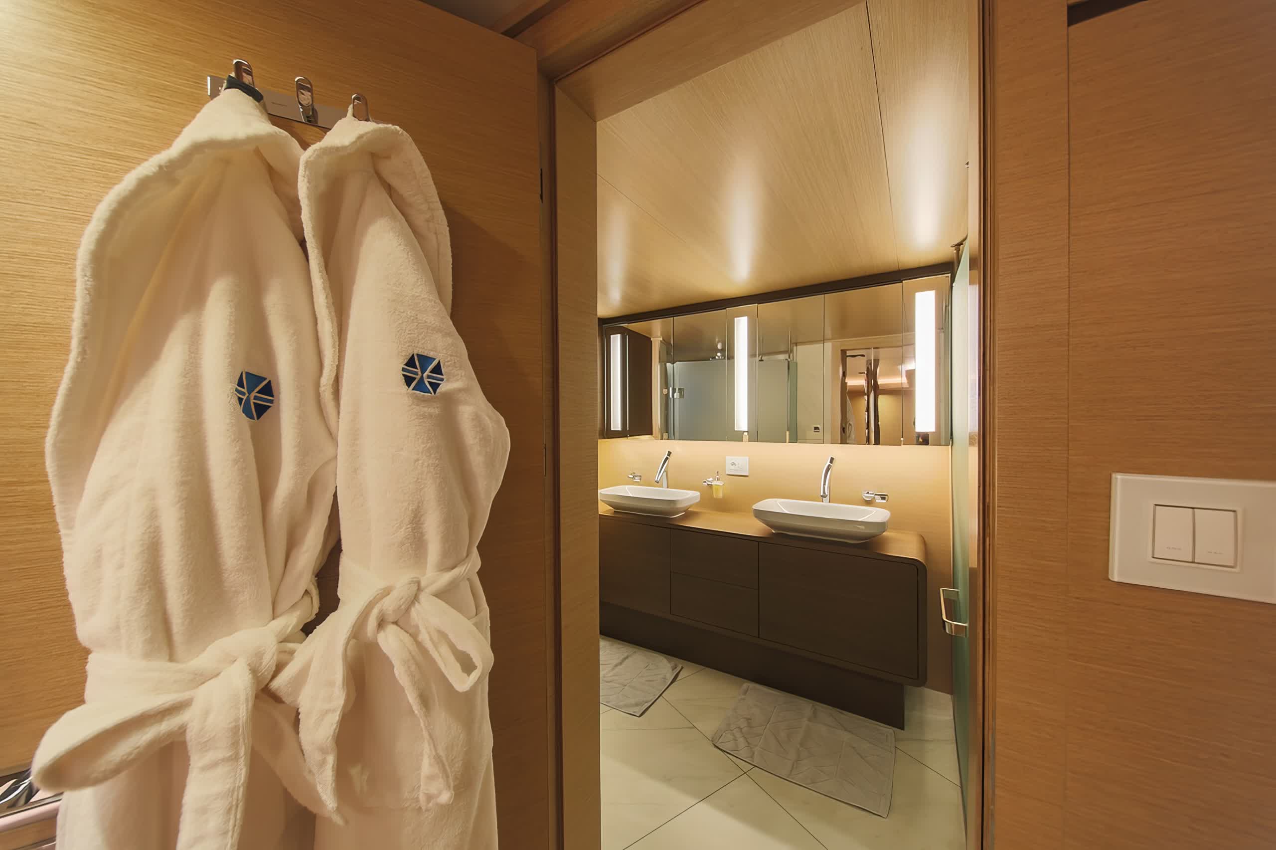 For water sports lovers, the yacht comes with a tender, jet skis, paddleboards and snorkeling gear — perfect for exploring the sea’s crystal-clear waters and hidden-inlets along the coast. From lazy beach days to exhilarating adventures, Omnia has all you need for the ultimate yacht charter experience. Staffed with a professional crew of 10, including a captain and chef, Omnia offers personalized service and meticulous attention to detail that guarantees every guest’s needs and concerns will be attended to during the trip.
