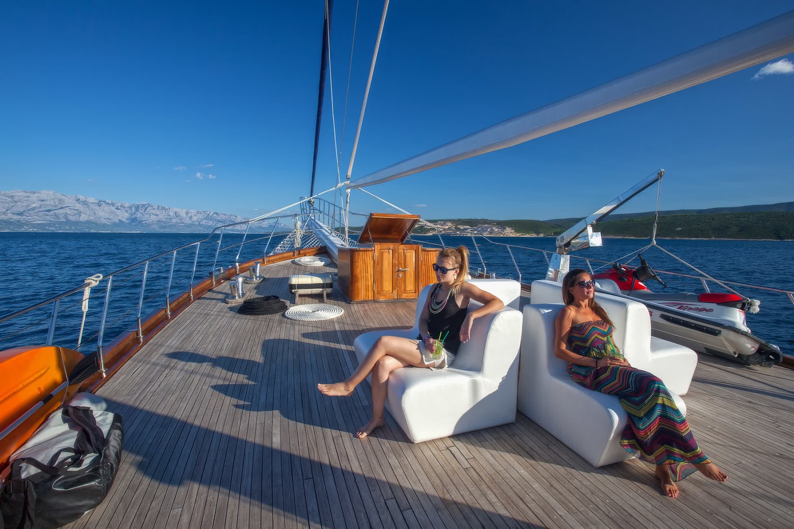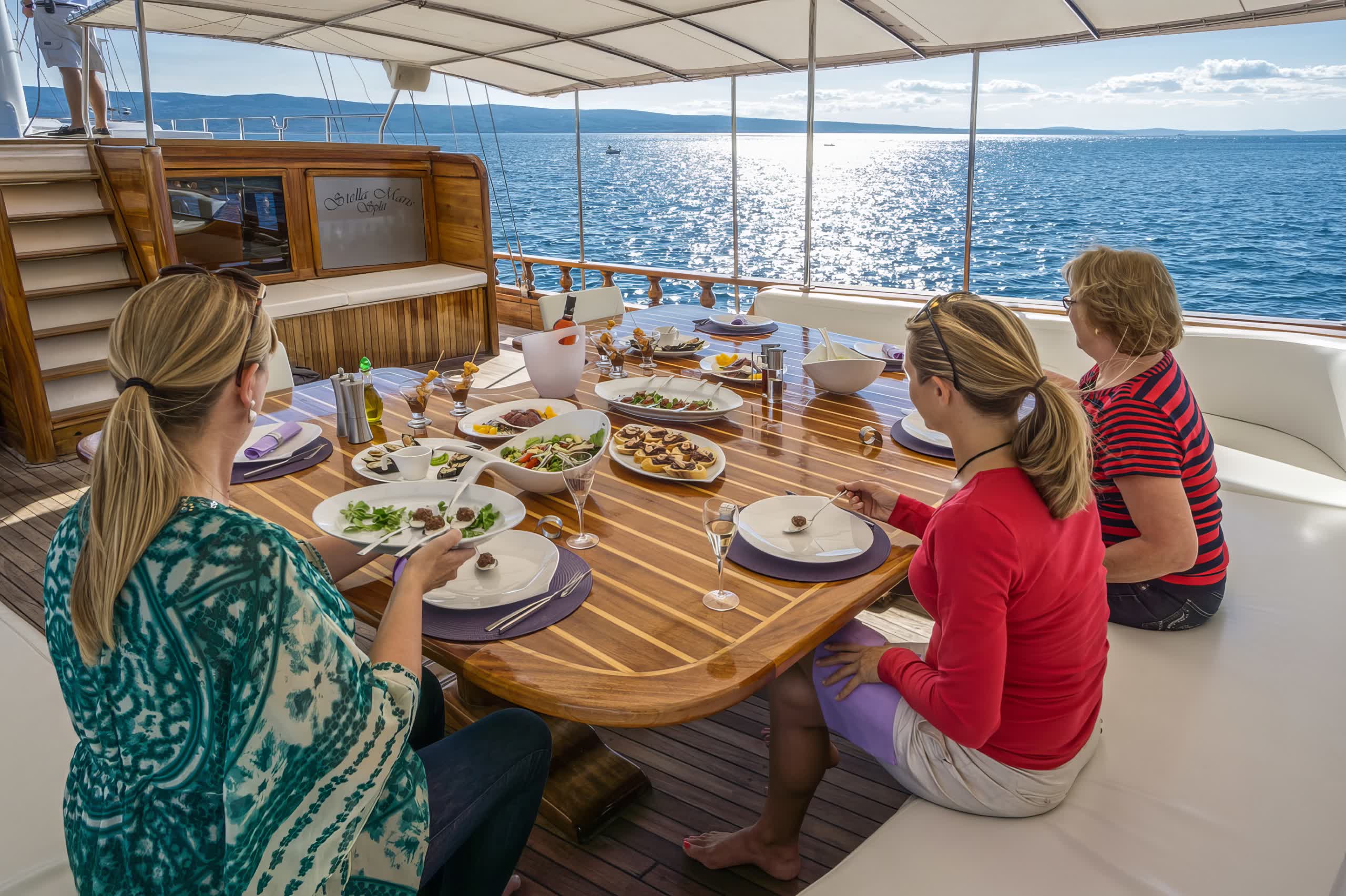 The ever-sailing Stella Maris has a crew that includes a captain, chef, and deck hands who treat passengers from around the world to an impeccable entertainment experience. The crew is highly skillful and extensively trained to offer exclusive services such as preparing scrumptious meals and designing personalized itineraries and planning water sports activities. With the amenities, including Wi-Fi, a sound system, and air conditioning, the yacht provides modern comfort on the charter. Among the noteworthies onboard are a wakeboard, kayaks and snorkeling gear. For anyone looking for a private, upscale charter, Stella Maris offers a well-heeled lifestyle aboard with stunning design, room onboard and in the cabins, and an expert crew.