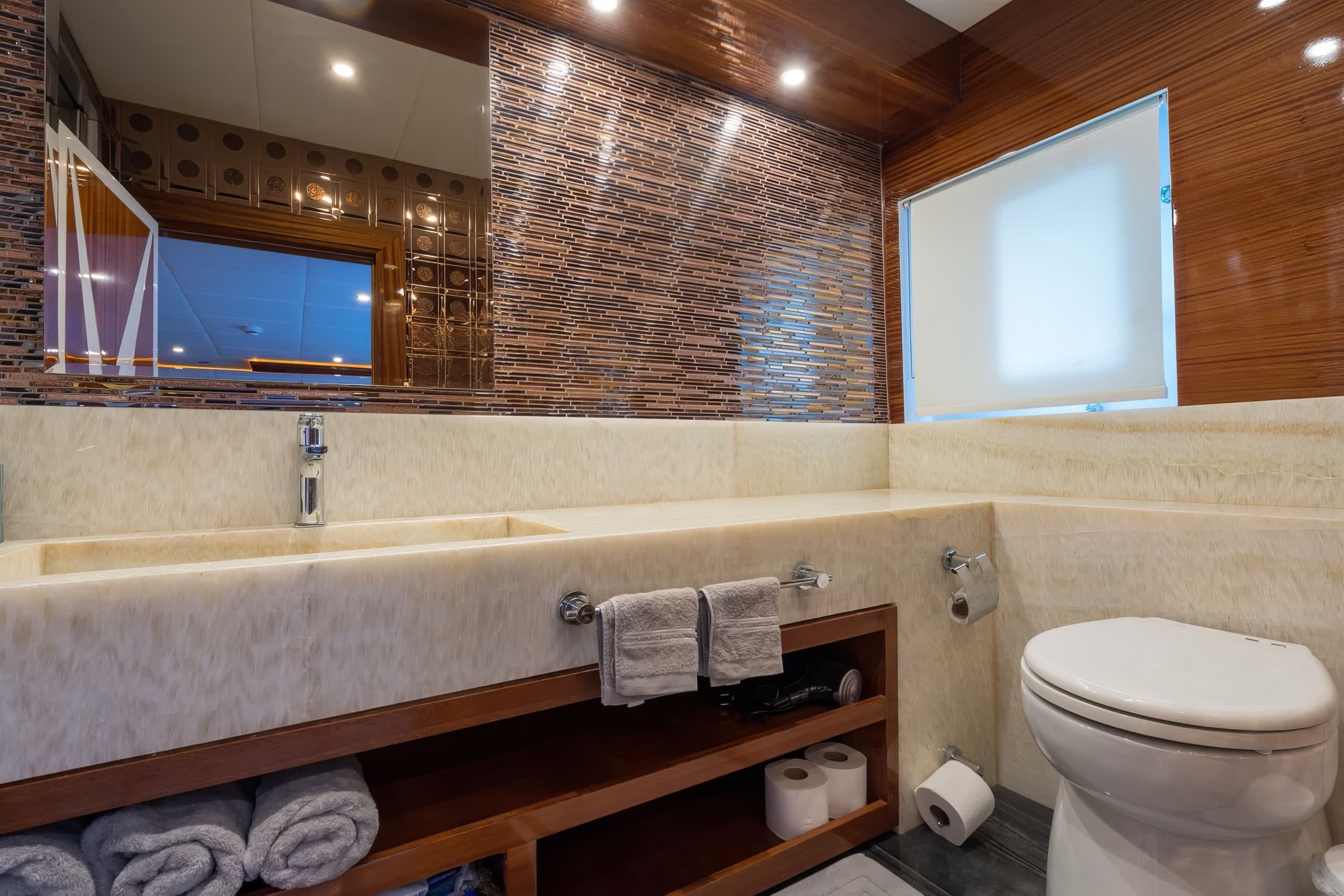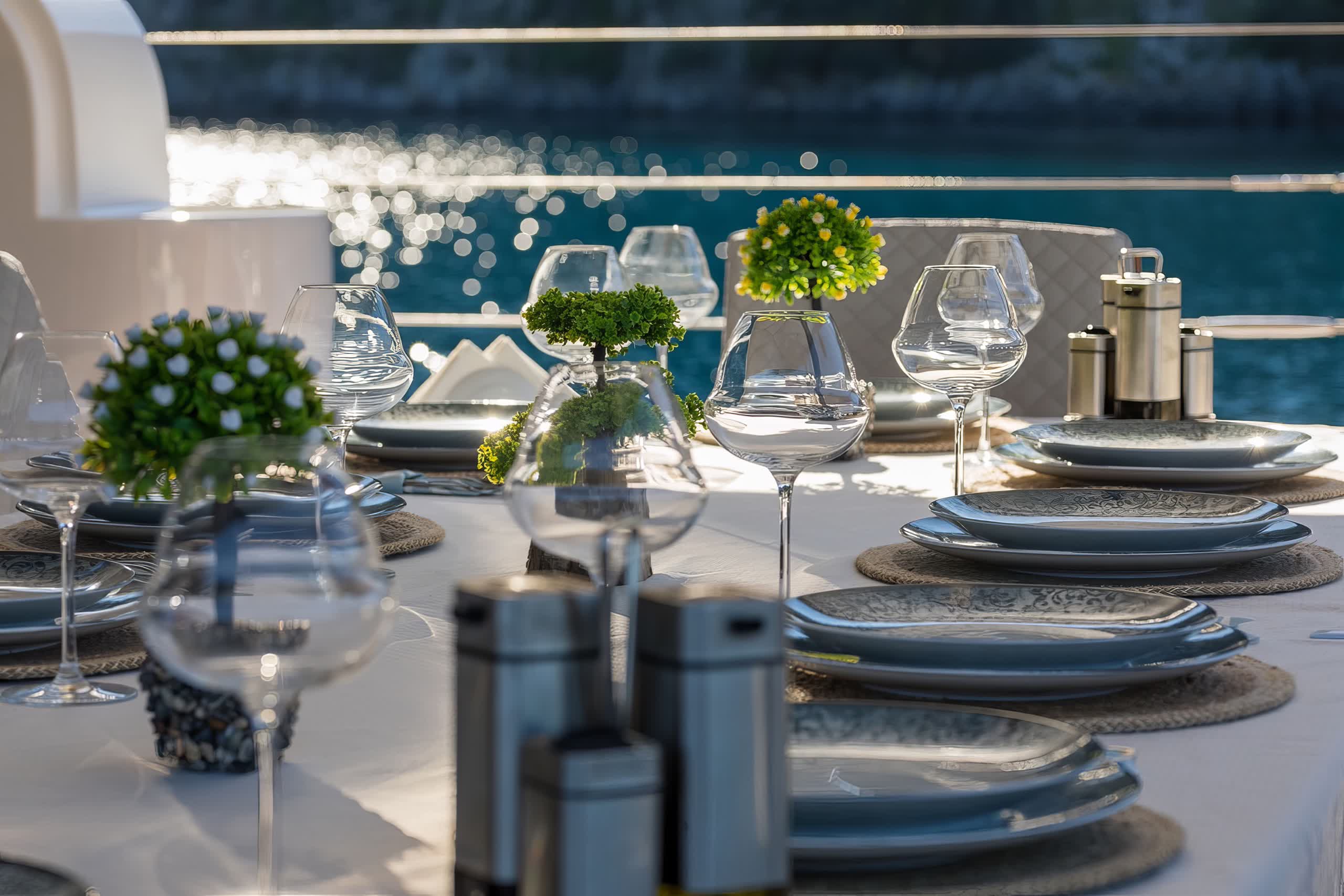 Weighing in at 42 meters long, the Son of Wind has plenty of space to relax, socialize and admire the beautiful coast line. There is an expansive outdoor deck with sunbathing areas, a spacious lounge and an al fresco dining area, making the yacht perfect for intimate gatherings and large groups. Onboard guests can relax and take in the stunning landscapes offered by the Aegean and Mediterranean seas, either from the deck or while participating in various water sports.