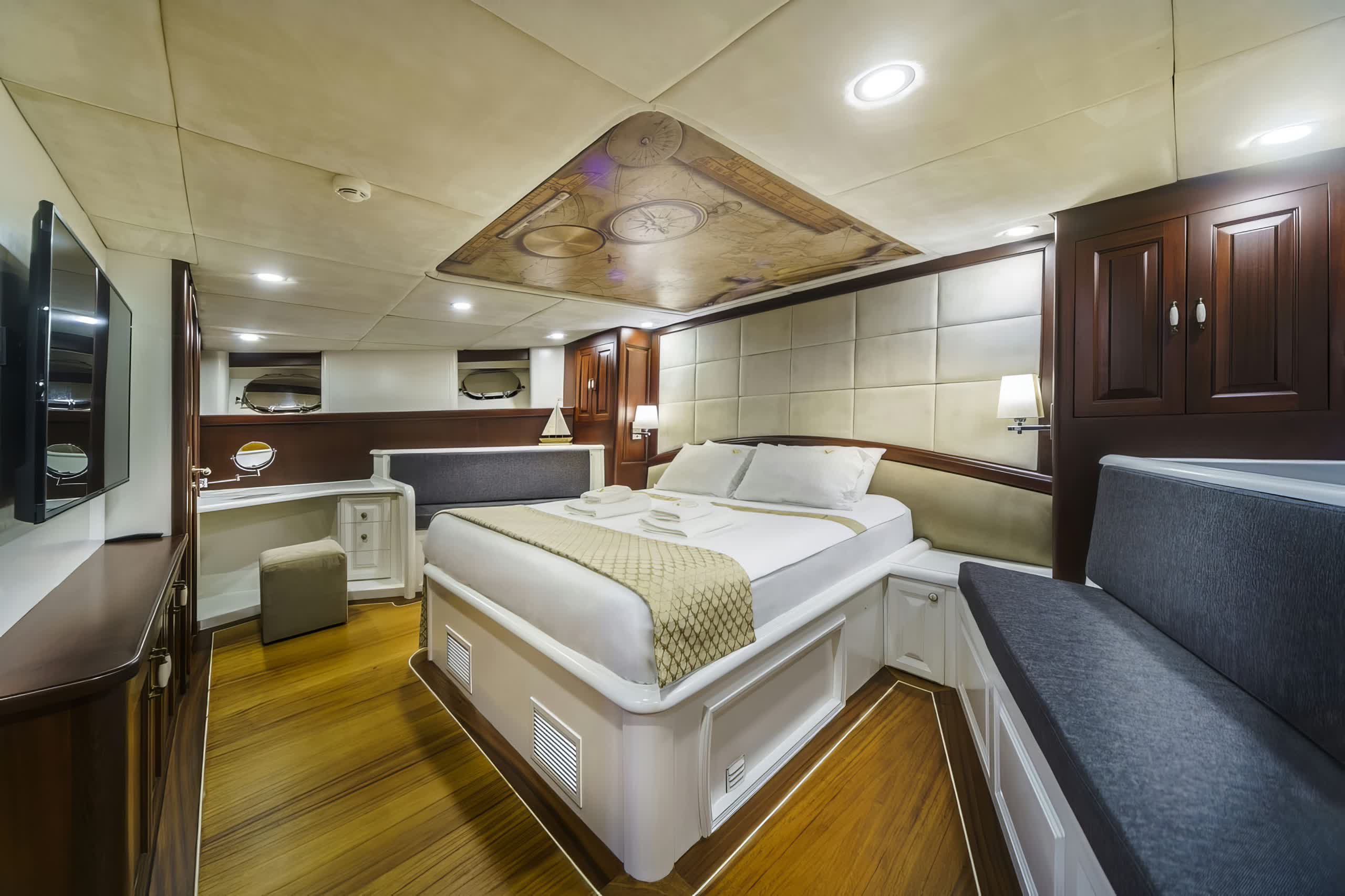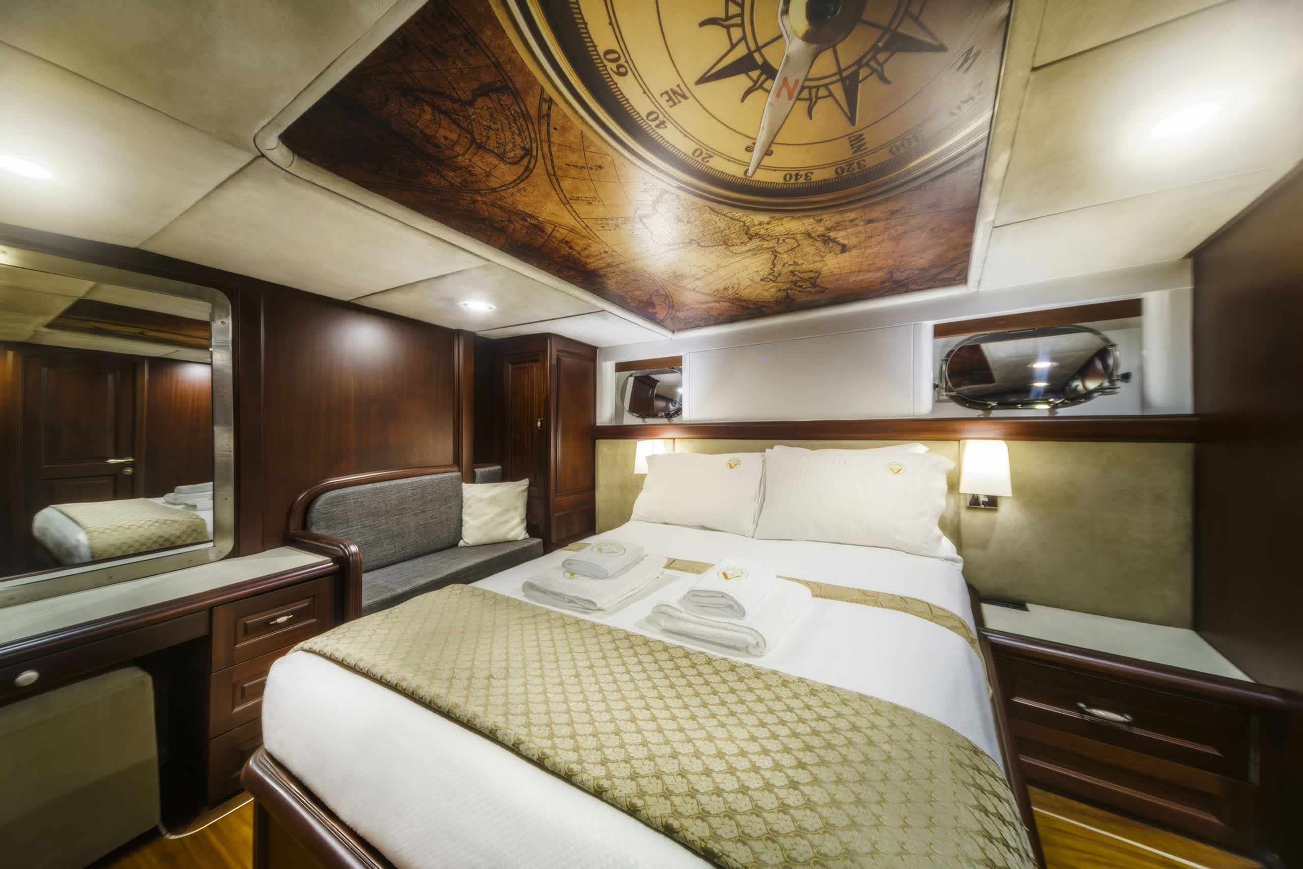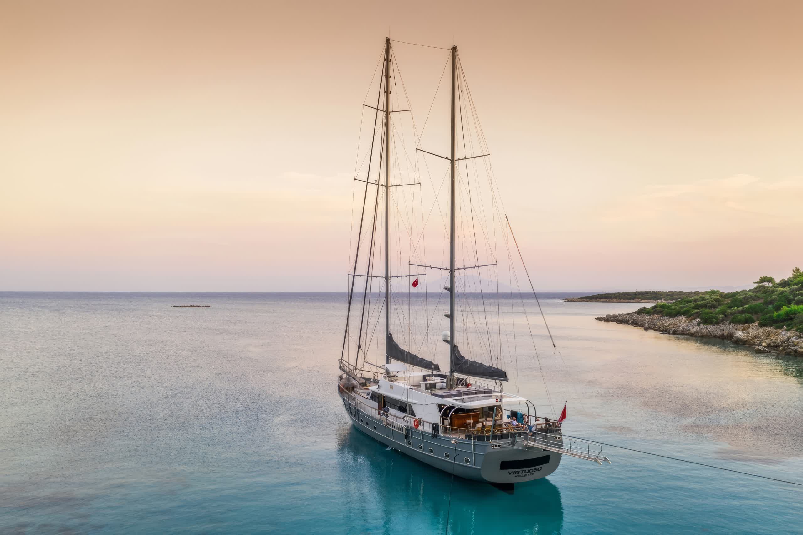 Virtuoso is a luxury gulet with that offers all the comforts of modern living for an exceptional experience out on the Mediterranean sea. Designed to effortlessly glide from the stunning coastlines of Greece, this spectacular 34 meter yacht promises a serene ambiance on board. Virtuoso sports room to sprawl, a broad beam and a smooth, artfully finished hull. Still, its classic looks are balanced with modern technology and comfortable features, making it suitable for smooth or demanding seas. Its design incorporates classic craftsmanship combined with thoughtful details in both shape and practicality. Encompassing six chic cabins, the inside of the Virtuoso has ample space for up to 12 guests. The other highlight is the master suites, which are huge and stylish; the three extra double cabins and one twin cabin are also luxurious and private. Each cabin boasts en-suite bathrooms, air-conditioning, and contemporary decor, making the perfect spot to recharge after a day out on the water.
