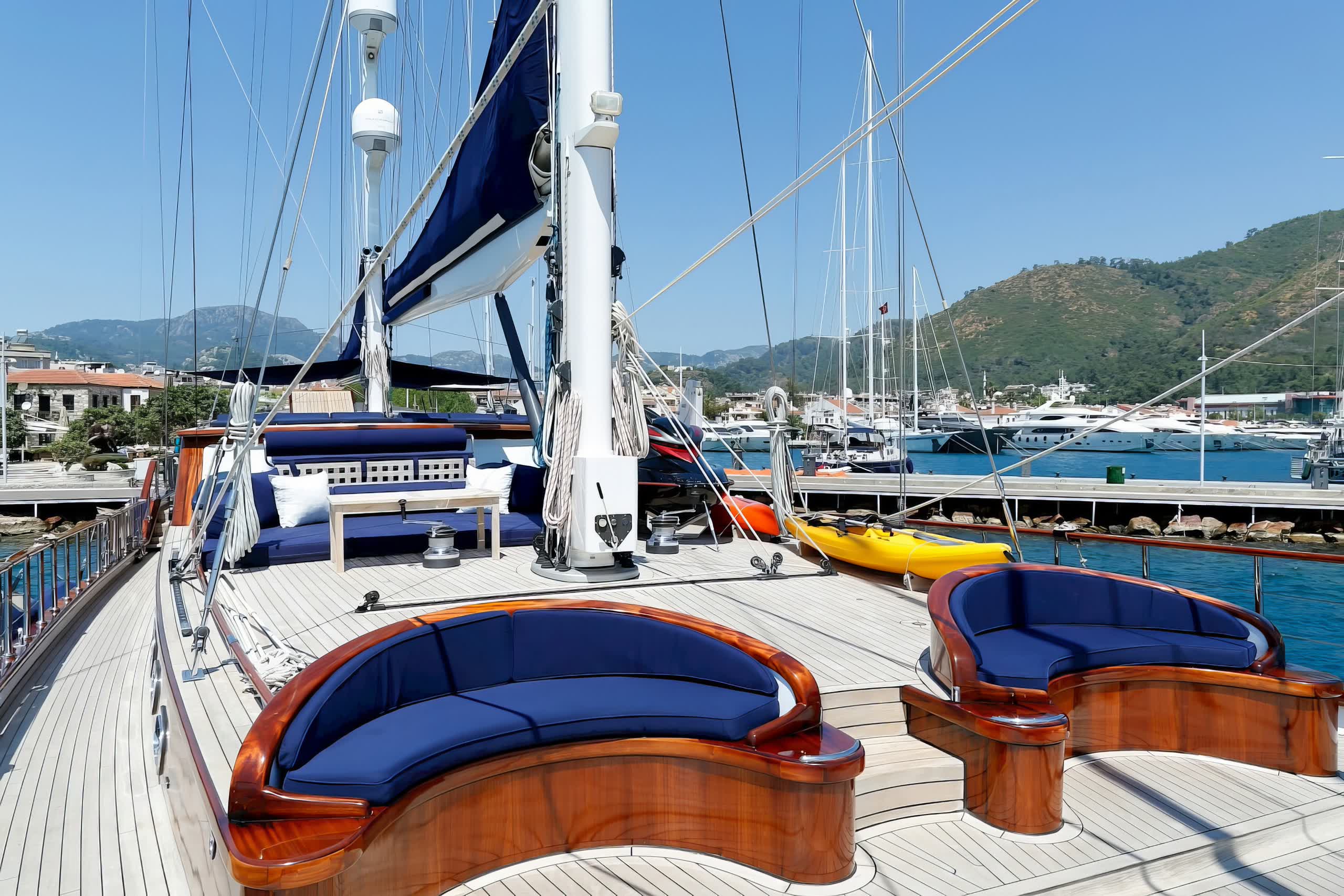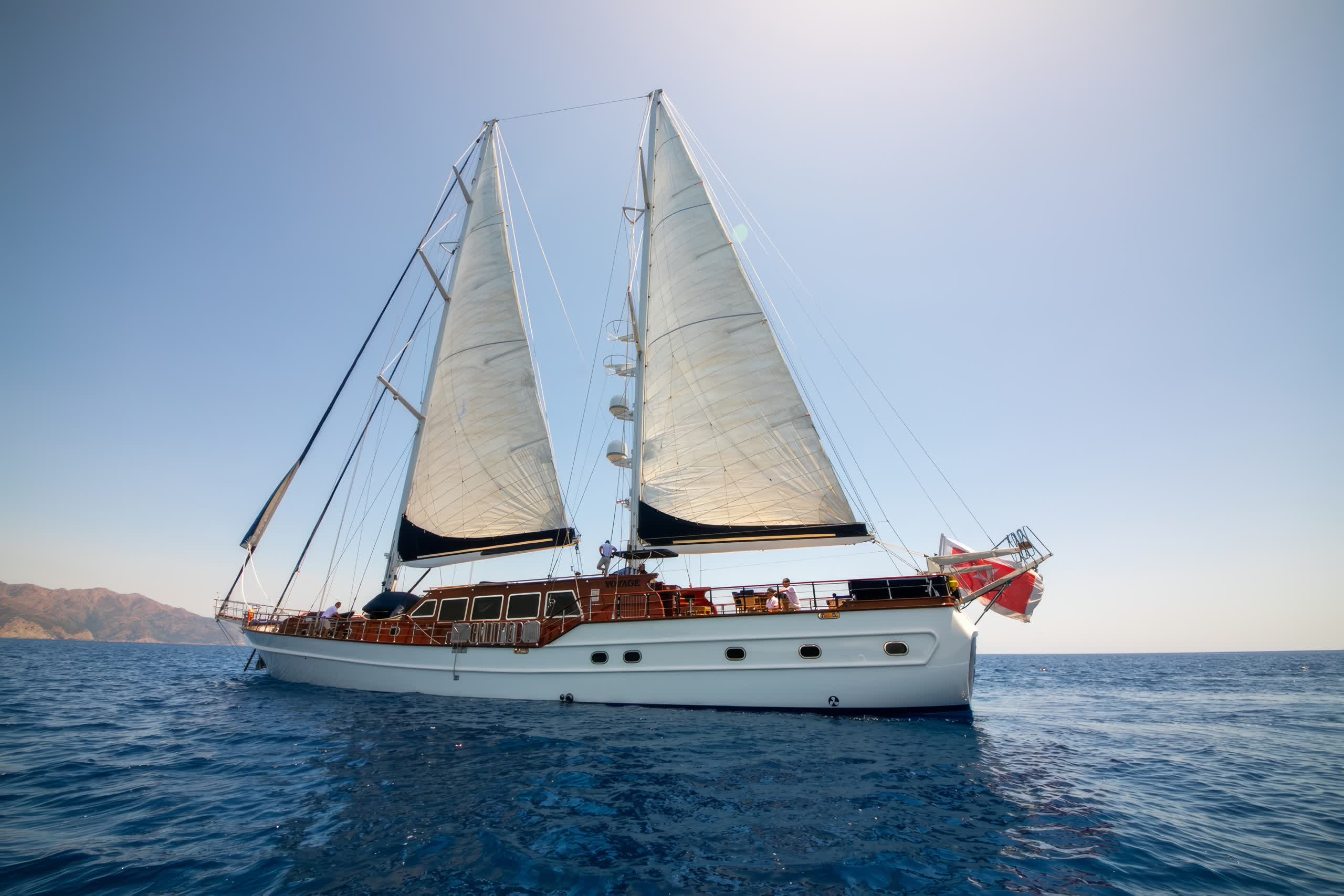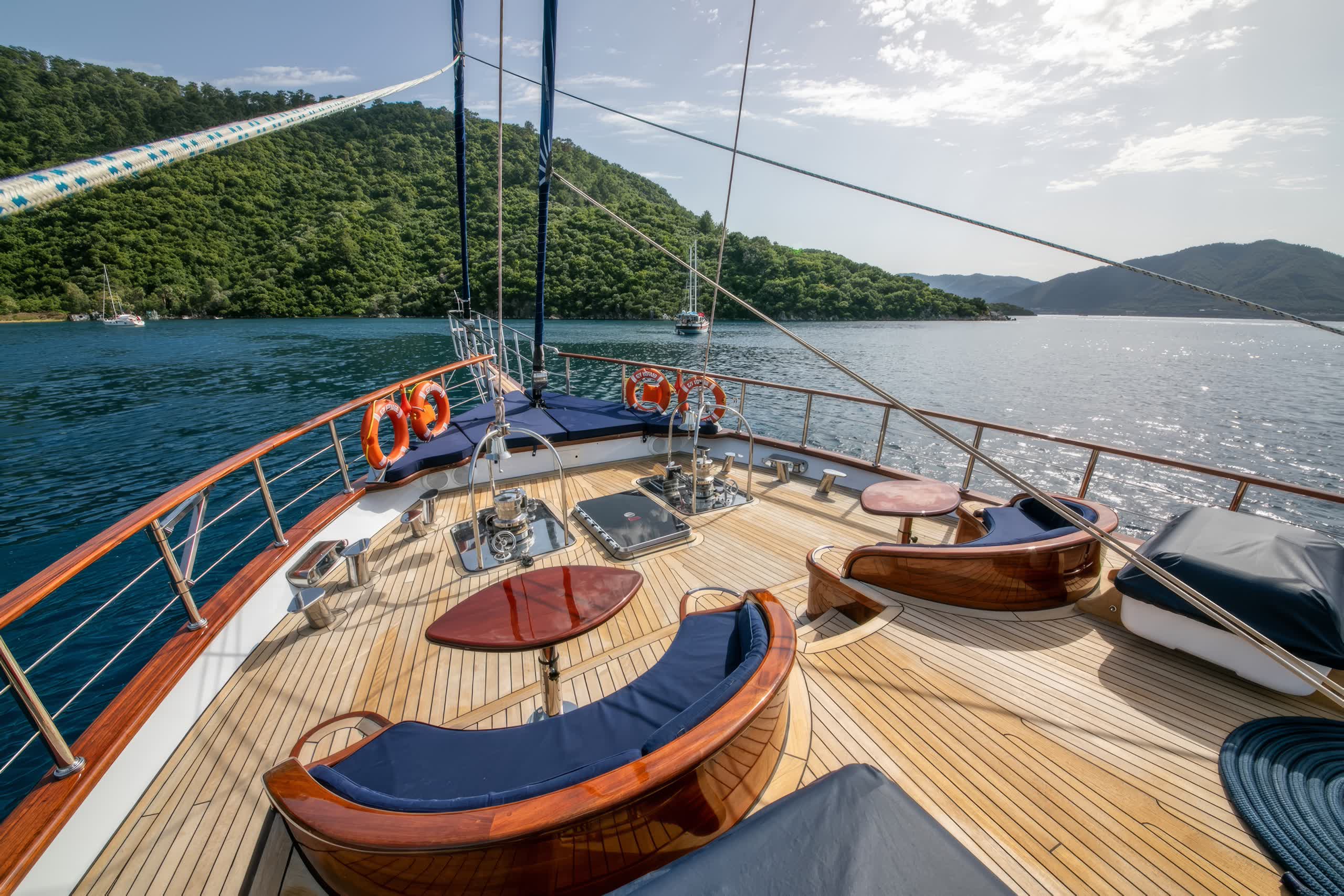 Voyage also comes equipped for water sports, with a tender, wakeboards, and snorkeling gear. Guests can discover remote coves, bathe in crystalline waters, or access more invigorating water sports. A professional crew also operates the yacht which includes the captain, a chef as well as experienced deckhands who provide excellent service during the entire charter. Overall, the Voyage is a comfortable and well-appointed gulet yacht, a perfect choice for those seeking a luxurious and adventurous yacht charter in the beautiful shores of Turkey.