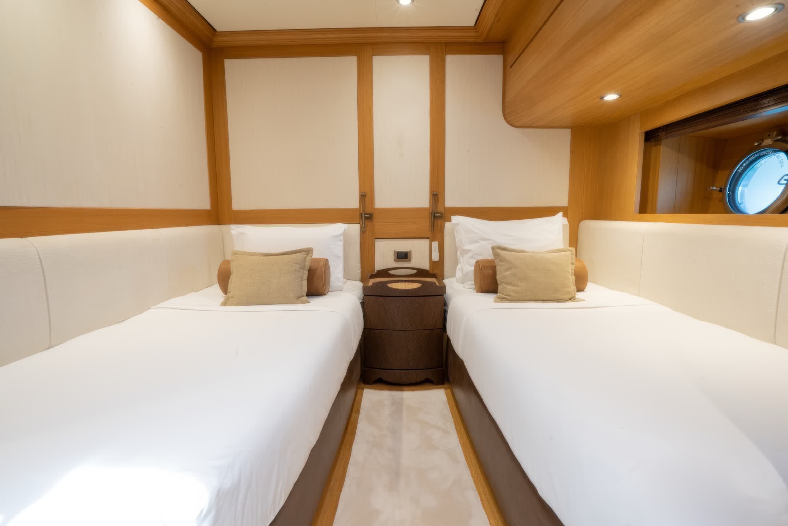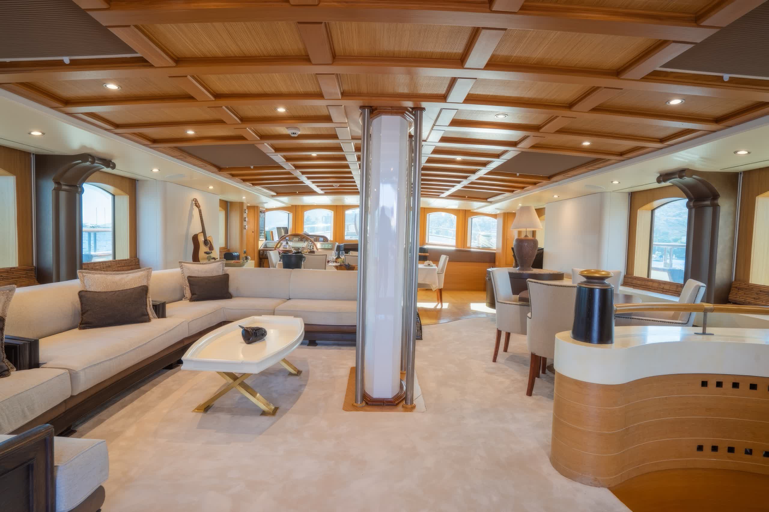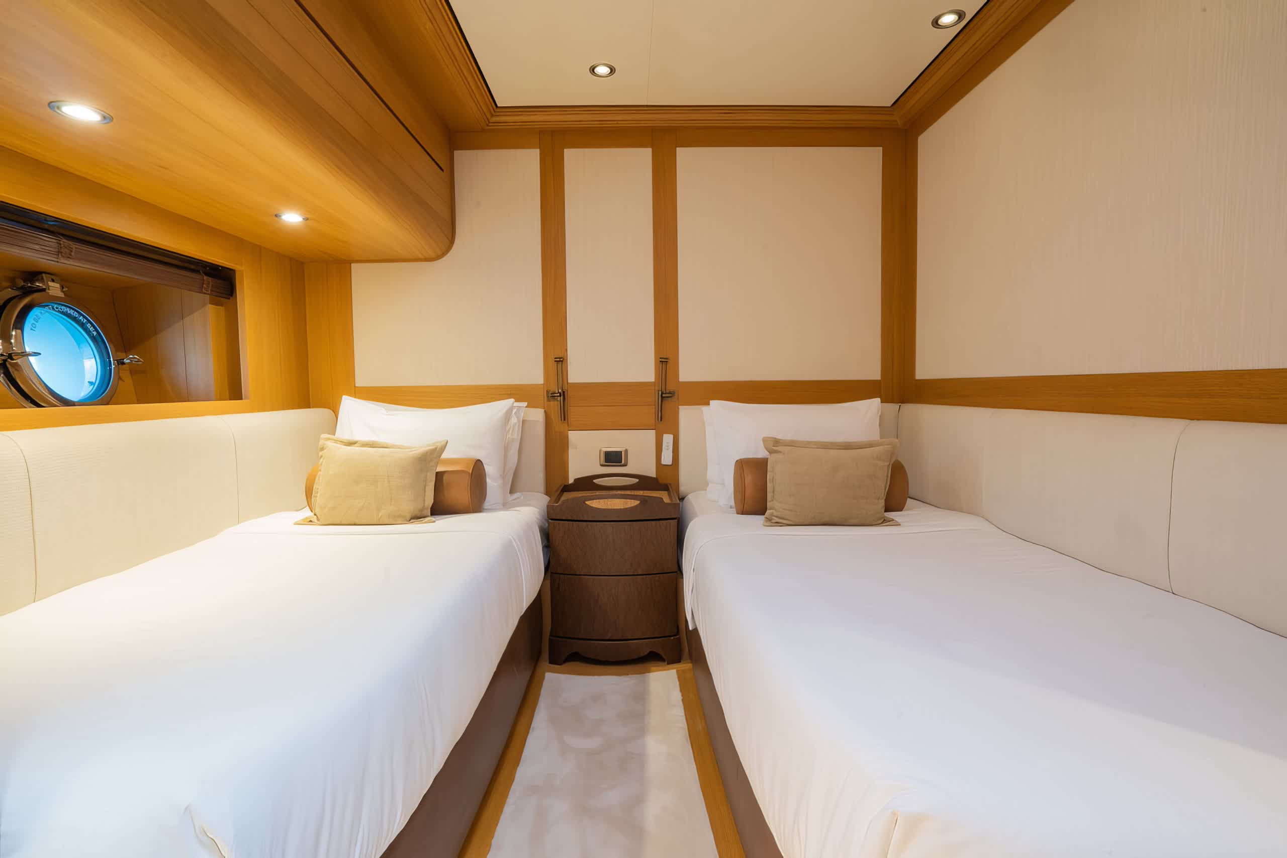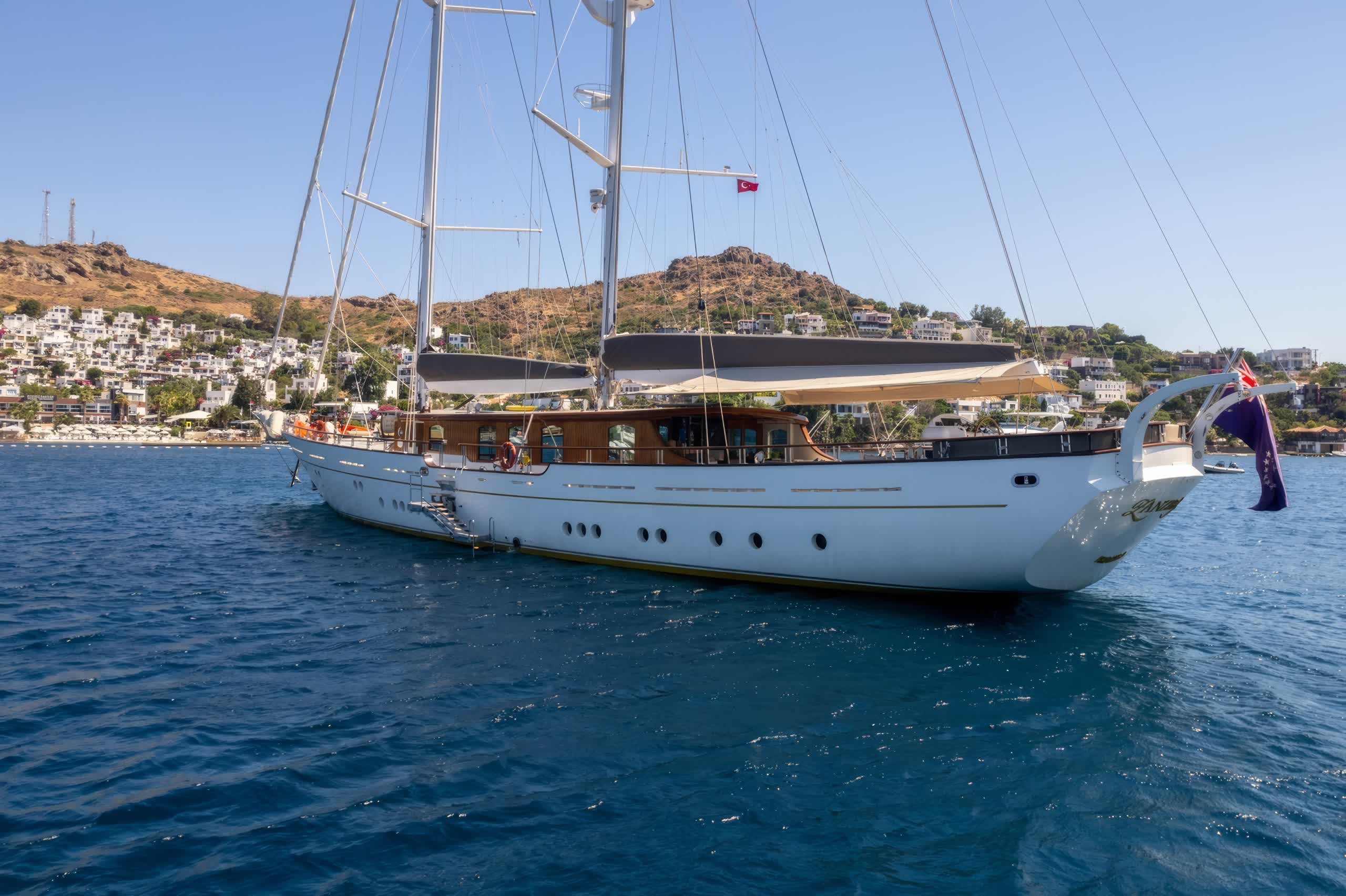 6 gorgeous cabins can accommodate up to 12 guests on the yacht, including a master suite, 2 double cabins, and 3 twin cabins. All cabins also feature en suite bathrooms, air conditioning and modern conveniences, ensuring the ultimate comfort and privacy for guests. Interiors are richly appointed with sumptuous wood paneling, soft lighting and understated but elegant furnishings, providing a warm, welcoming environment on board. Zanziba also has ample space for relaxing and entertaining on deck. There is also an expansive dining area on the aft deck where guests may enjoy meals prepared by the onboard chef. The forward deck features plenty of sunbeds for basking in the Mediterranean sunshine, along with a shaded area for those who enjoy something cooler. Ample deck spaces allow guests to lounge and soak up Turkey’s stunning coastline and crystal-blue waters.