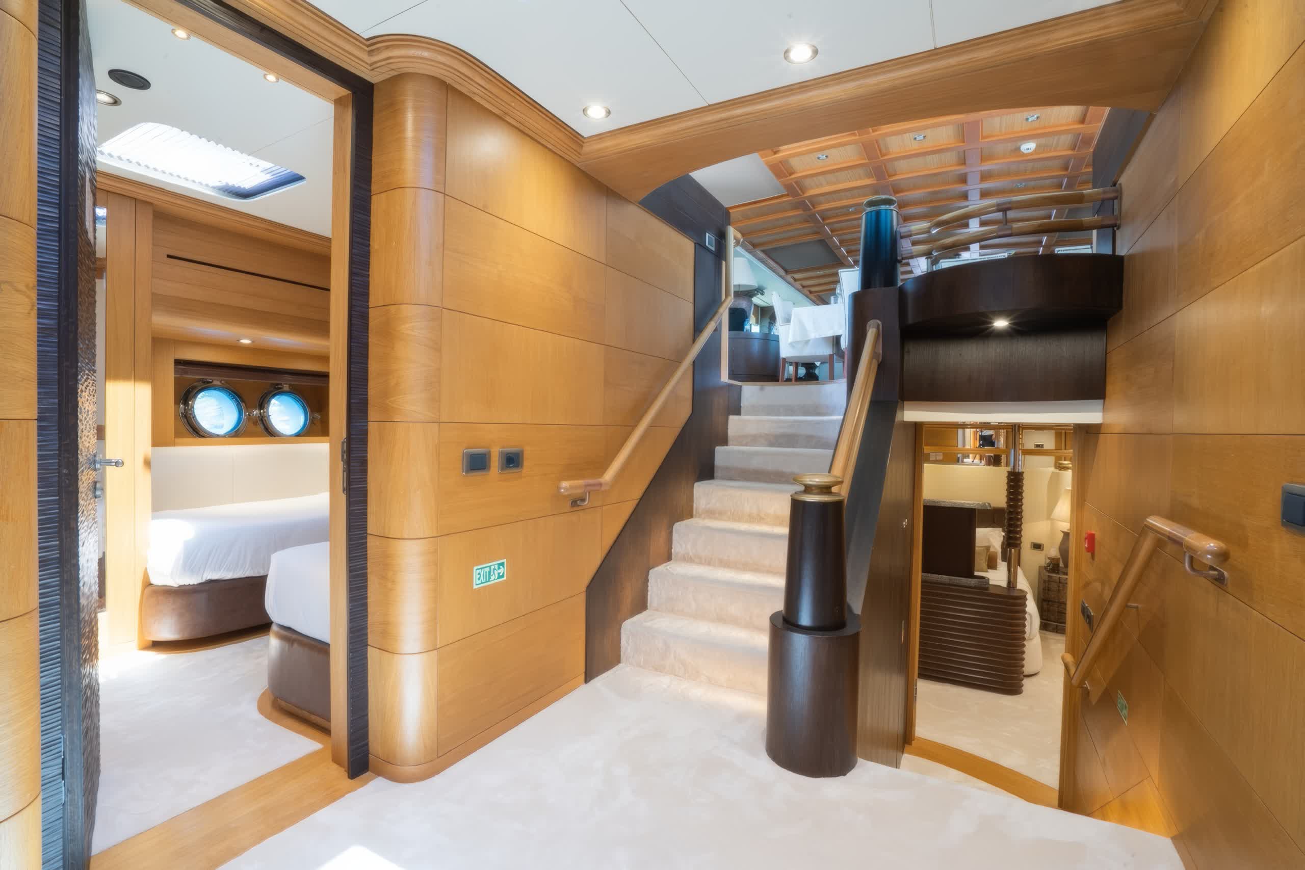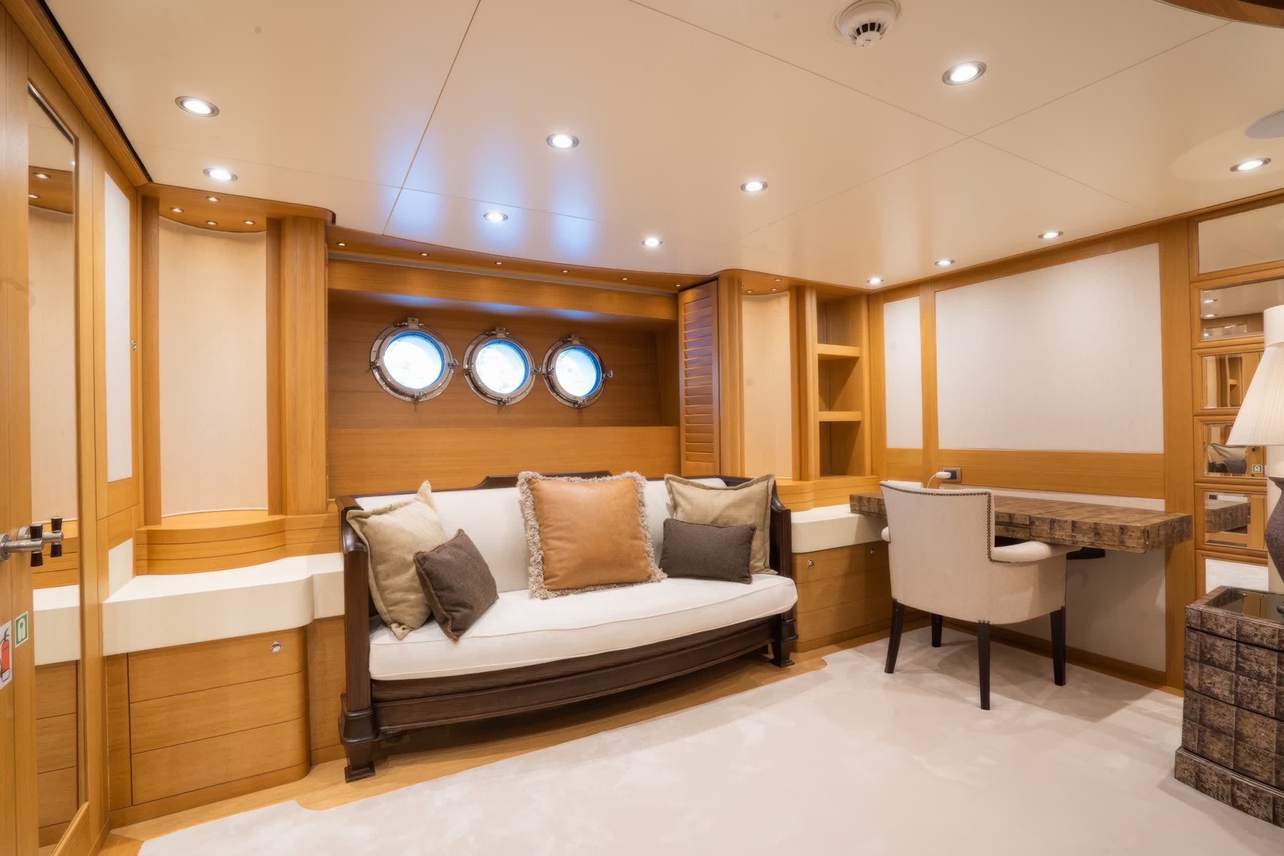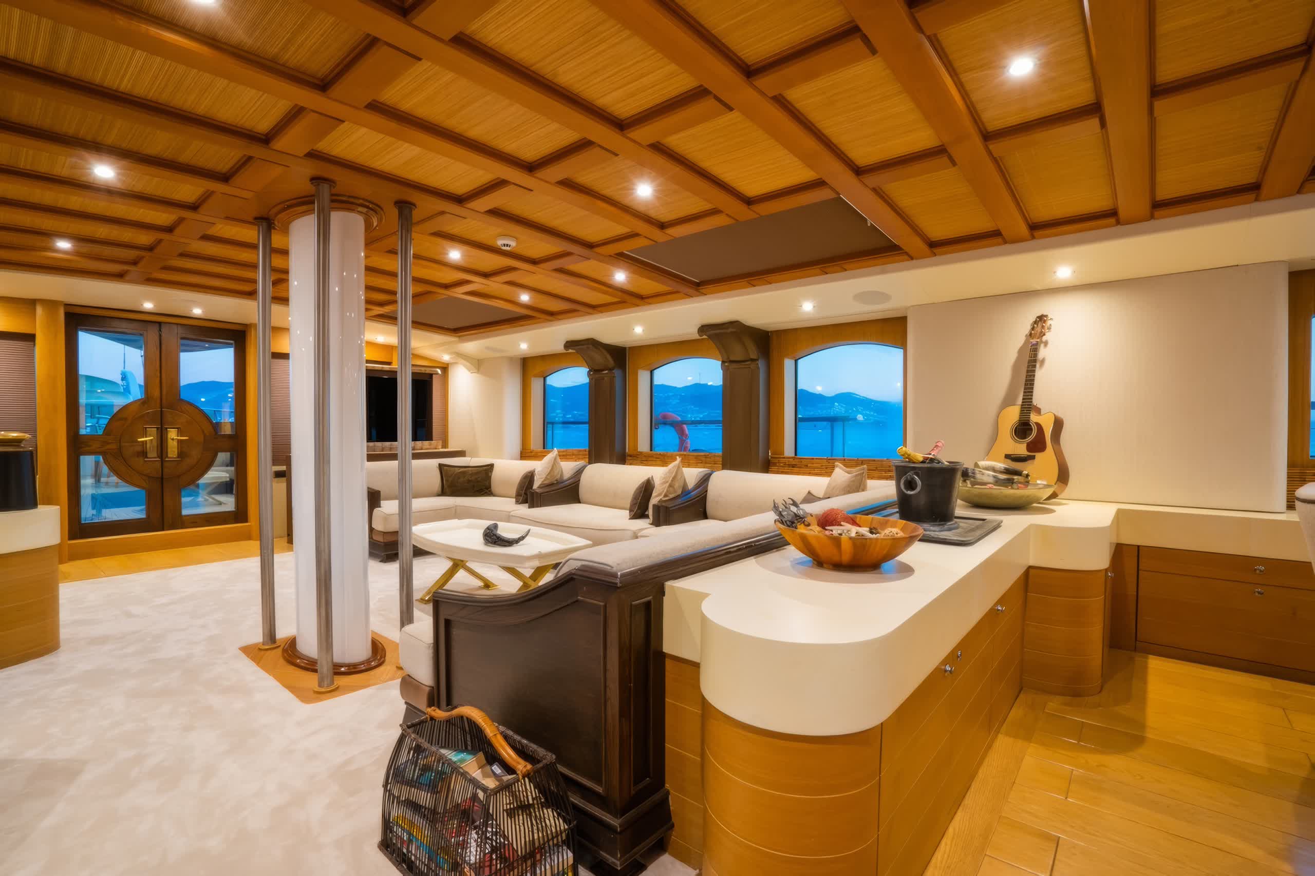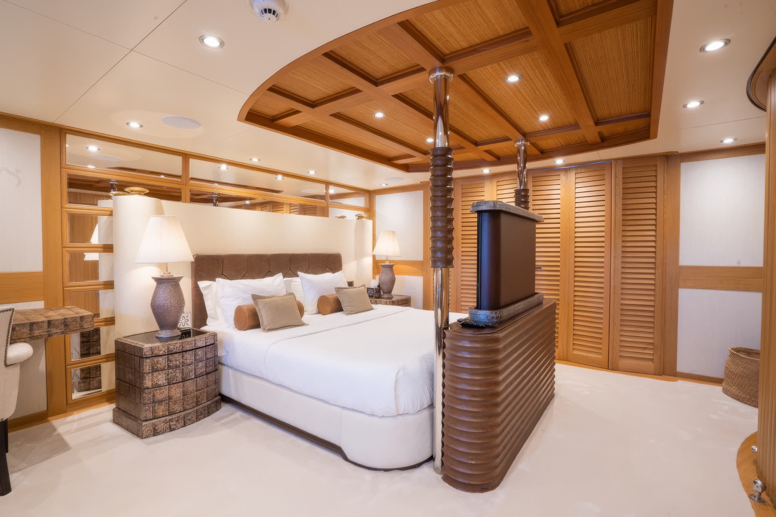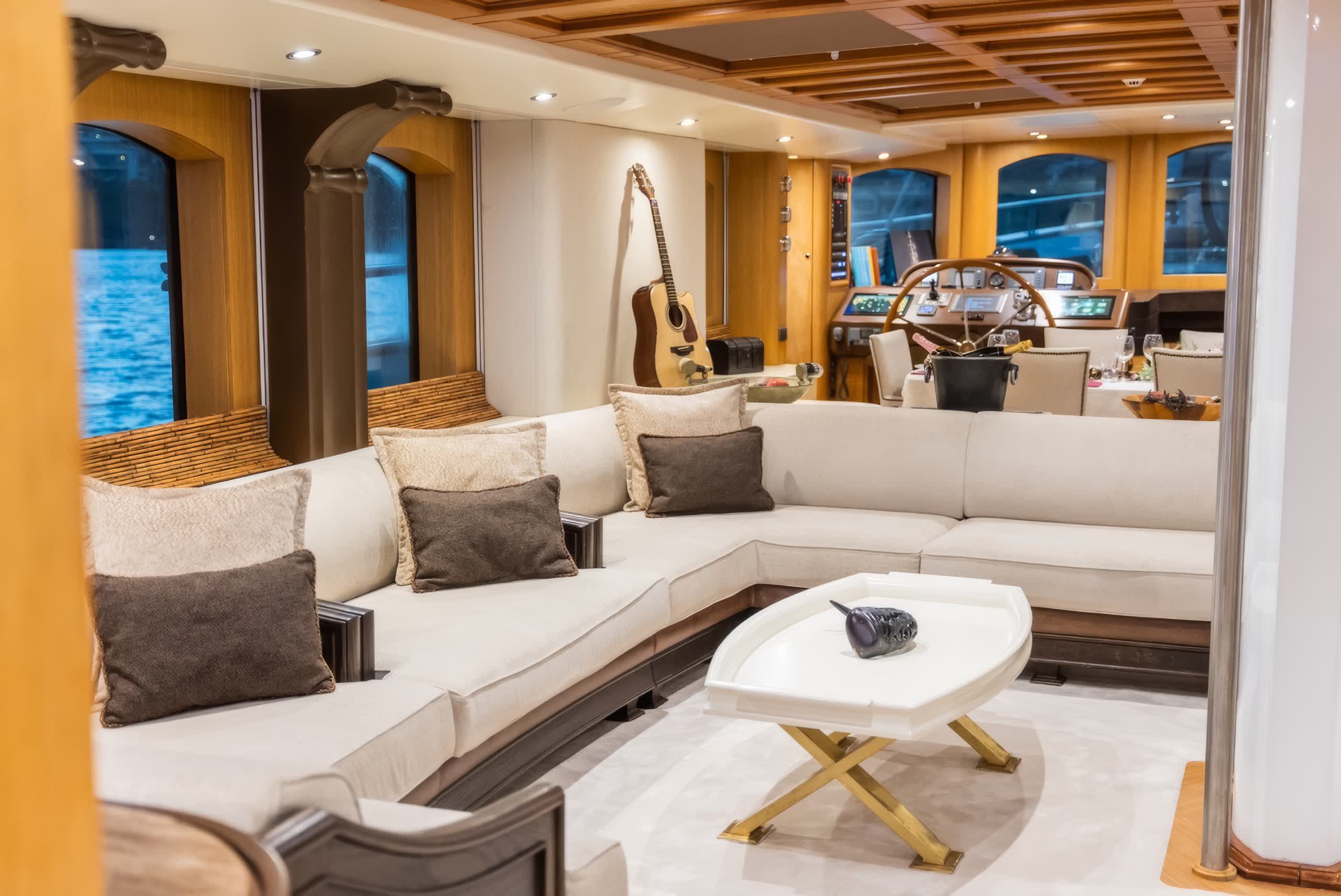 6 gorgeous cabins can accommodate up to 12 guests on the yacht, including a master suite, 2 double cabins, and 3 twin cabins. All cabins also feature en suite bathrooms, air conditioning and modern conveniences, ensuring the ultimate comfort and privacy for guests. Interiors are richly appointed with sumptuous wood paneling, soft lighting and understated but elegant furnishings, providing a warm, welcoming environment on board. Zanziba also has ample space for relaxing and entertaining on deck. There is also an expansive dining area on the aft deck where guests may enjoy meals prepared by the onboard chef. The forward deck features plenty of sunbeds for basking in the Mediterranean sunshine, along with a shaded area for those who enjoy something cooler. Ample deck spaces allow guests to lounge and soak up Turkey’s stunning coastline and crystal-blue waters.