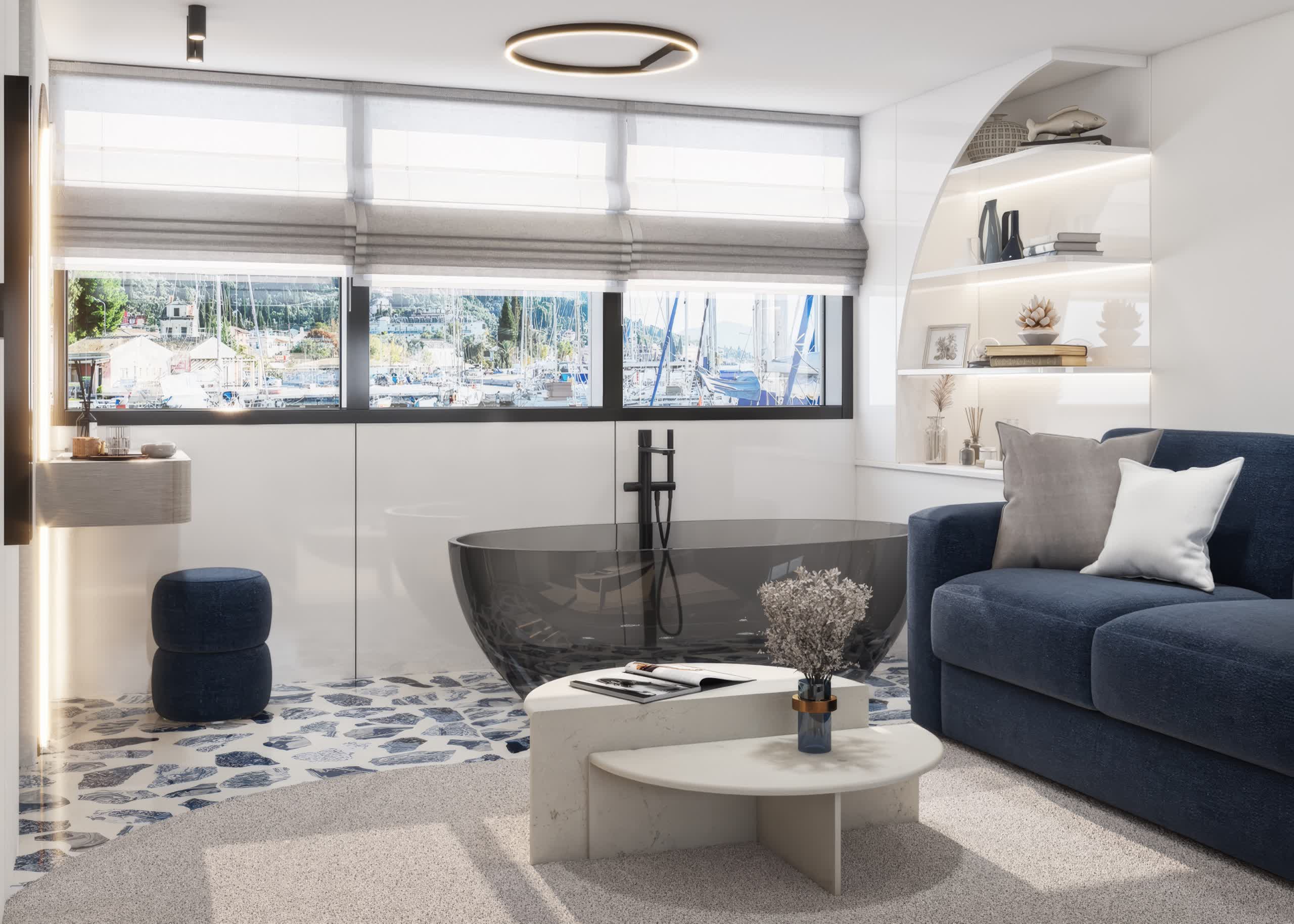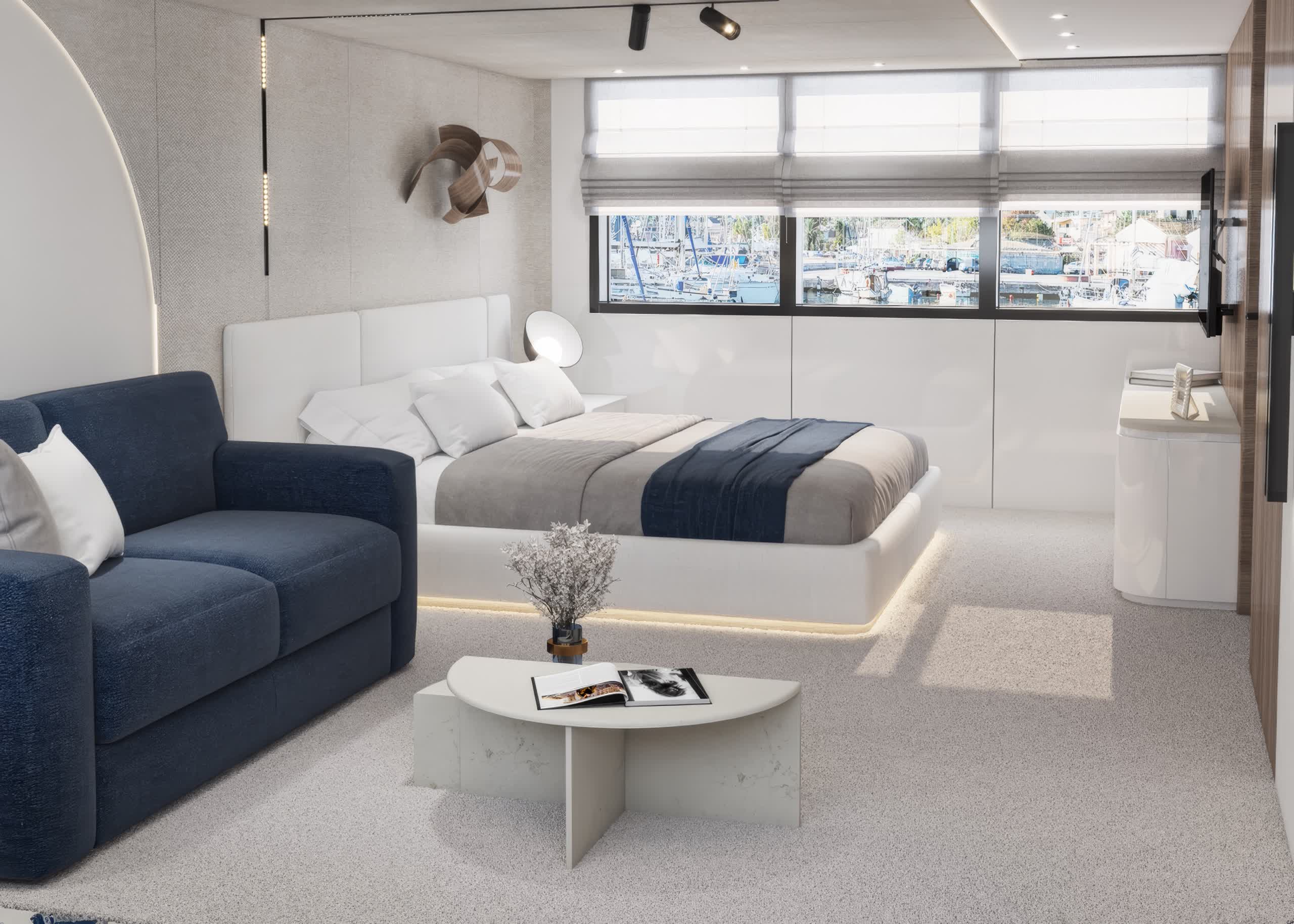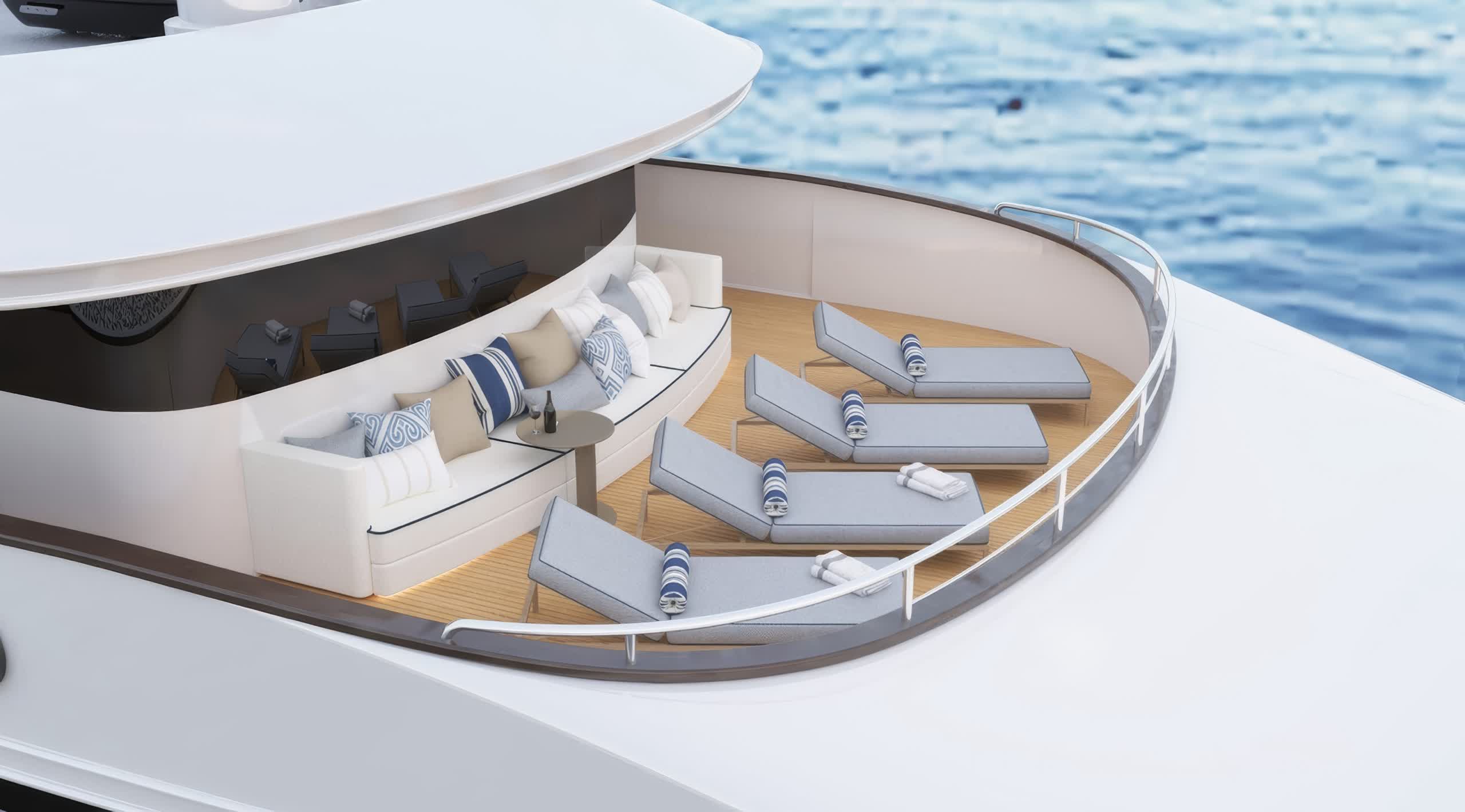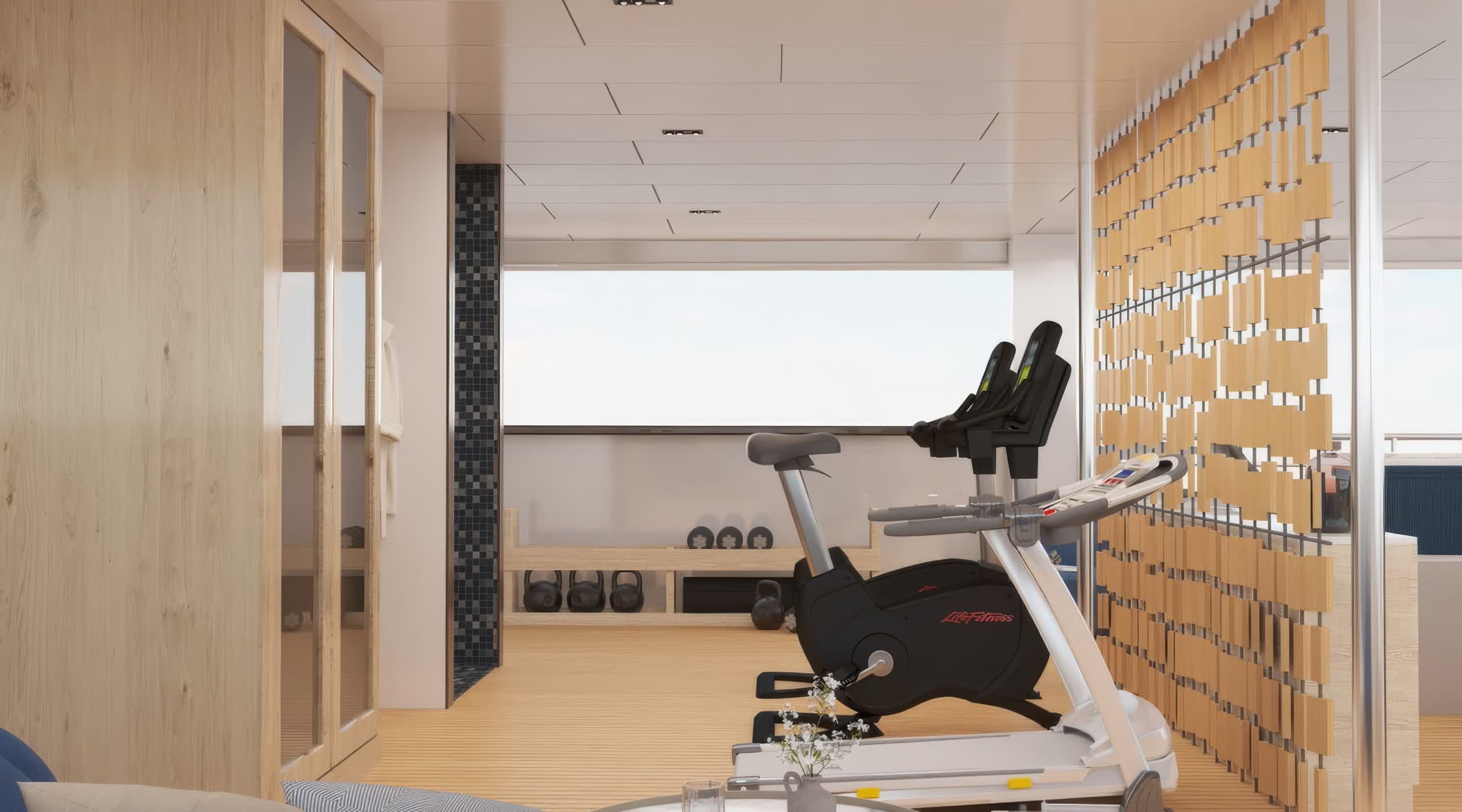 To enhance guest comfort and entertainment, the yacht features an array of amenities. Guests will have access to a jacuzzi, sunbathing chairs and bar on the sundeck. A lounge bar with a piano and a salon bar on the main deck encourage guests to mingle in a relaxed atmosphere. Other amenities include a cinema room, outdoor gym, sauna and outdoor swimming pool, providing a wide range of relaxation and entertainment options on site.