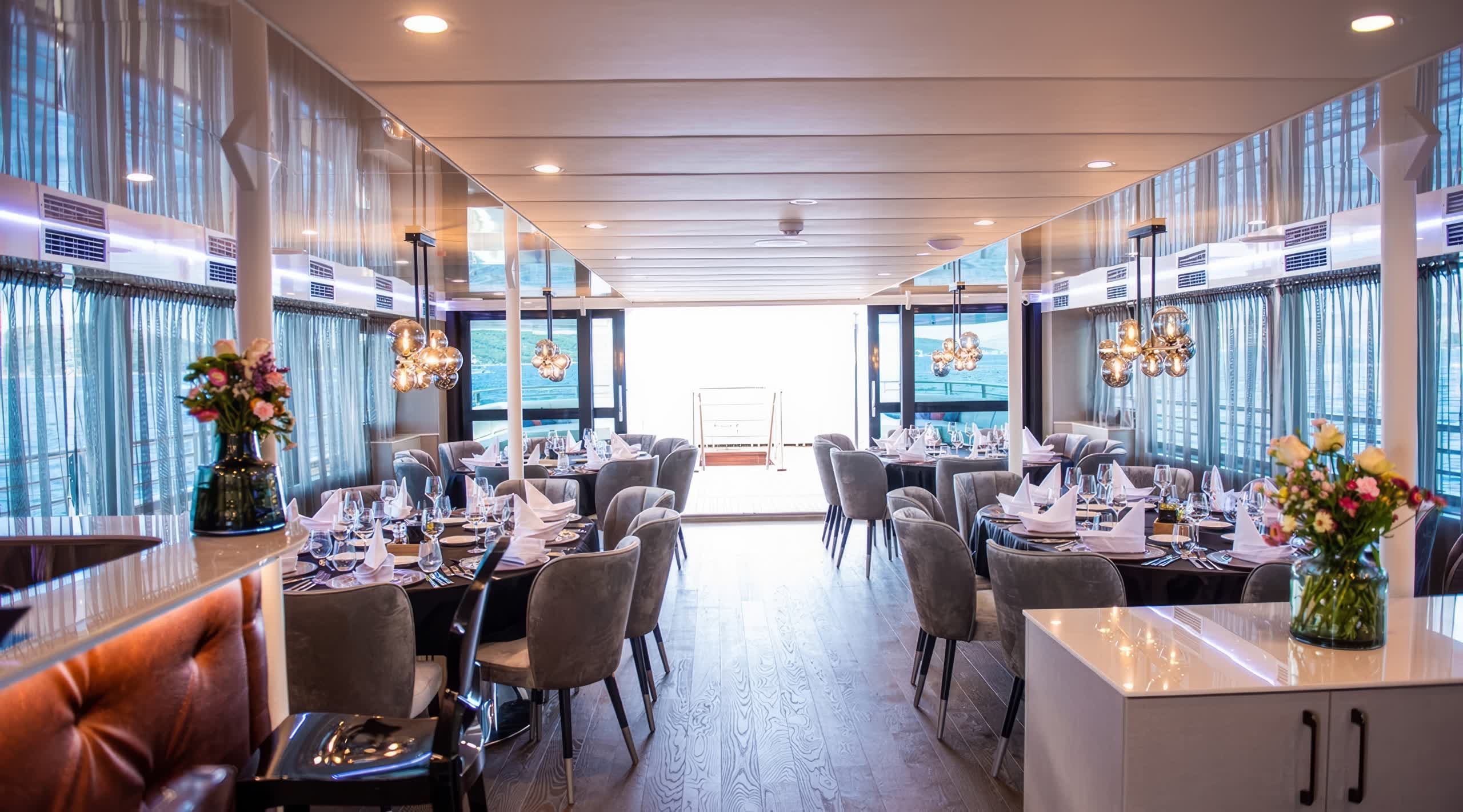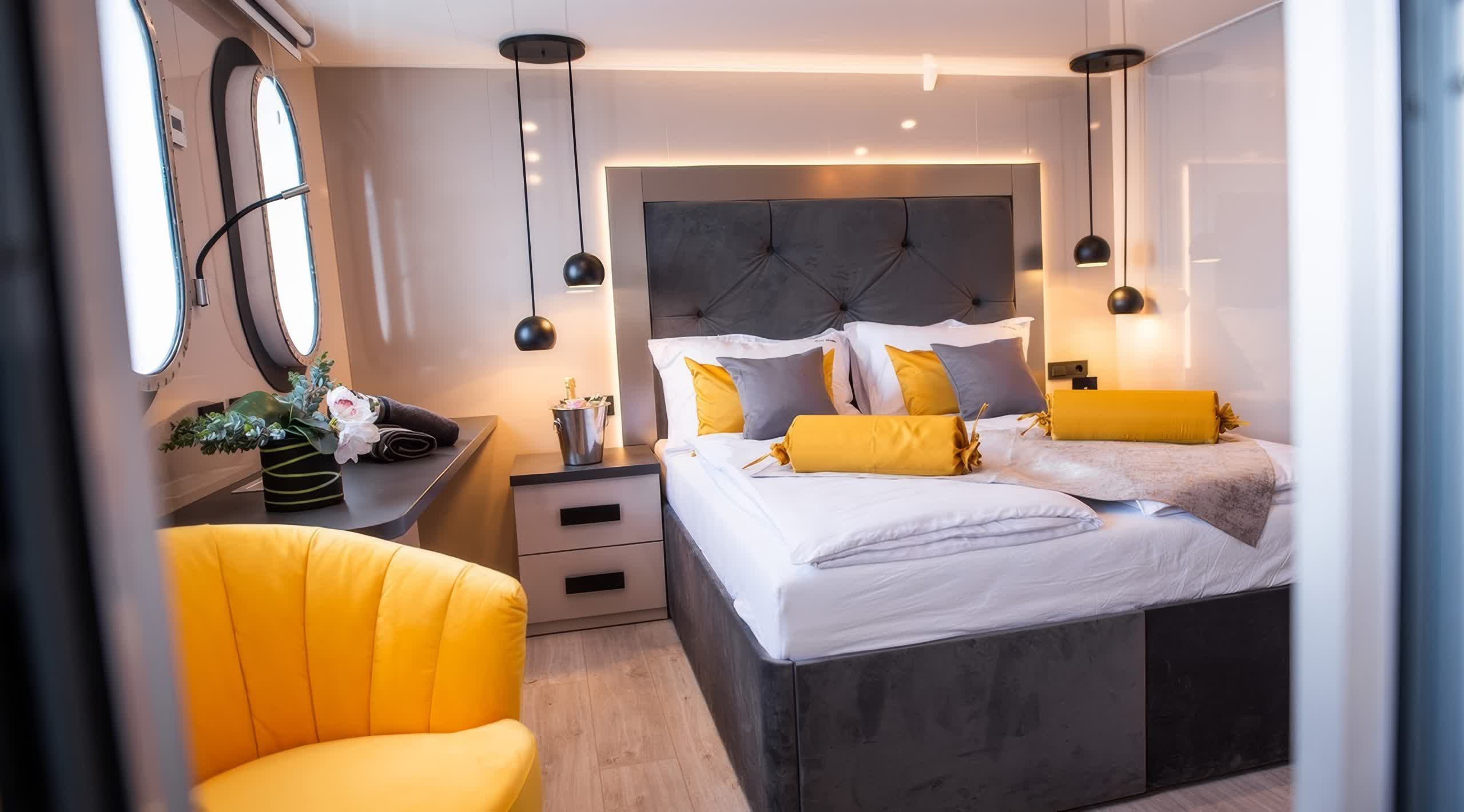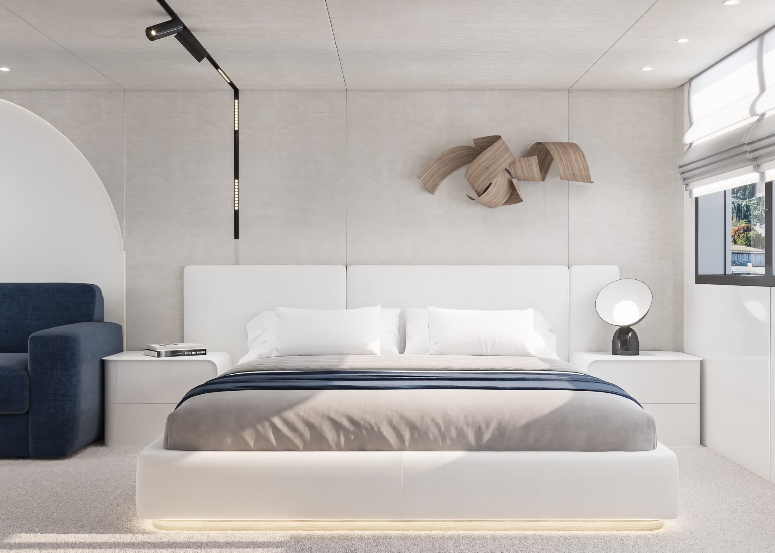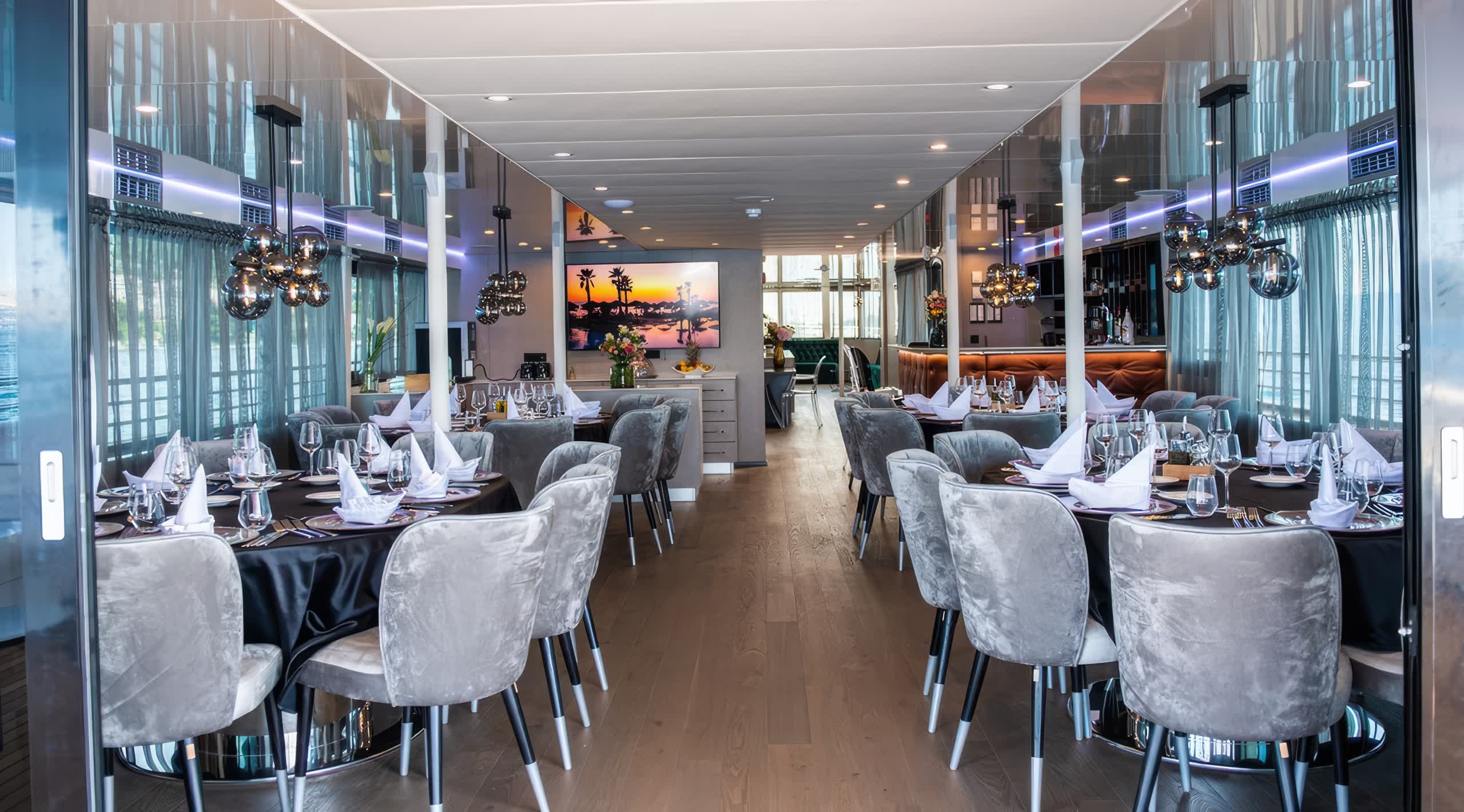 To enhance guest comfort and entertainment, the yacht features an array of amenities. Guests will have access to a jacuzzi, sunbathing chairs and bar on the sundeck. A lounge bar with a piano and a salon bar on the main deck encourage guests to mingle in a relaxed atmosphere. Other amenities include a cinema room, outdoor gym, sauna and outdoor swimming pool, providing a wide range of relaxation and entertainment options on site.