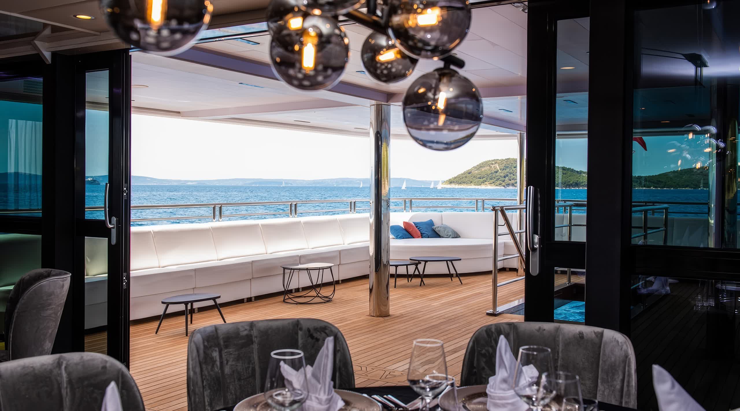 Alfa Mario carries an array of water sports gear, including a jet ski, SeaBob, e-foil, tube ride, two kayaks and two paddleboards. Equipped with these amenities, guests can experience plenty of fun and exploration on the water. A full crew of 11 — captain, first mate, chefs, deckhands, waiters and a maid — operates the yacht. From the moment of boarding until disembarkation, guests on board are sure to have an unforgettable and pleasurable experience thanks to the crew's dedication to service. Alfa Mario will be available for East Mediterranean charter, mainly cruising the Dalmatian Coast. Luxurious, comfortable and adventure-ready on the Adriatic Sea, she is perfect for large group charters. In conclusion, Alfa Mario is a uniquely equipped yacht that provides modern-day luxury, amenities and professional service, delivering the best yacht charter experience in Croatia on the famous coastal Adriatic road.