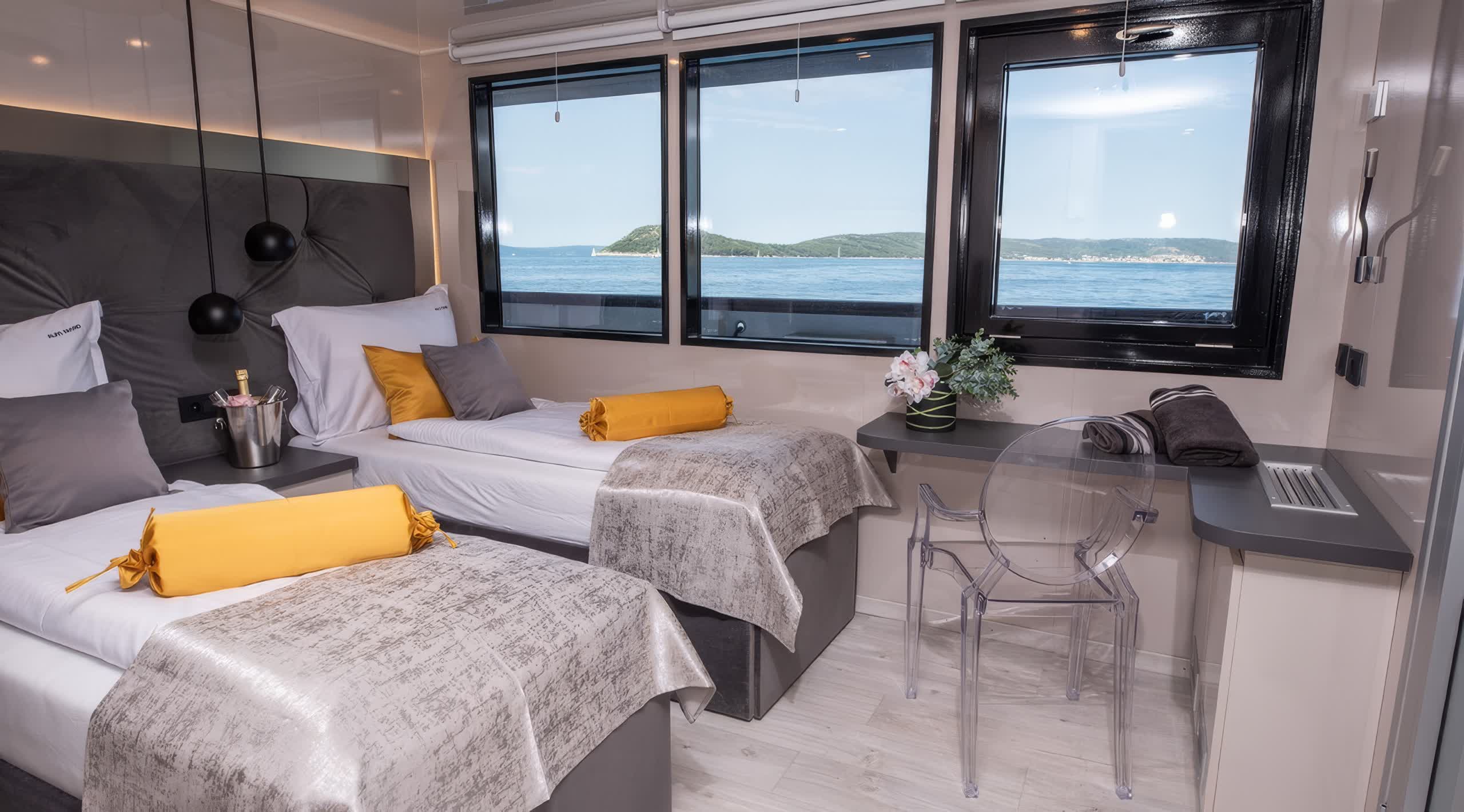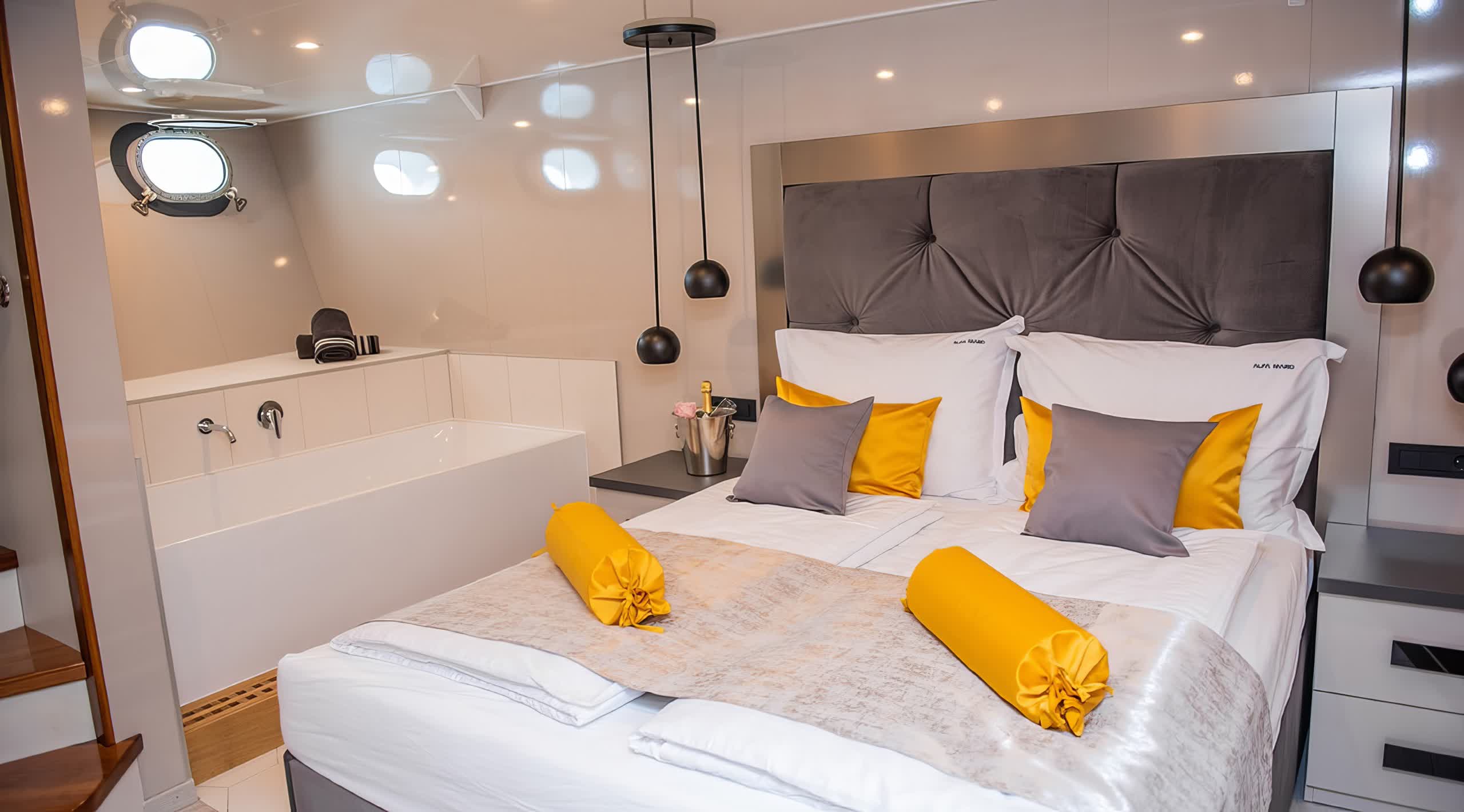 Alfa Mario is a custom motor yacht, launched in 2021 and undergoing a refit in 2024. Based in Croatia, she provides an unrivalled charter opportunity based along the Adriatic coast. A maximum of 30 guests can be accommodated in Alfa Mario through its 15 roomy cabins, most of which come complete with en-suite bathroom, air conditioning, satellite TV, a safety deposit box and complimentary Wi-Fi. There are 11 double rooms, four of which can be converted to twins, making a total of 16 twin rooms available.