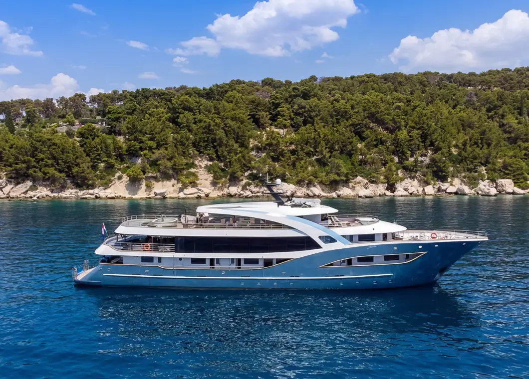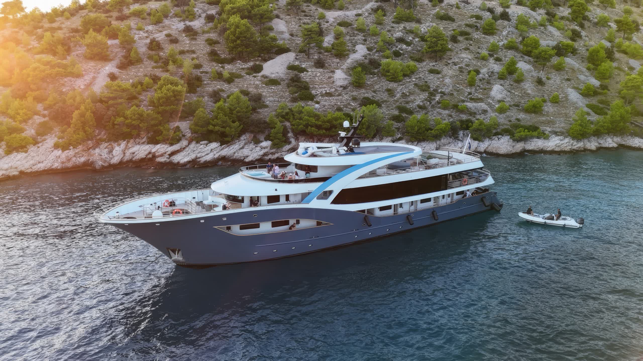 Bella is a 48-meter luxury motor yacht built in 2008. Bella sleeps a maximum of 20 guests in ten sumptuous cabins. On the main deck, the three master suites have king beds and en suite bathrooms. Four double cabins, one triple cabins and two twin cabins, all with en-suite facilities and entertainment systems, complete the accommodation list on the yacht, which also offers a VIP suite. An attentive eleven-person professional crew attends to your every need during the journey.