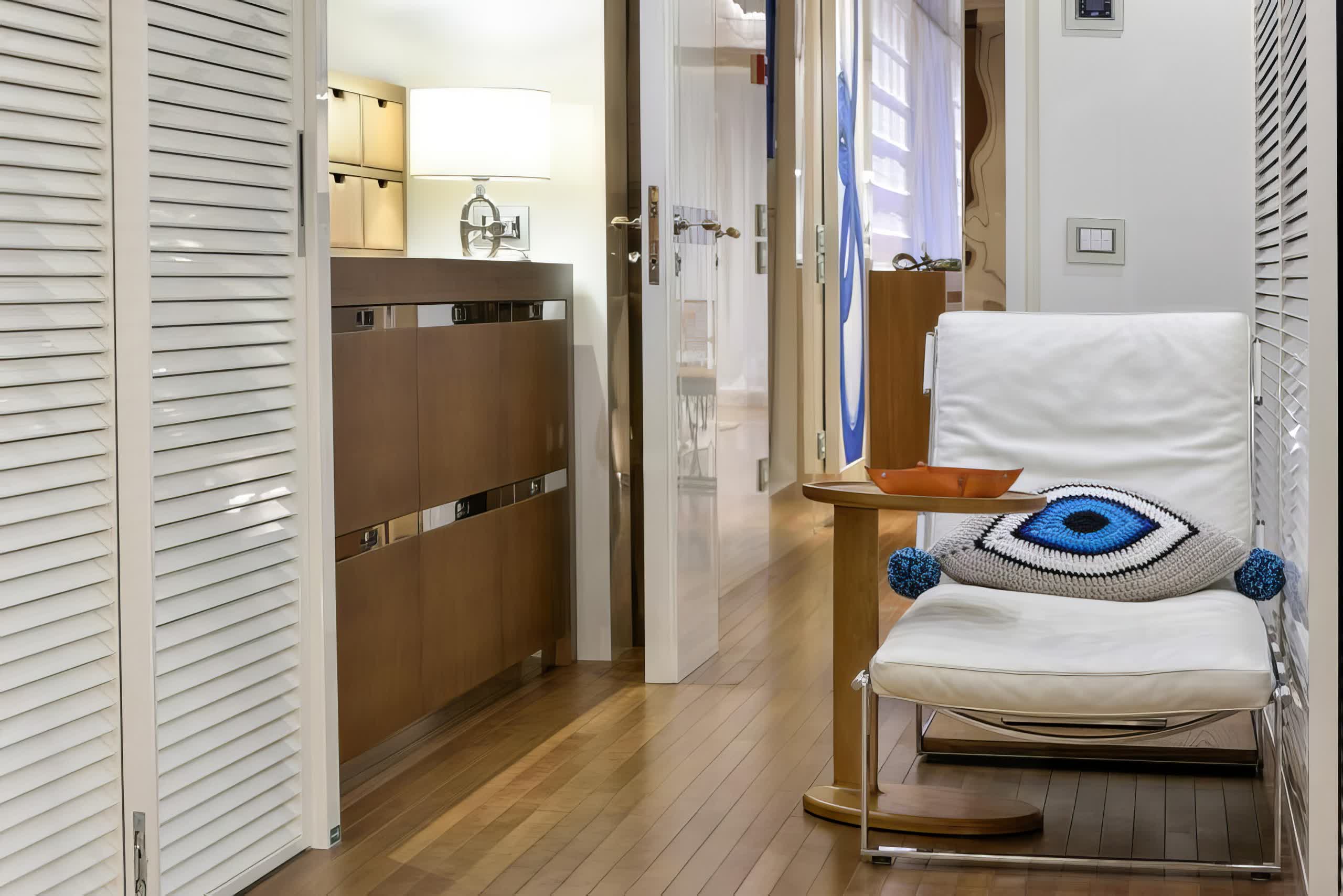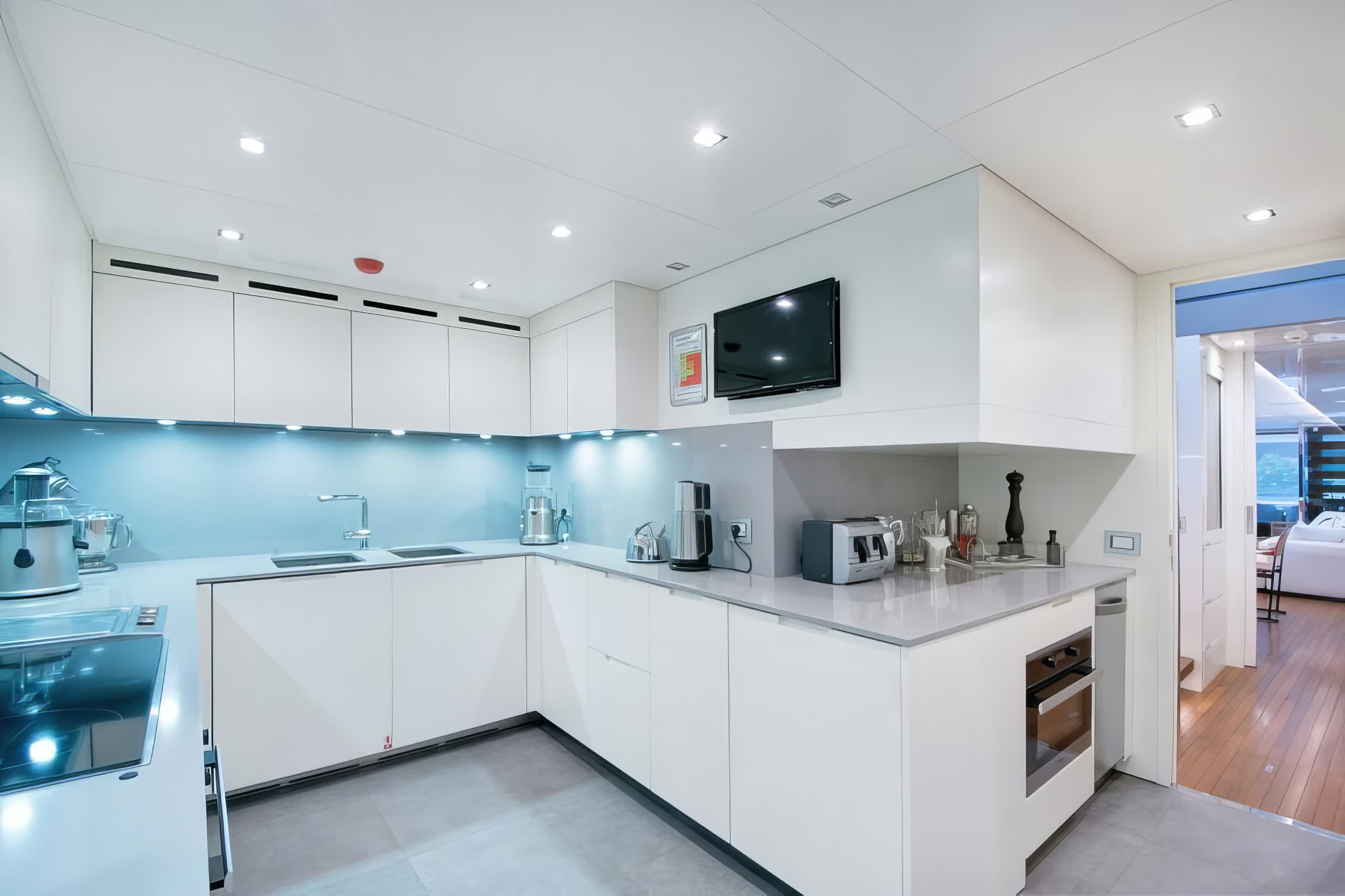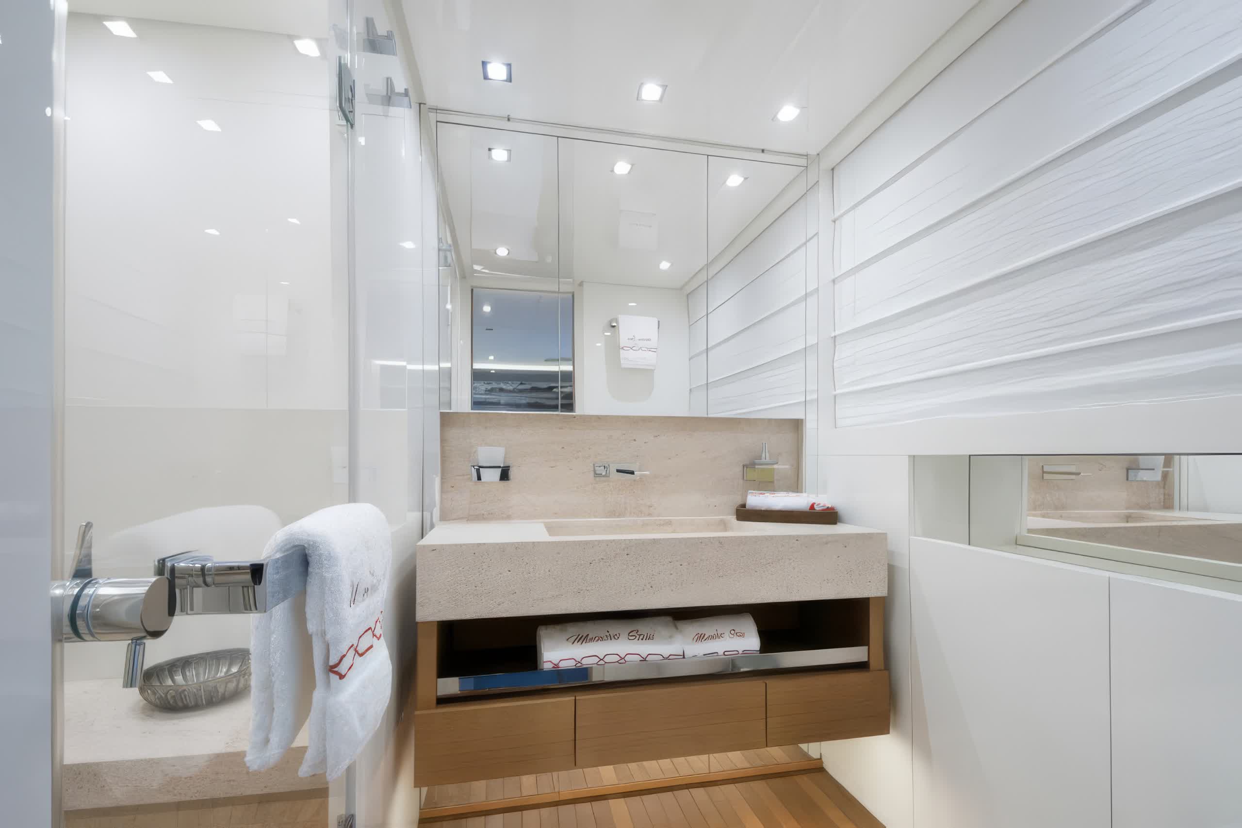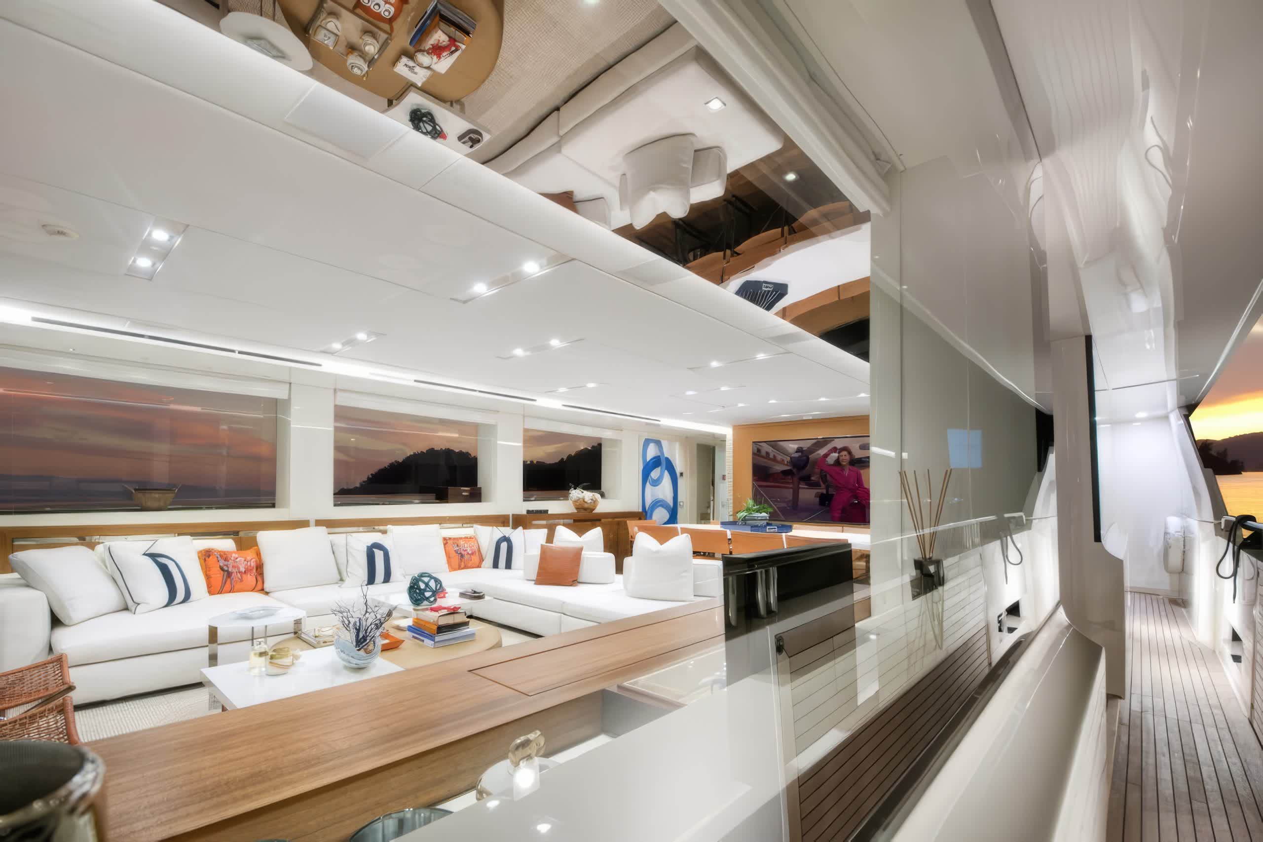 For entertainment, the yacht is docked with a satellite television, salon TV/DVD, and salon stereo, providing guests with ample media options while travelling. The yacht's exterior and interior design are the work of Zuccon International Project while the Ferretti Custom Line shipyard's dedication to quality and craftsmanship has brought it all to life.