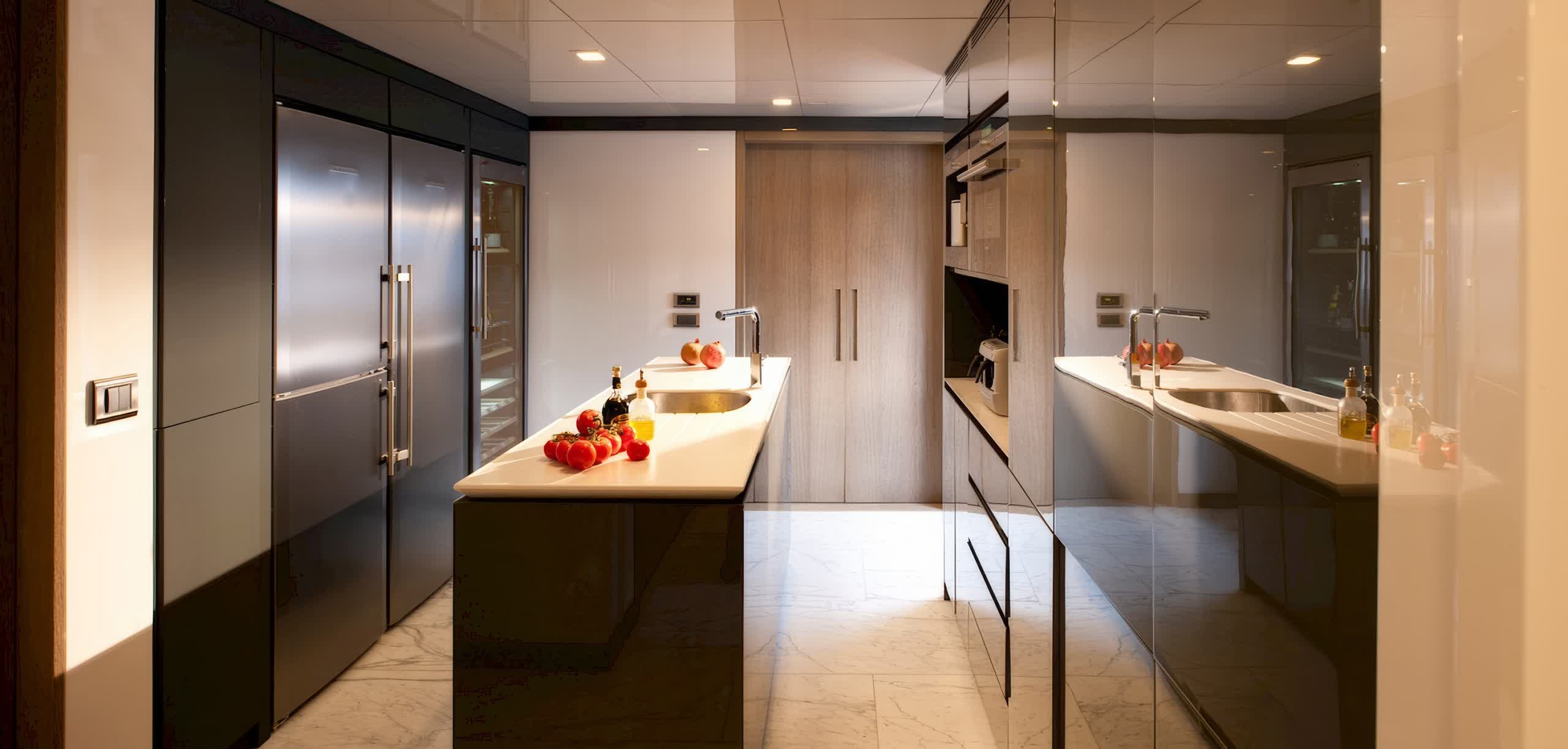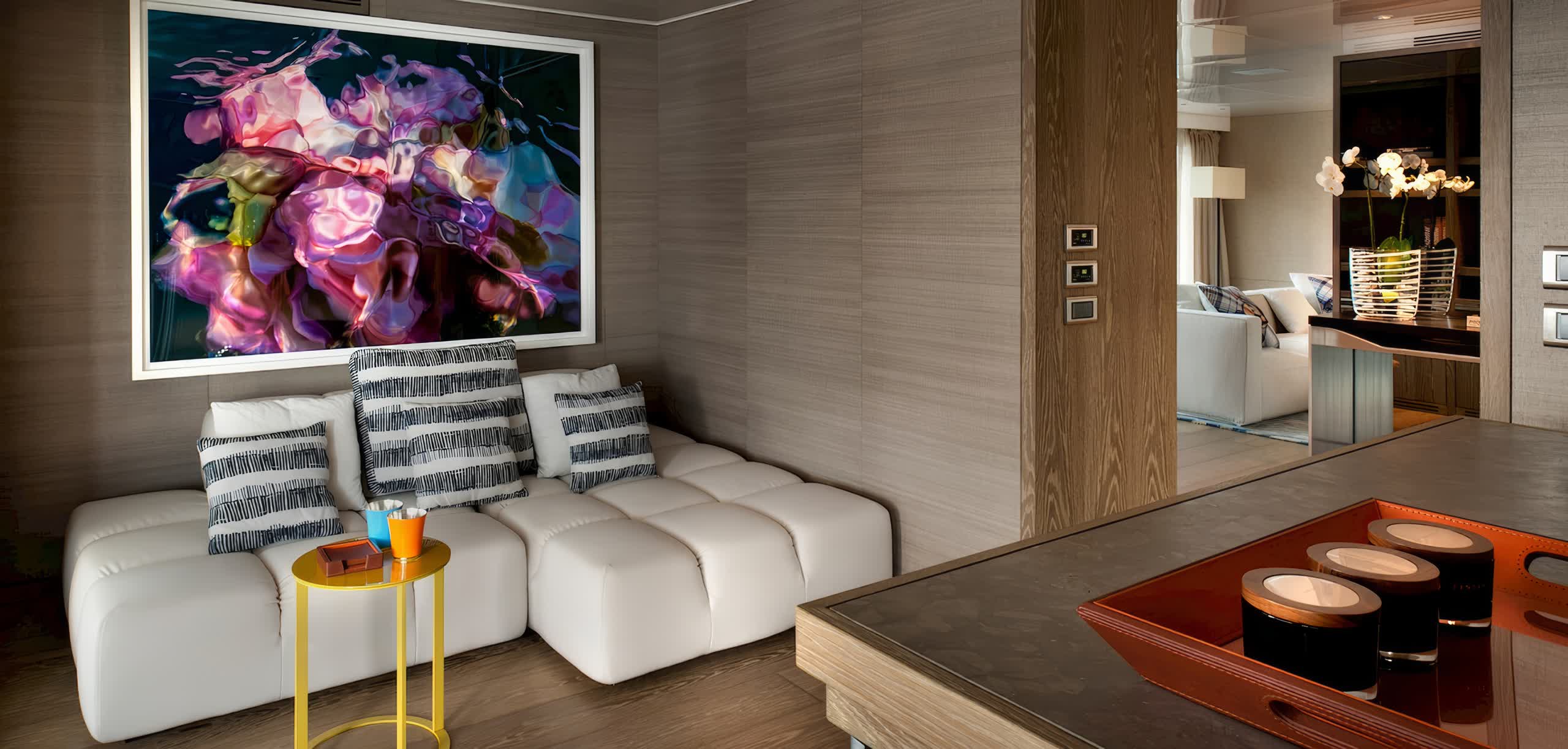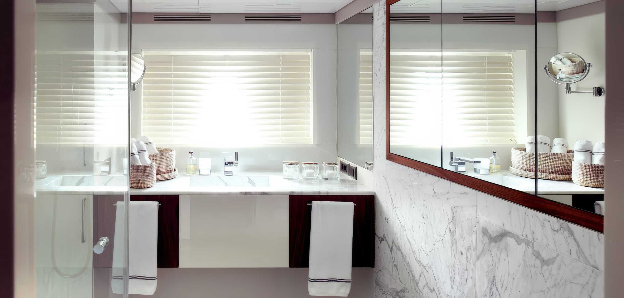 The Orient Star is an elegant, comfortable, extensively-designed, luxury motor yacht promising the ultimate in luxurious cruising. Orient Star has five luxuriously-appointed cabins, including a full-beam master suite on the main deck, two VIP staterooms and two twin cabins – accommodating up to 10 guests in total. This setup provides plenty of room and privacy for all guests. Interiors are bold yet sophisticated, filled with rich materials and curated art that come together to create the ultimate in layered luxe.
