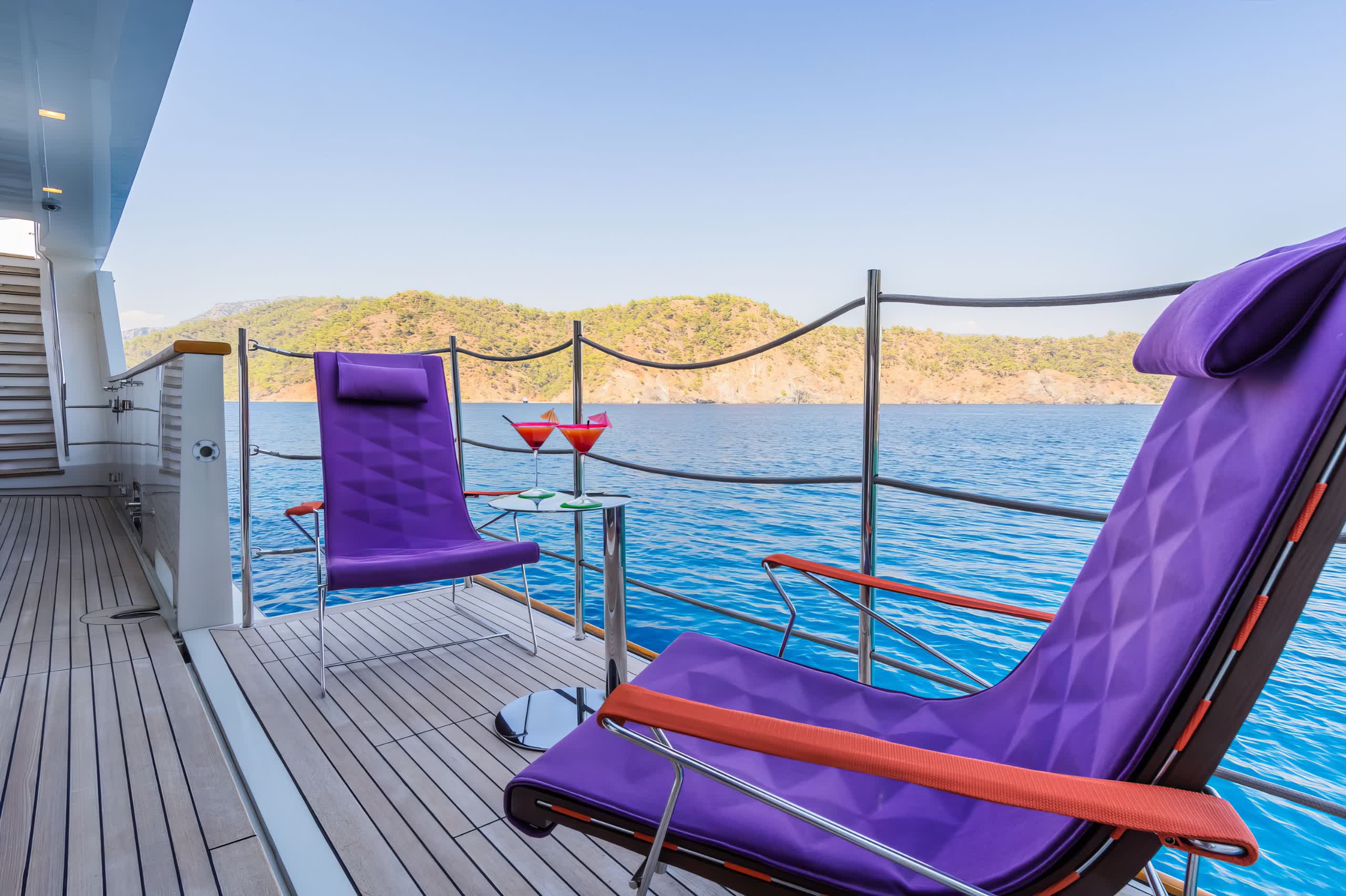 A prominent feature of Takara One is outdoor living. Jacuzzi on the foredeck allows guests a luxurious spot to relax while gazing at the views. There’s a barbecue grill and multiple alfresco lounging options to complement the outdoor experience. A side balcony off the main salon expands the living area, making for a peaceful perch to take in the surroundings. Takara One also has Wi-Fi so guests can stay connected while setting sail. Takara One is run by a professional team, committed to delivering high levels of service and a memorable experience for all guests. The yacht is based in the Mediterranean and has charter itineraries focused on culture, cuisine and scenery.