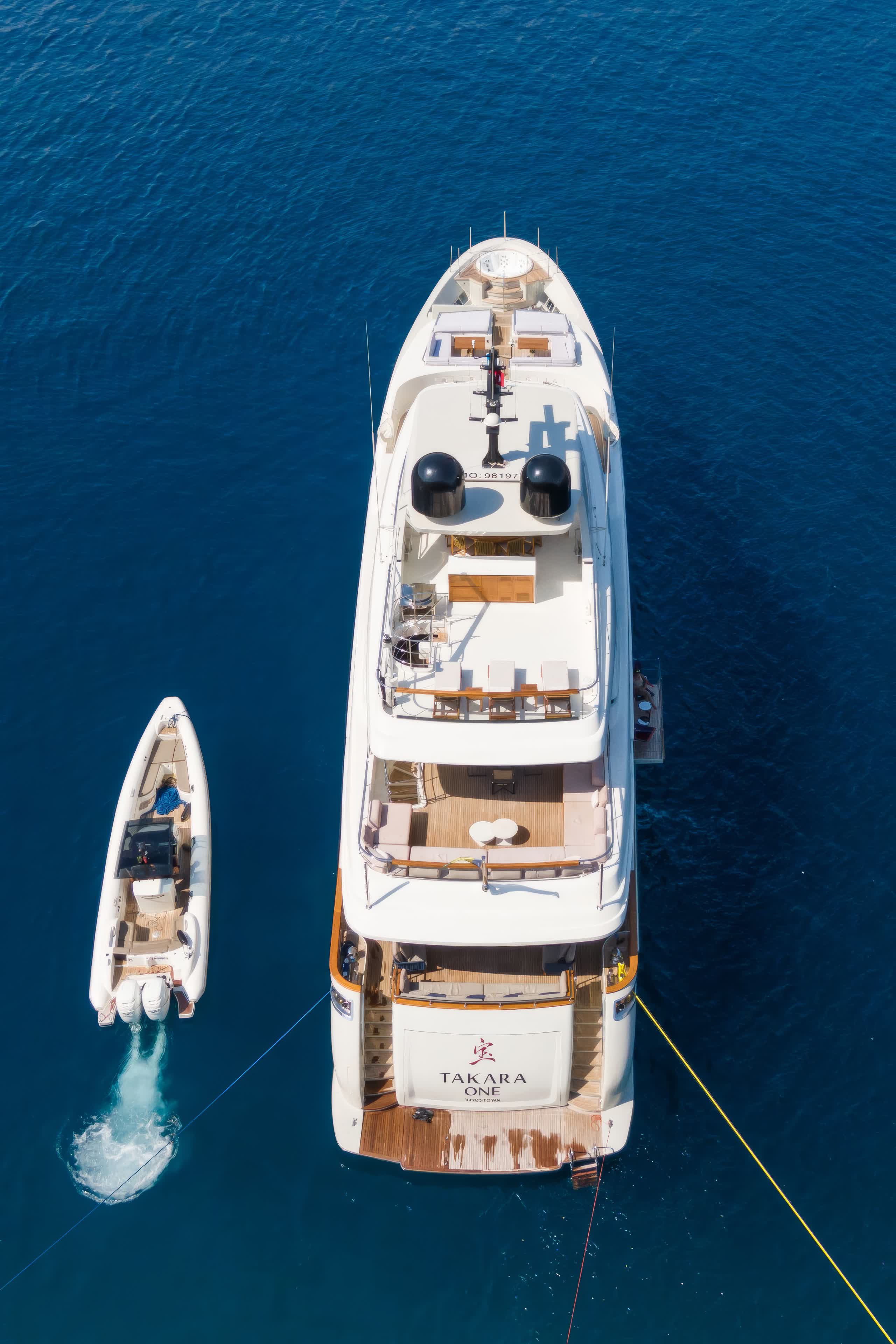 The 38 meter motor yacht Takara One was built at the Sanlorenzo shipyard. Launched in 2016 and remodeled in 2020, she is a paradigm of luxury and sophistication. Takara One features a sleek exterior and modern, light interior, providing a welcoming space for guests.