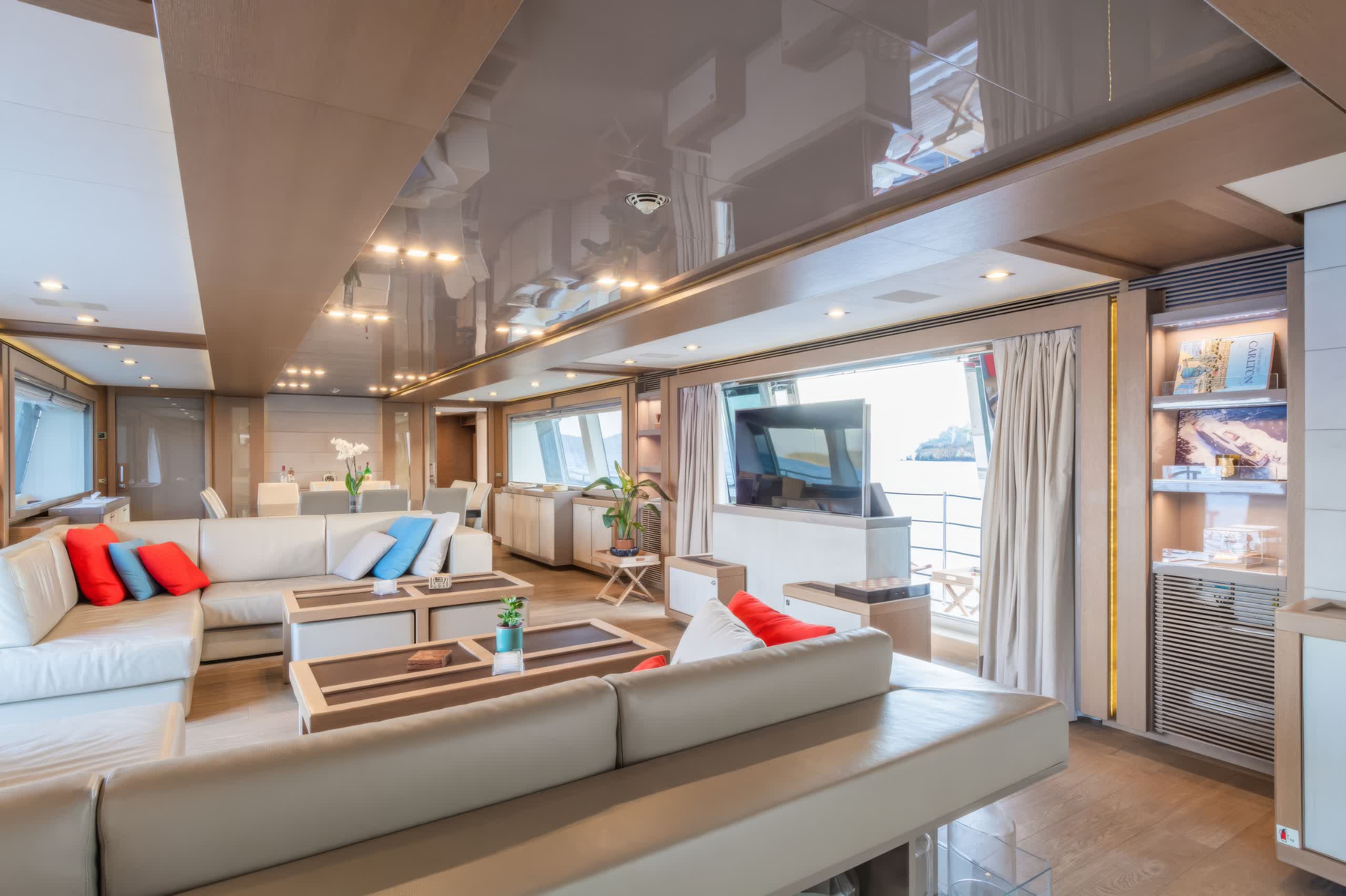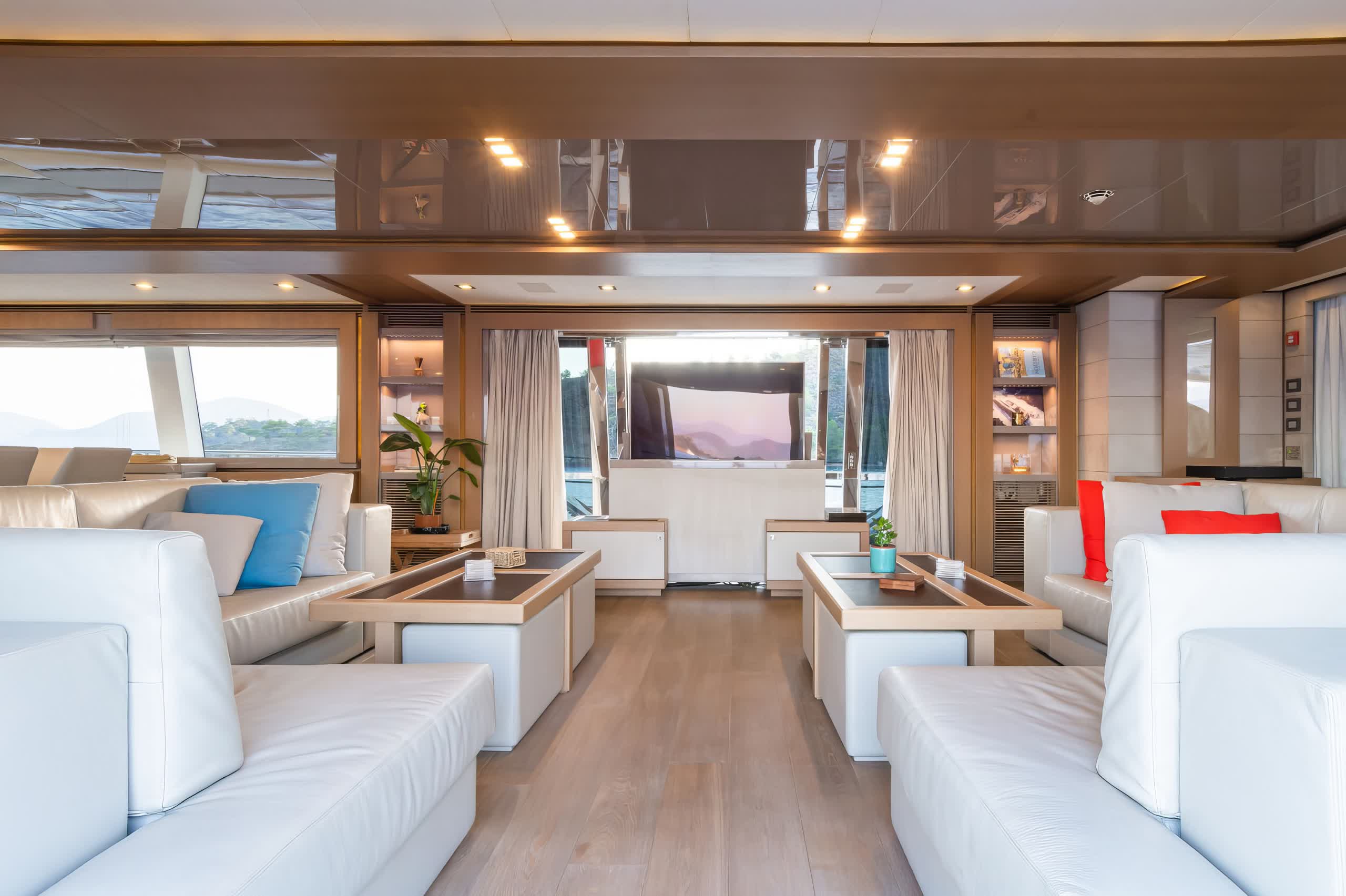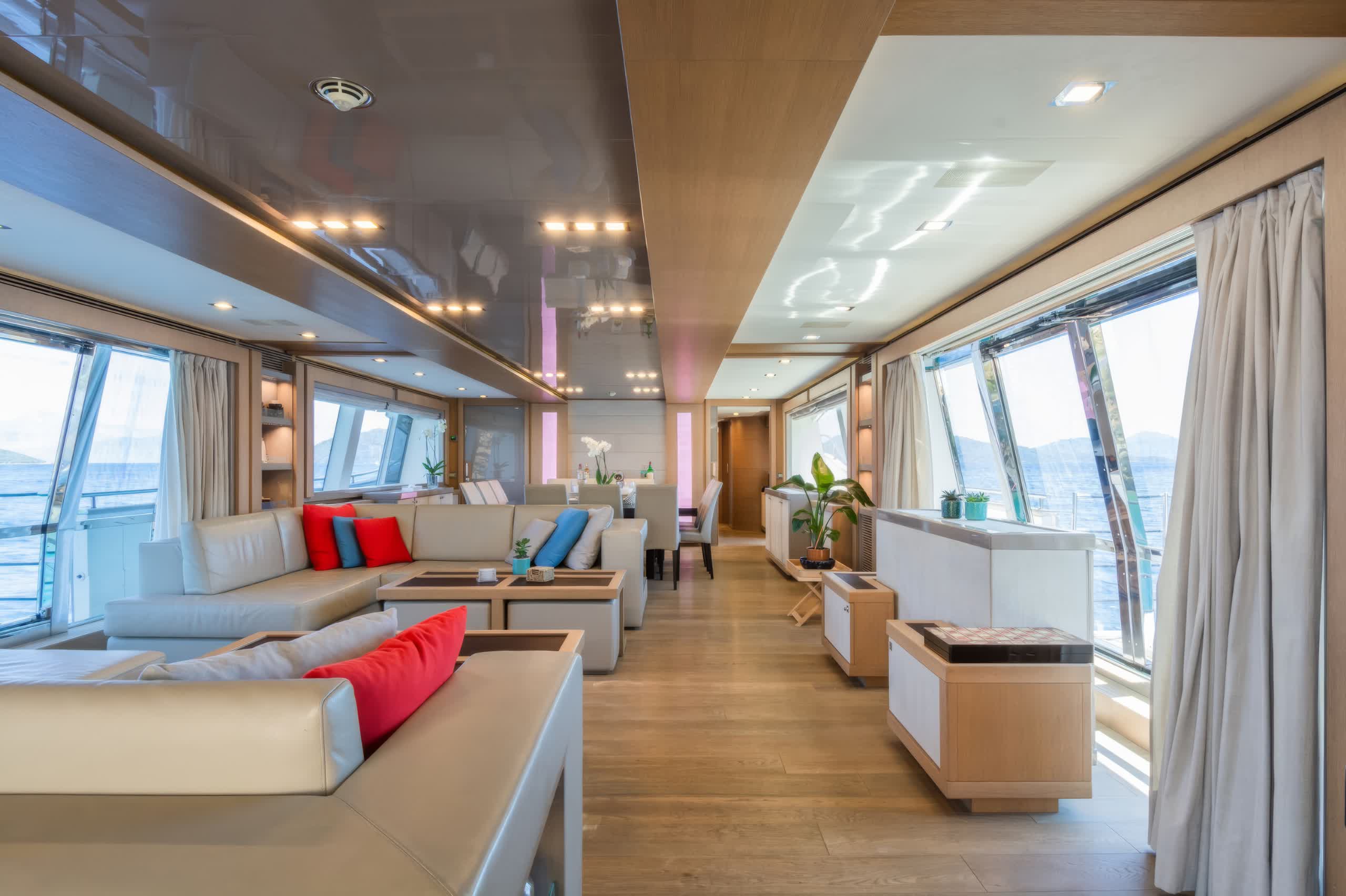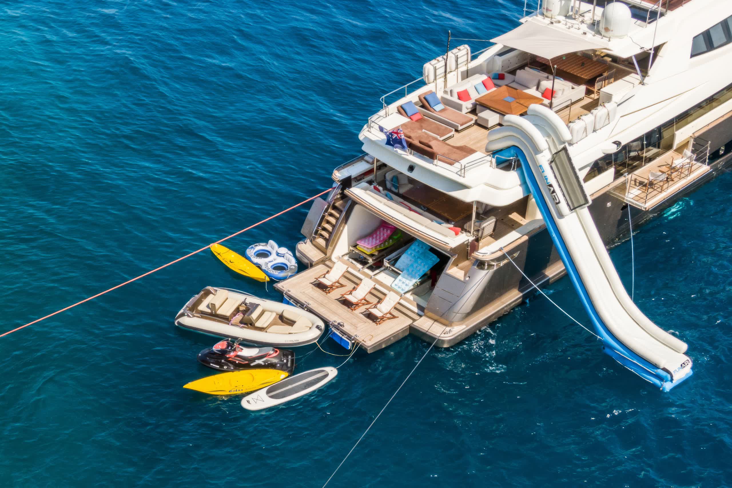 Thylassa is a 37 meter motor yacht that was built in 2012. She sleeps a maximum of twelve guests in five cabins: a master suite, two VIP cabins and two twin cabins. The layout of Thylassa's interior offers both comfort and sophistication. The large salon is perfect for socializing, with plenty of room to stretch out on comfy couches and watch TV. A formal dining area adjacent to the salon offers an elegant venue for meals prepared by the onboard chef. This attention to detail flows throughout the yacht as a variety of high-end materials and finishes are used to create uma of guest-friendly ambience.