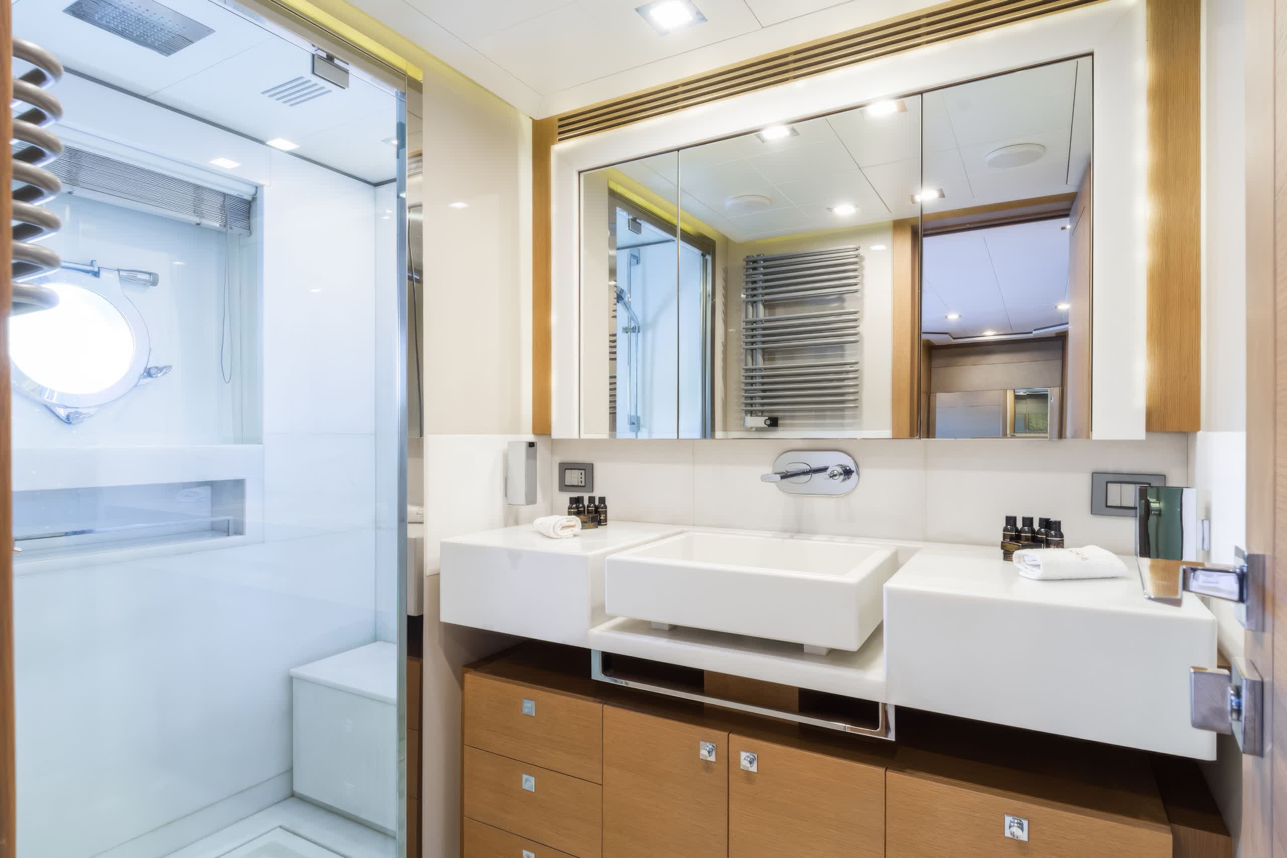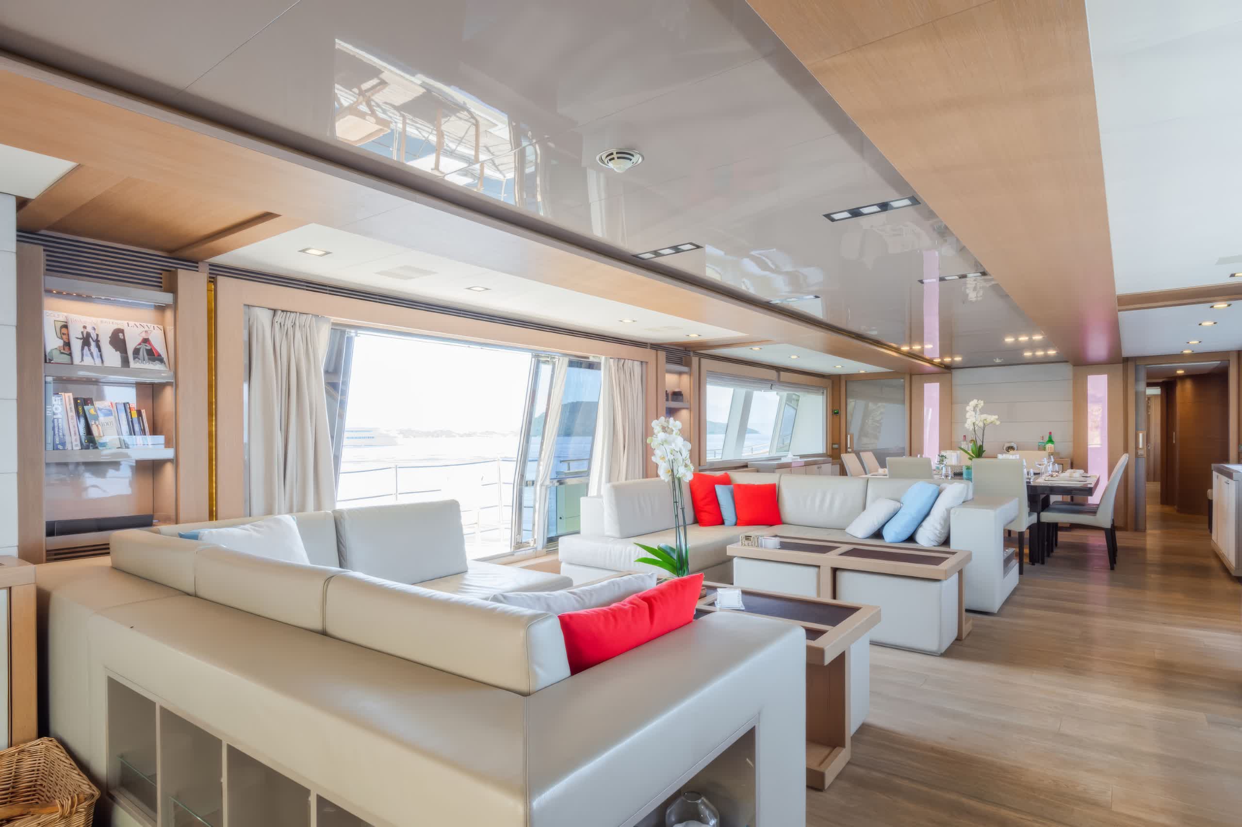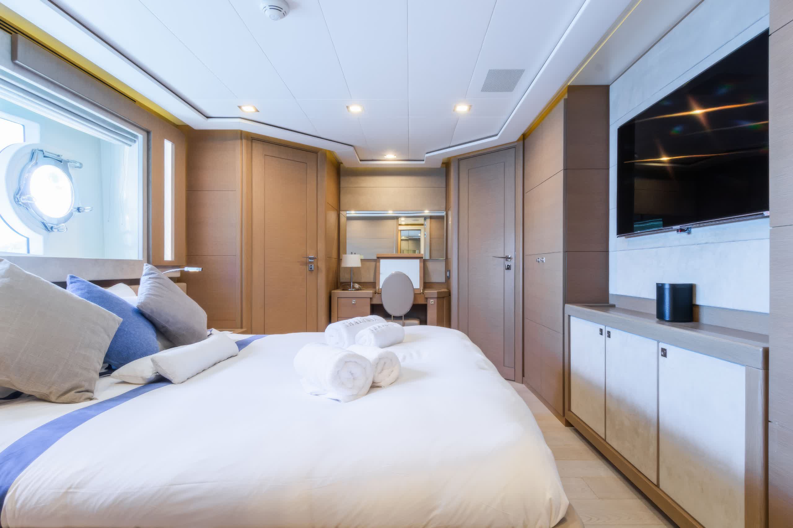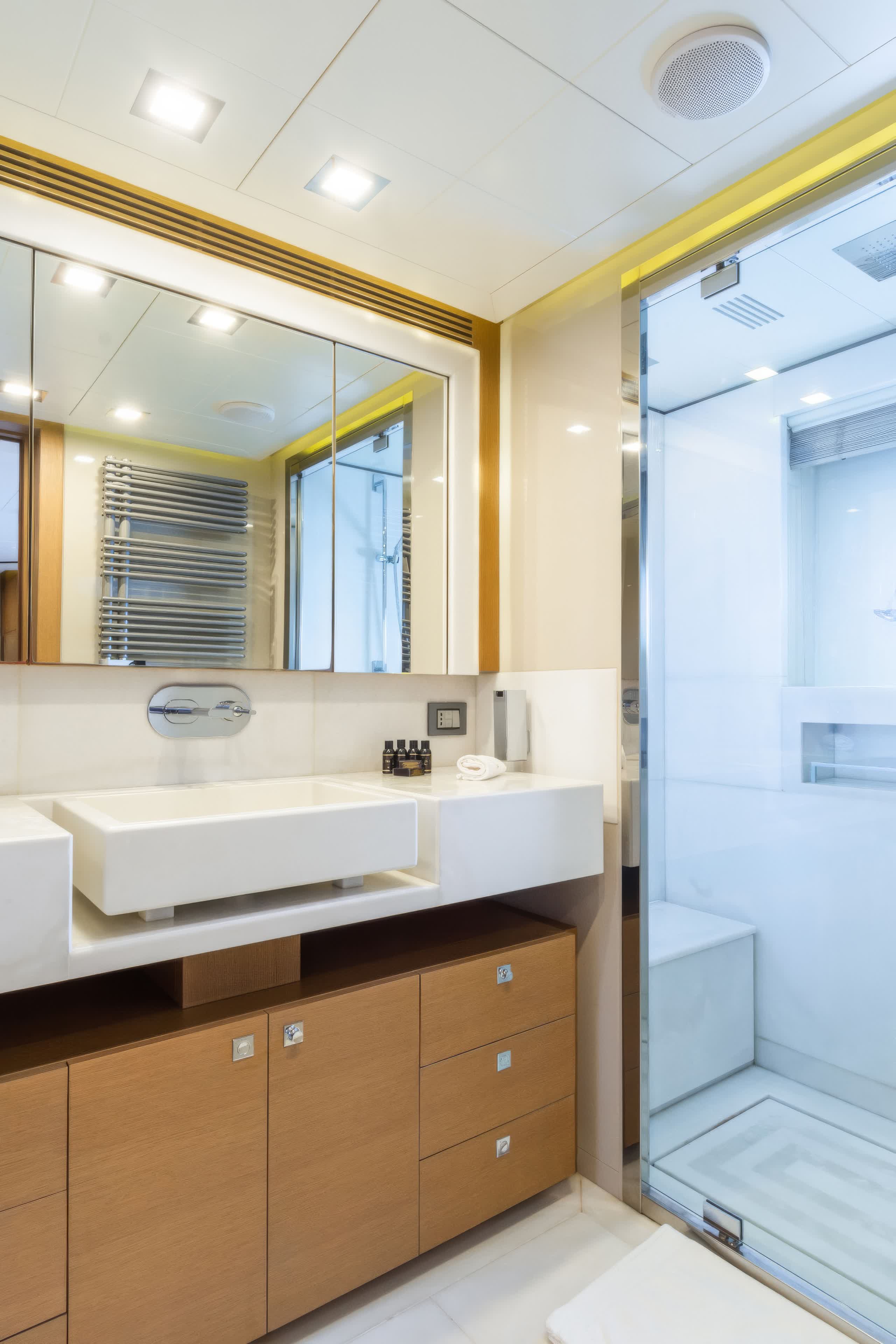 Thylassa is a 37 meter motor yacht that was built in 2012. She sleeps a maximum of twelve guests in five cabins: a master suite, two VIP cabins and two twin cabins. The layout of Thylassa's interior offers both comfort and sophistication. The large salon is perfect for socializing, with plenty of room to stretch out on comfy couches and watch TV. A formal dining area adjacent to the salon offers an elegant venue for meals prepared by the onboard chef. This attention to detail flows throughout the yacht as a variety of high-end materials and finishes are used to create uma of guest-friendly ambience.